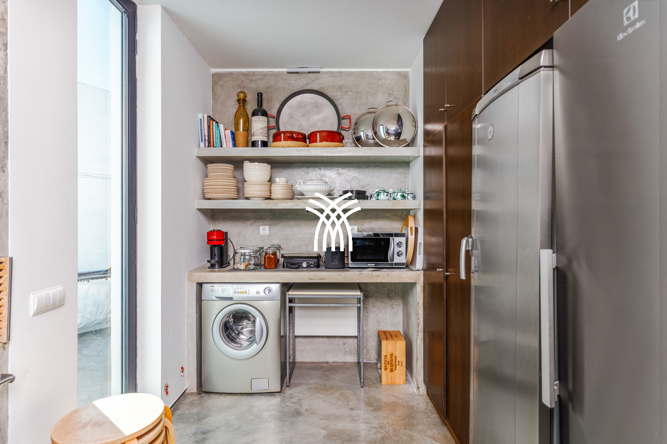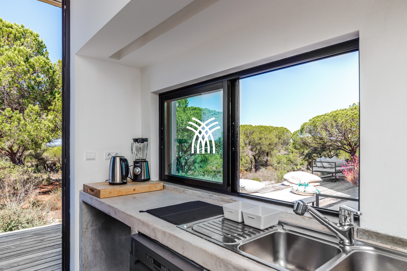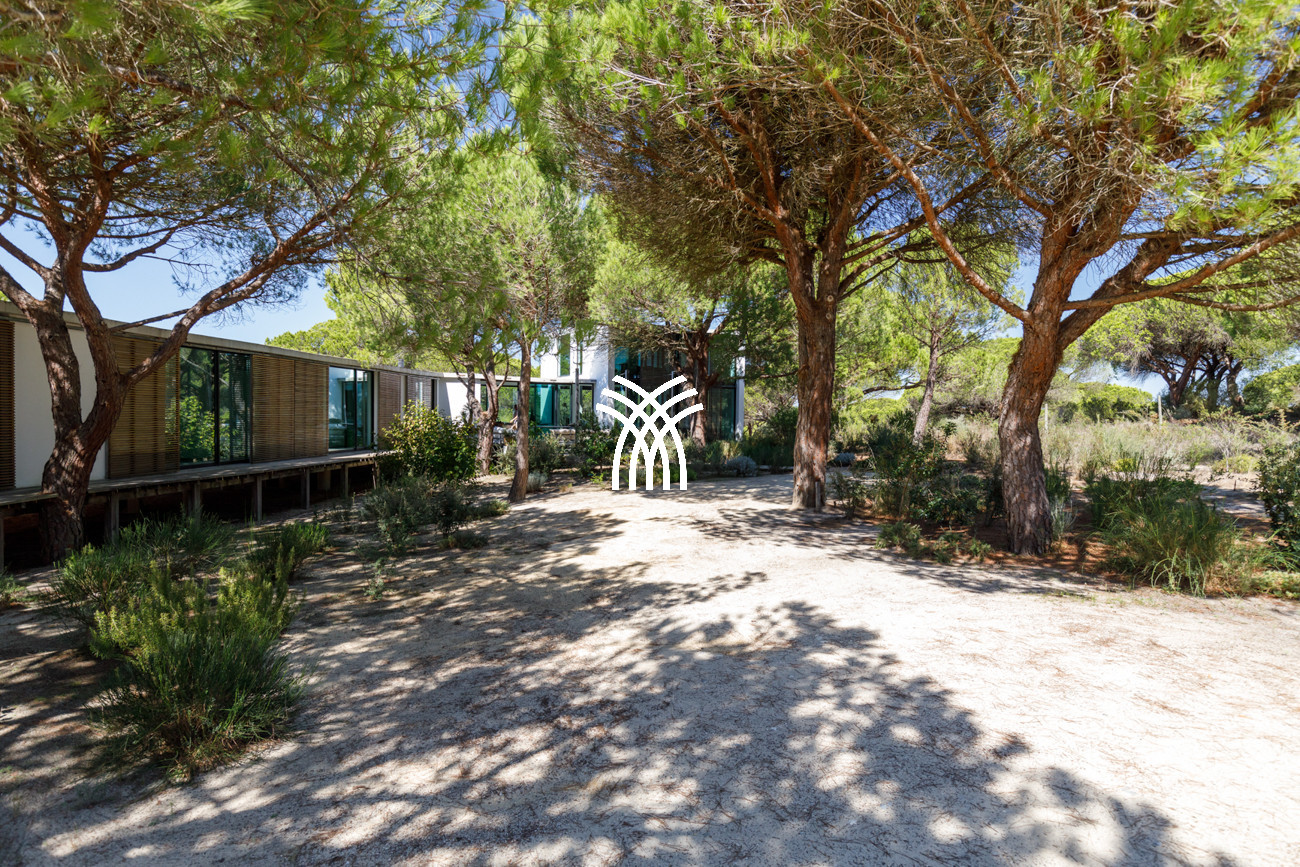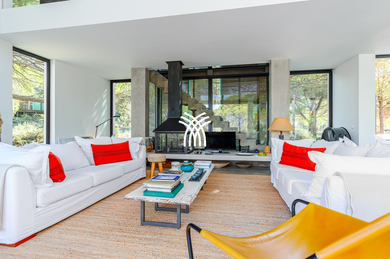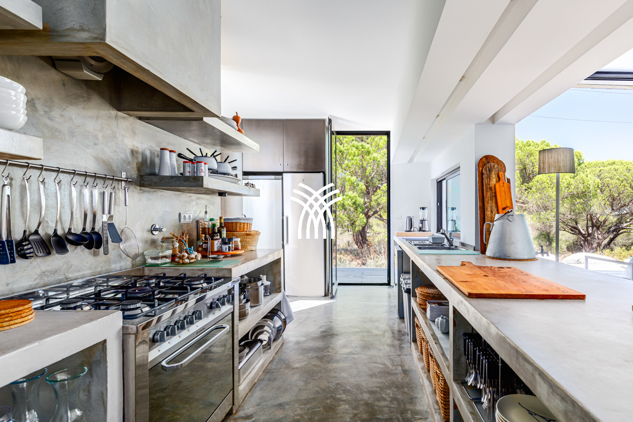 Au cœur de la maison, l'espace de vie ouvert réunit le salon, l'espace repas et la cuisine entièrement équipée dans une composition fluide conçue pour des moments partagés et une élégance décontractée. Cet espace s'étend naturellement sur une terrasse généreuse de 90 mètres carrés, partiellement ombragée pour des repas en plein air, qui mène à la piscine accueillante et à un jardin de sable distinctif de 500 mètres carrés. Ensemble, ils forment un environnement intérieur-extérieur idyllique où les journées se déroulent à un rythme tranquille sous le soleil de Comporta.
