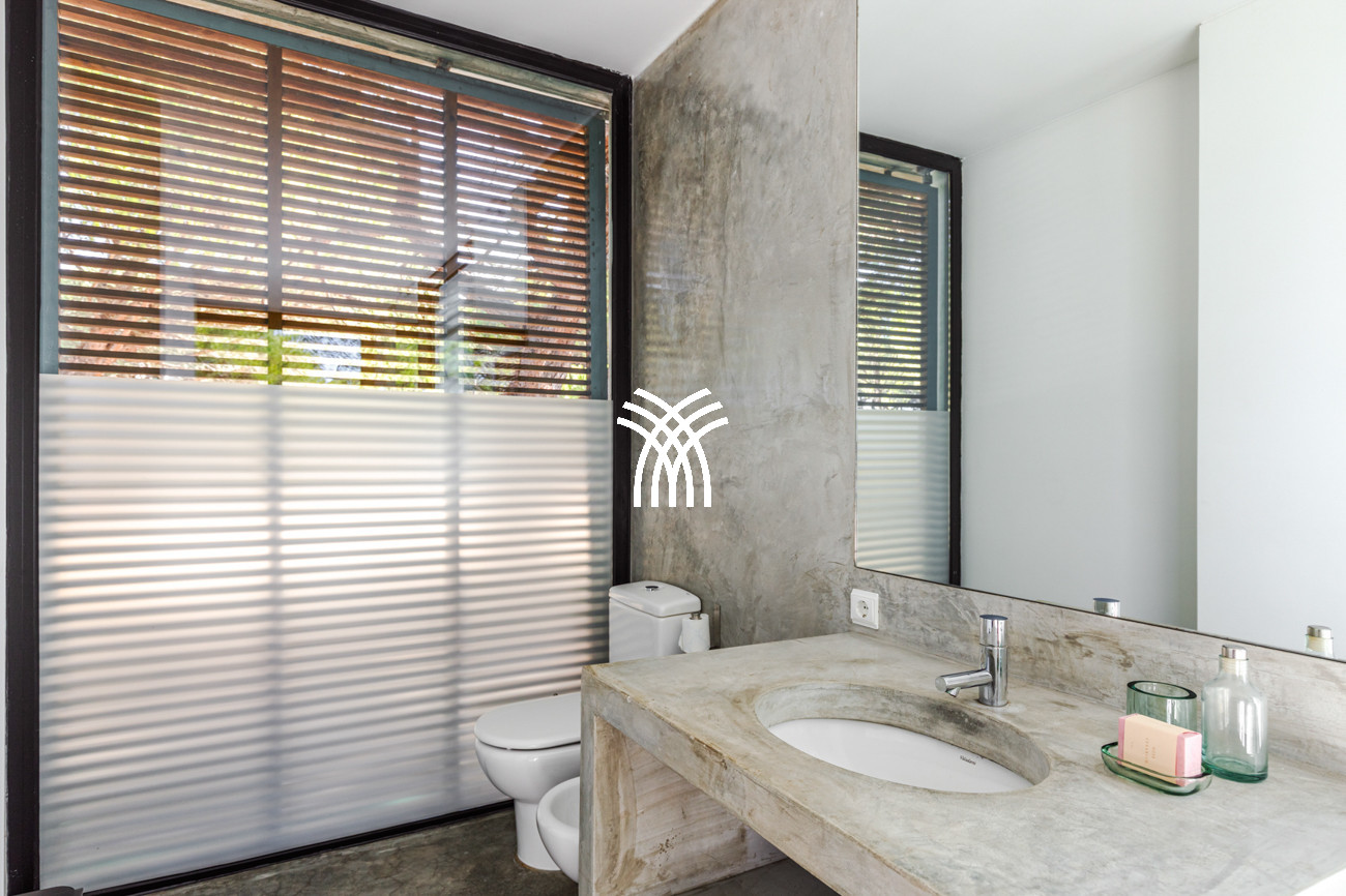Dès votre entrée, la villa révèle des intérieurs compacts mais intelligemment conçus qui maximisent l'espace et la lumière, rehaussés par des sols en ciment poli, des plafonds hauts et des fenêtres vitrées du sol au plafond qui estompent les frontières entre l'intérieur et l'extérieur. La climatisation et les moustiquaires assurent un confort sans effort, tandis que chaque chambre s'ouvre directement sur la terrasse ou le jardin luxuriant, créant un dialogue harmonieux avec le paysage environnant et invitant la nature dans la vie quotidienne.