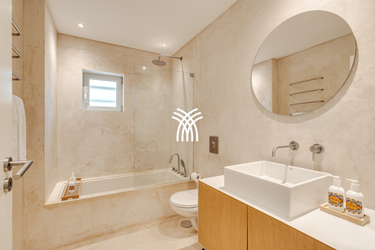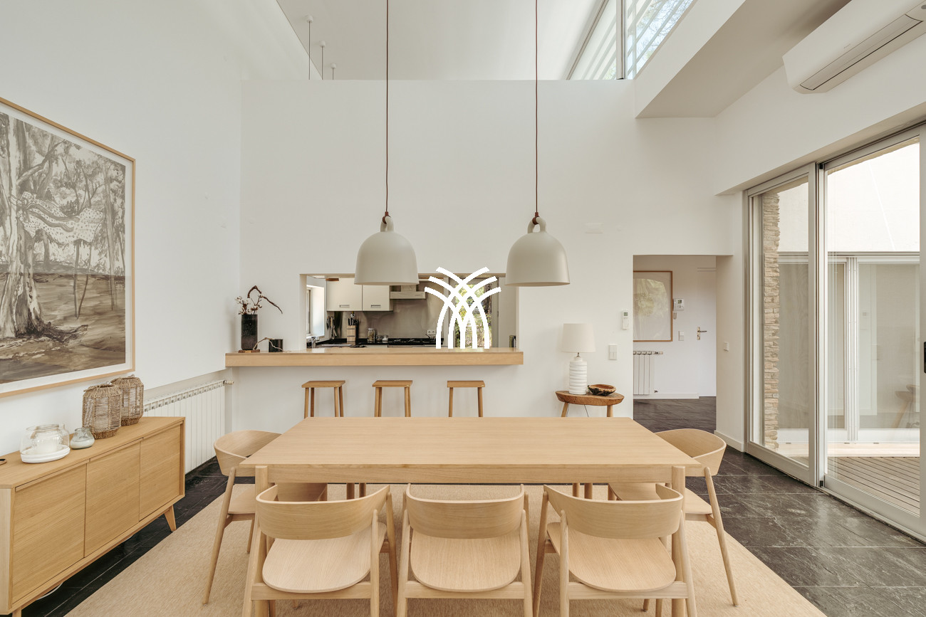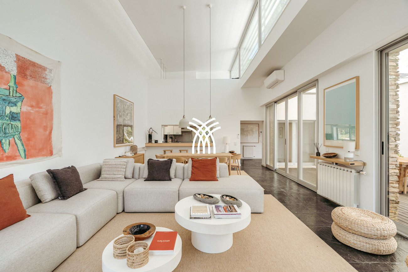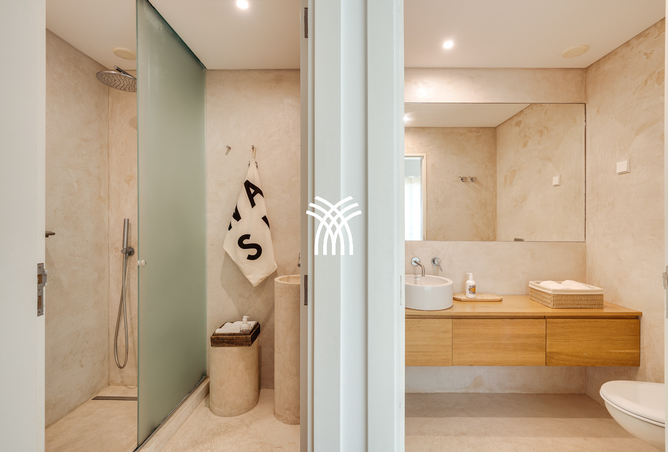 Au cœur de la maison, l'espace de vie ouvert réunit le salon, l'espace repas et la cuisine entièrement équipée dans une composition fluide conçue pour des moments partagés et une élégance décontractée. Cet espace s'étend naturellement sur une terrasse généreuse de 90 mètres carrés, partiellement ombragée pour des repas en plein air, qui mène à la piscine accueillante et à un jardin de sable distinctif de 500 mètres carrés. Ensemble, ils forment un environnement intérieur-extérieur idyllique où les journées se déroulent à un rythme tranquille sous le soleil de Comporta.