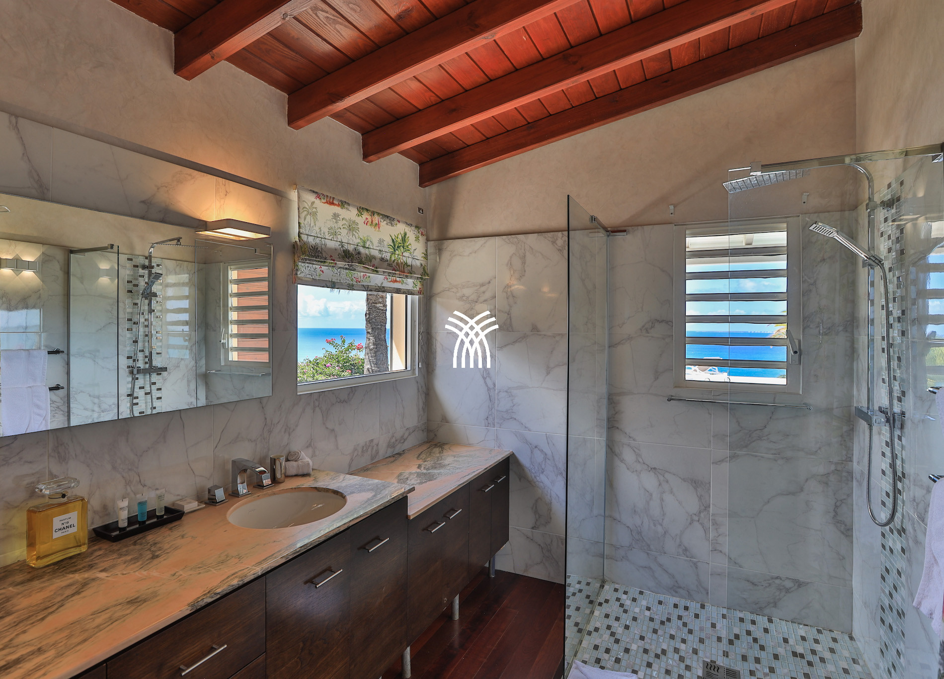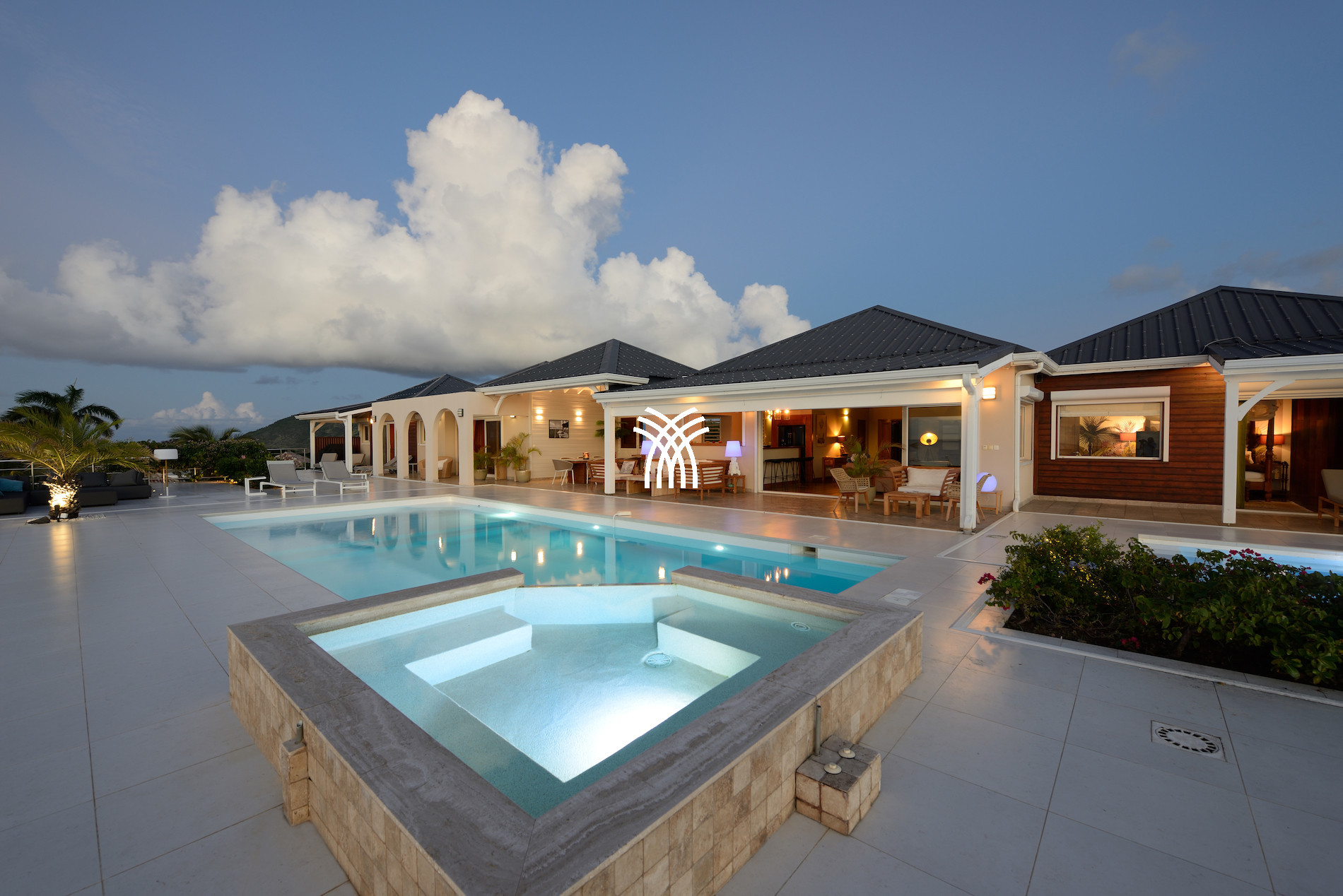 Érigée au cœur d’un environnement tropical préservé, cette location de villa de luxe à Saint-Martin propose cinq chambres raffinées et cinq salles de bains, alliant confort moderne et charme caribéen. Son vaste espace de vie ouvert sur la mer invite à la détente, tandis que la grande terrasse bordée de palmiers et de fleurs exotiques vous enveloppe d’une douceur paradisiaque. Deux piscines chauffées et un bain à bulles surplombent le littoral, créant un lieu idéal pour savourer des moments d’intimité absolue.