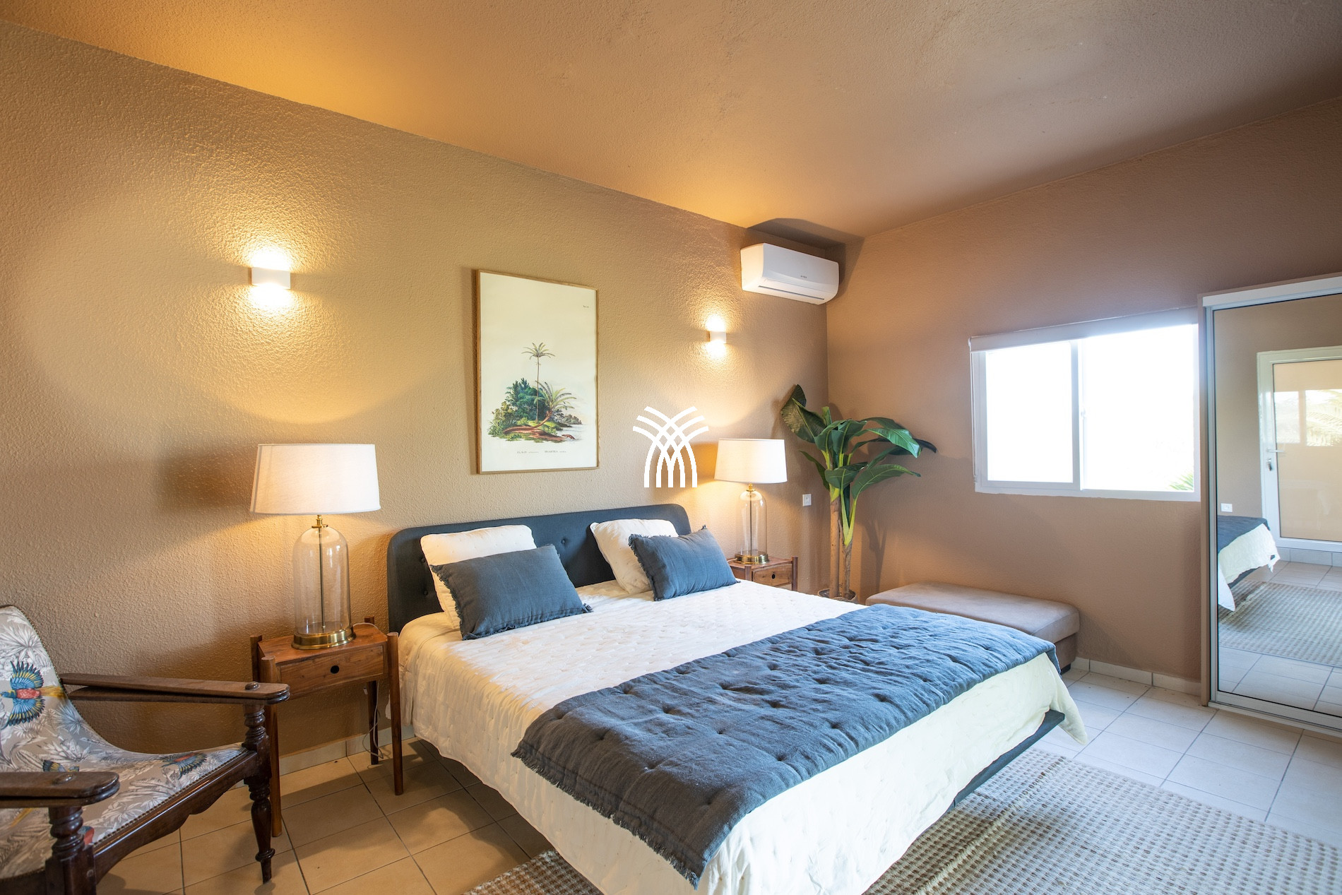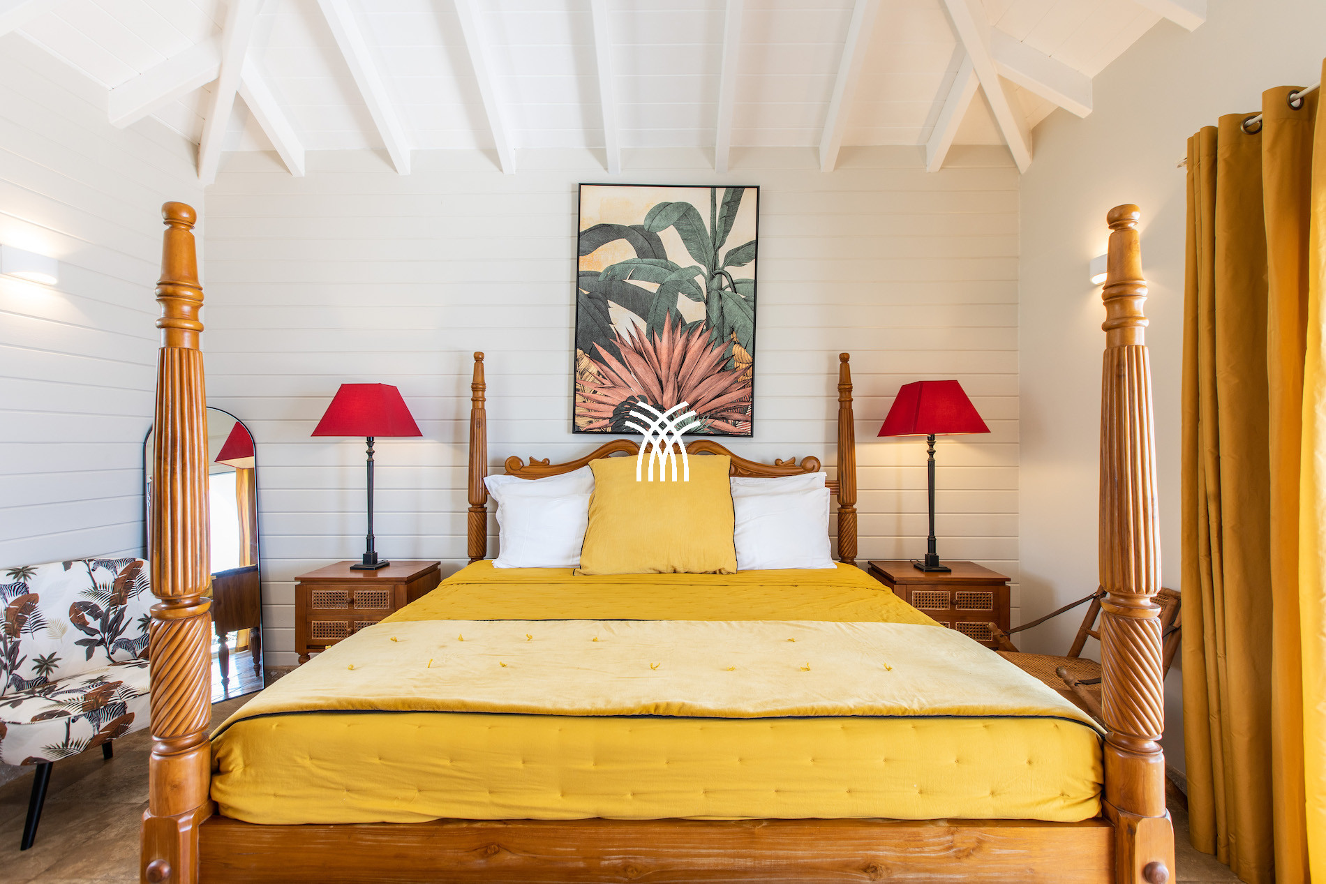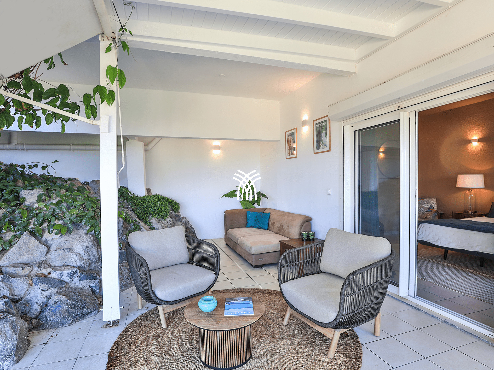 Trois chambres offrent une vue spectaculaire sur la mer turquoise et un accès direct à la terrasse principale, vous permettant de contempler l’océan dès le réveil. Une cinquième suite indépendante, discrètement nichée en contrebas, dispose d’une petite terrasse privée offrant un cadre paisible pour admirer le bleu infini de la mer des Caraïbes.