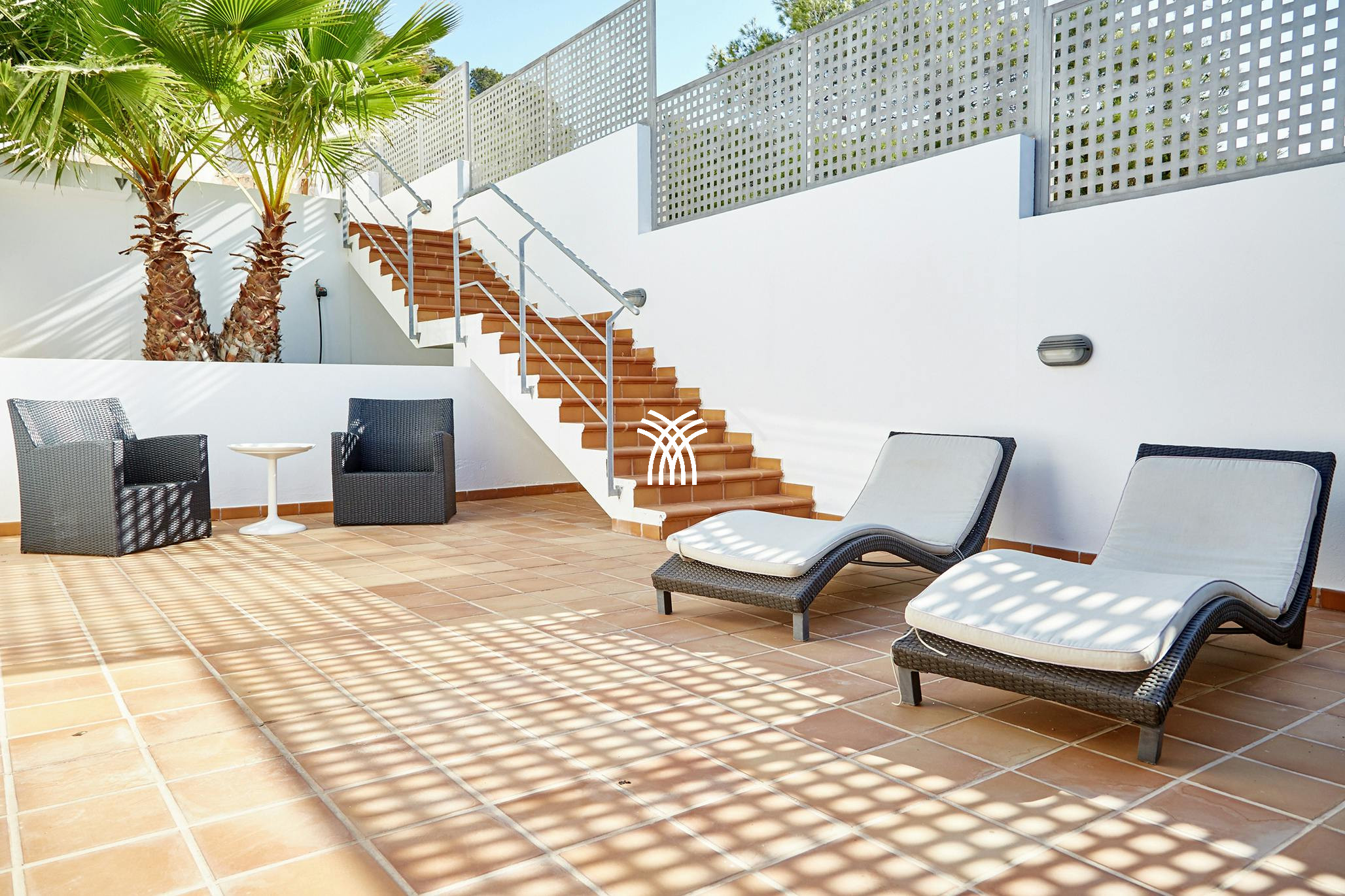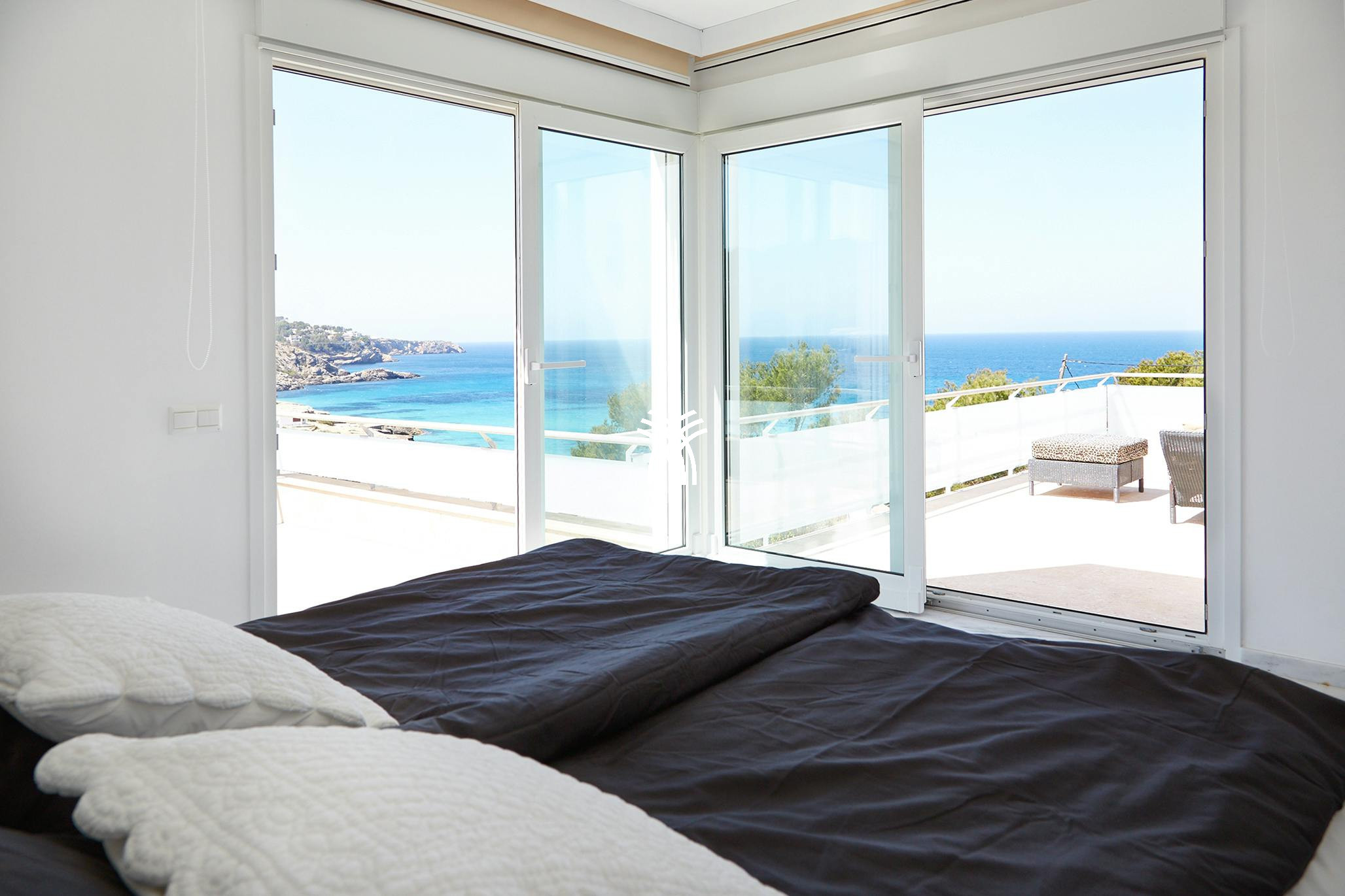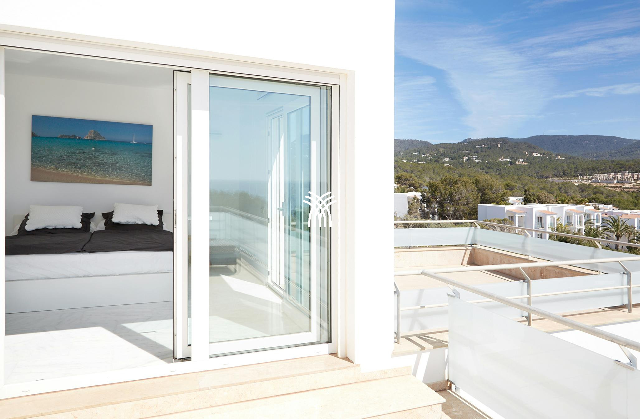 La Villa Viviana propose trois magnifiques chambres doubles avec salles de bains attenantes. Deux sont situées dans la maison principale, chacune offrant des vues panoramiques sur la mer, la climatisation et le chauffage au sol. La suite de l'étage supérieur offre plus d'intimité, une grande terrasse et une vue imprenable sur Es Vedra et la côte environnante.
