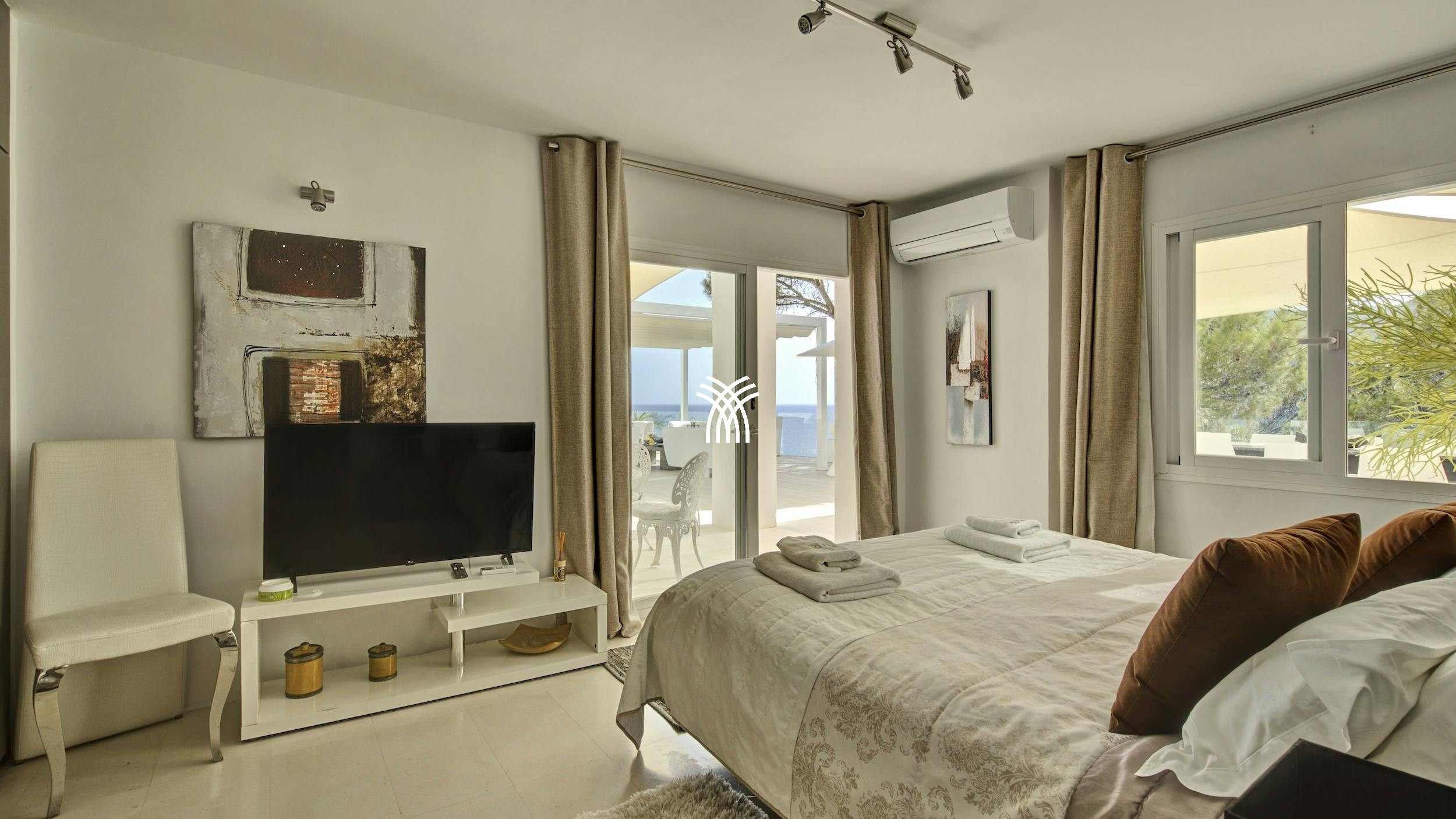 Vivez le summum de l'élégance méditerranéenne avec cette Location de Villa de Luxe à Ibiza, une propriété premium en première ligne avec un accès direct à la mer dans l'un des emplacements les plus recherchés de l'île près d'Es Cubells. Située sur le mile d'or prestigieux d'Ibiza, cette villa exceptionnelle offre une vue imprenable sur les eaux turquoises de la mer Baléare et une atmosphère de pure sérénité côtière.