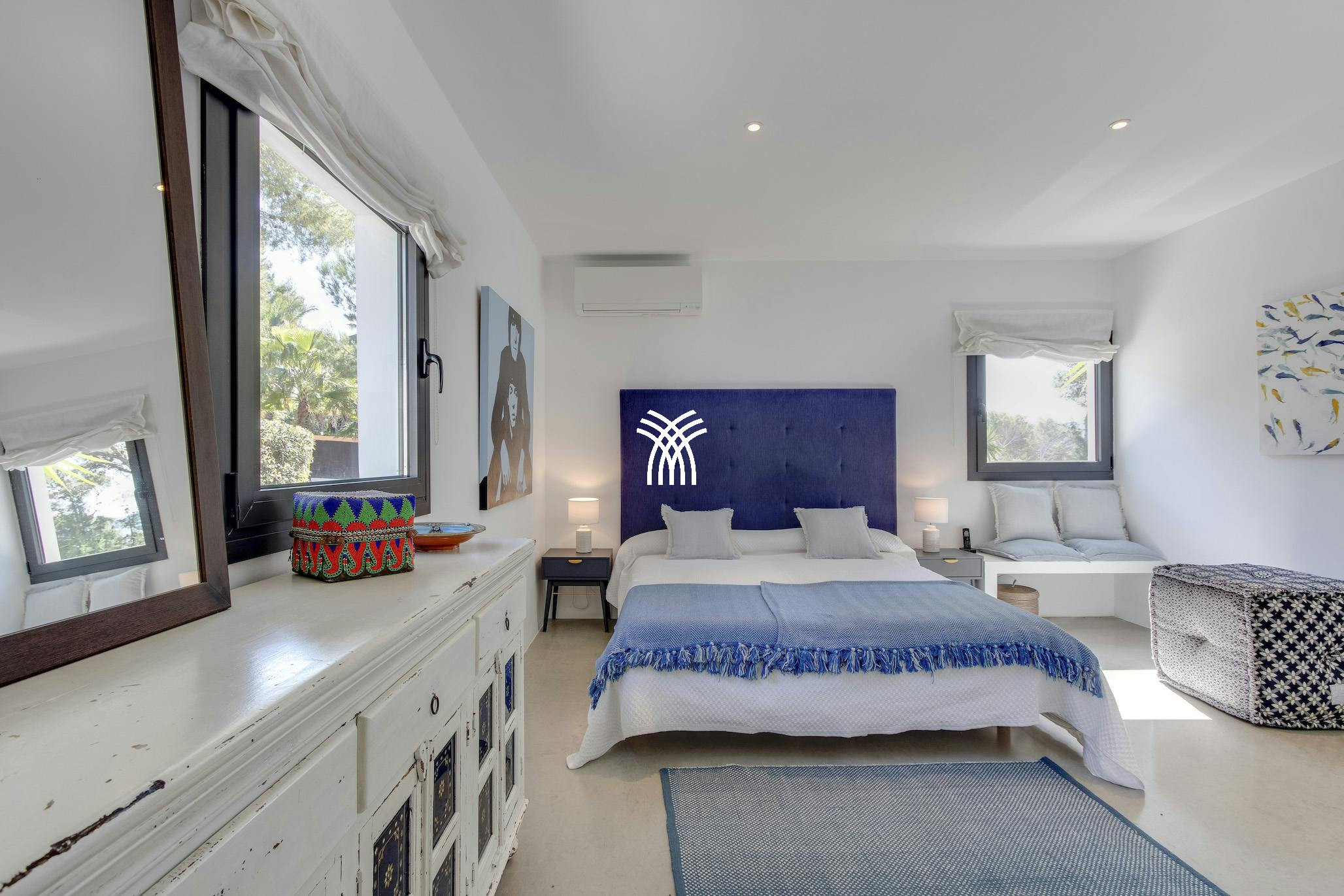 La Villa Viviana propose trois magnifiques chambres doubles avec salles de bains attenantes. Deux sont situées dans la maison principale, chacune offrant des vues panoramiques sur la mer, la climatisation et le chauffage au sol. La suite de l'étage supérieur offre plus d'intimité, une grande terrasse et une vue imprenable sur Es Vedra et la côte environnante.