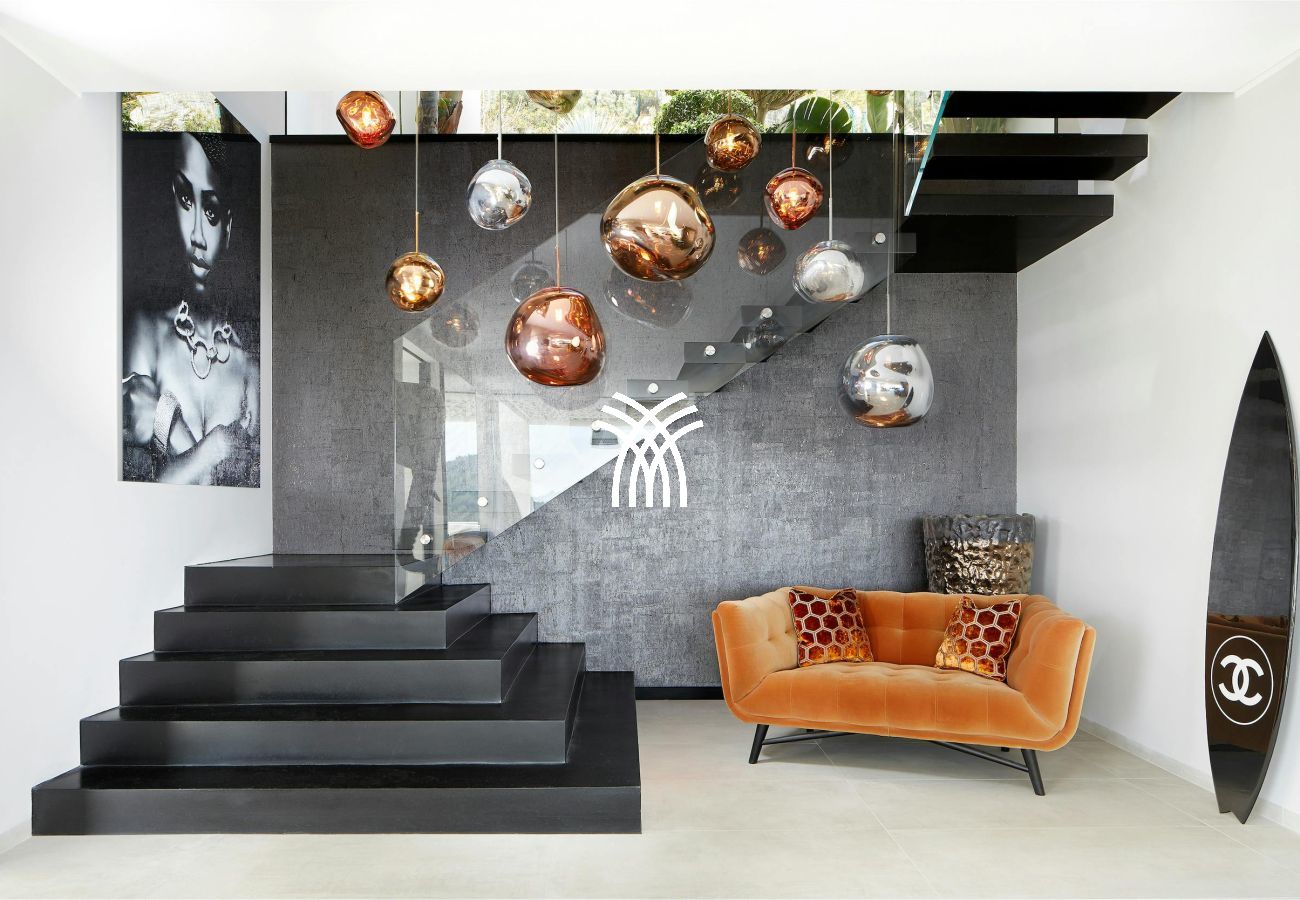 La propriété se compose de cinq suites somptueuses avec salles de bains privatives, dont quatre à l’étage supérieur, toutes équipées de téléviseurs grand écran, de systèmes audio Zeppelin et d’une literie haut de gamme. Au rez-de-chaussée, une cinquième chambre en suite est facilement accessible. Le vaste salon lumineux donne sur une terrasse panoramique, tandis que la salle à manger accueille jusqu’à 14 convives. La cuisine professionnelle signée Zeyko est dotée d’équipements dernier cri : fours, steamer, grill teppanyaki, machine à glaçons, frigo walk-in Siemens.