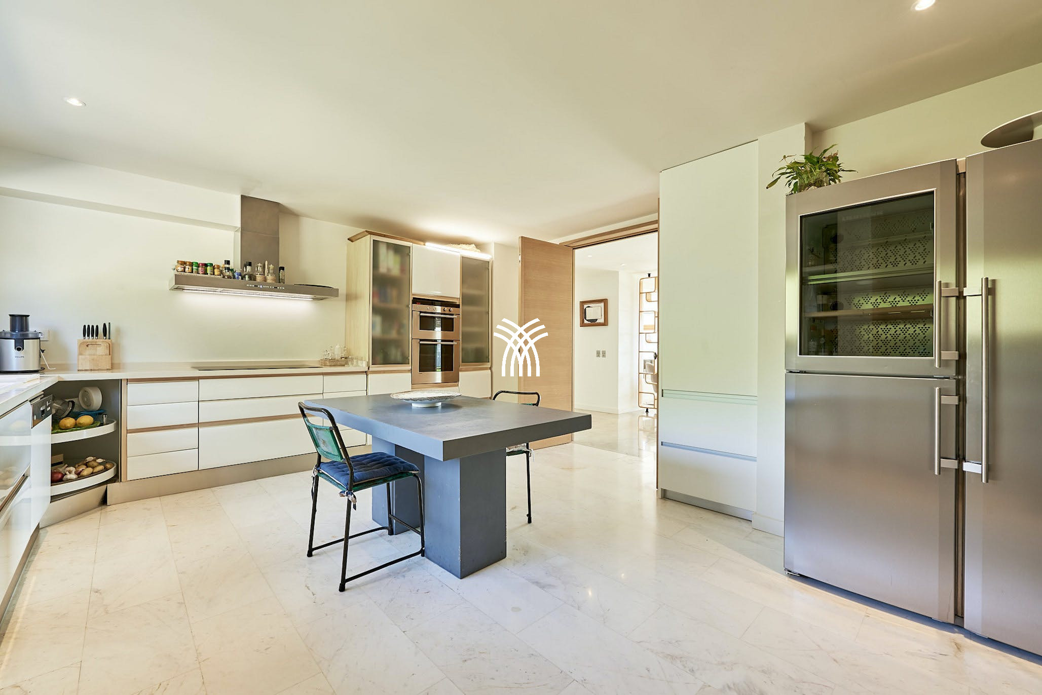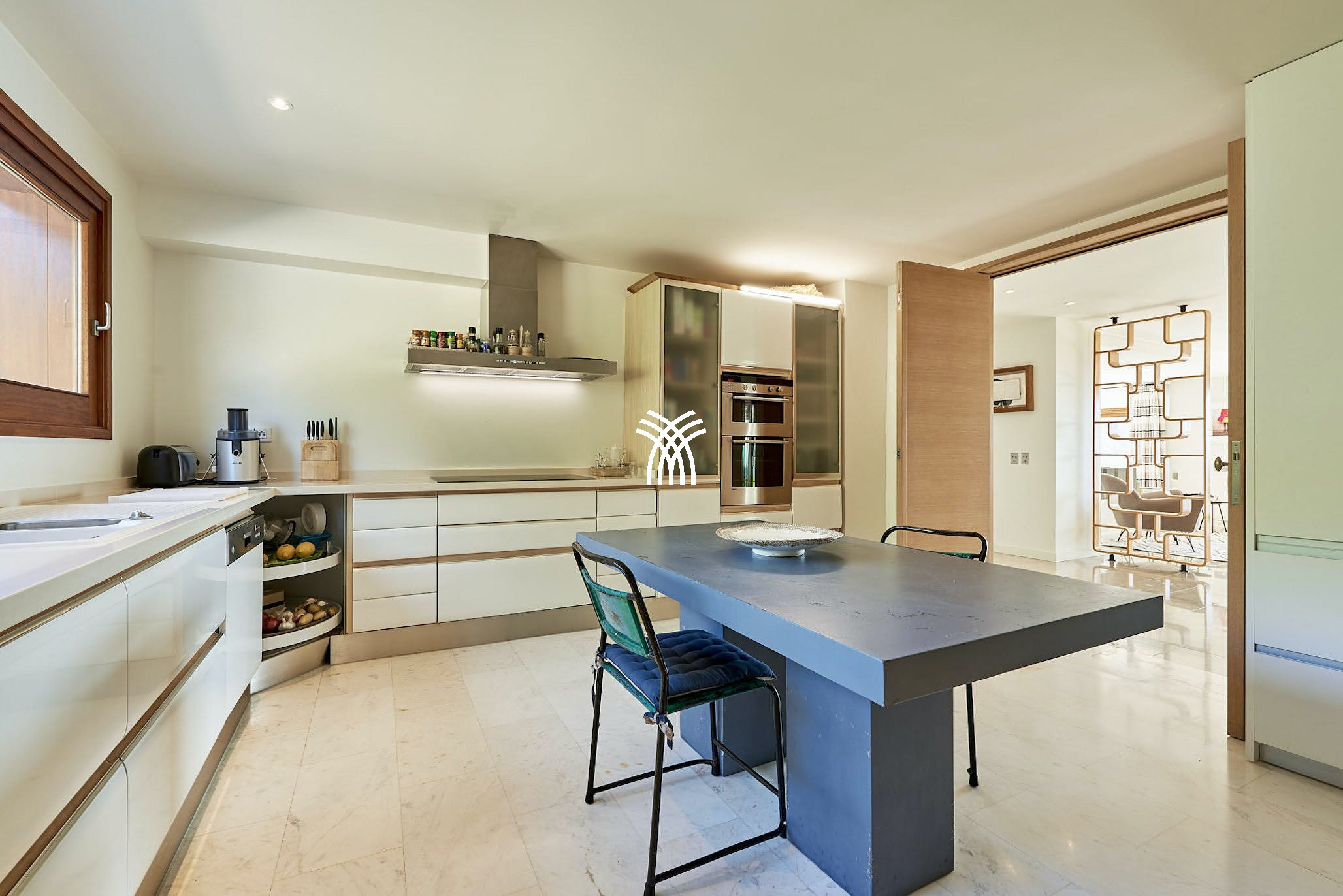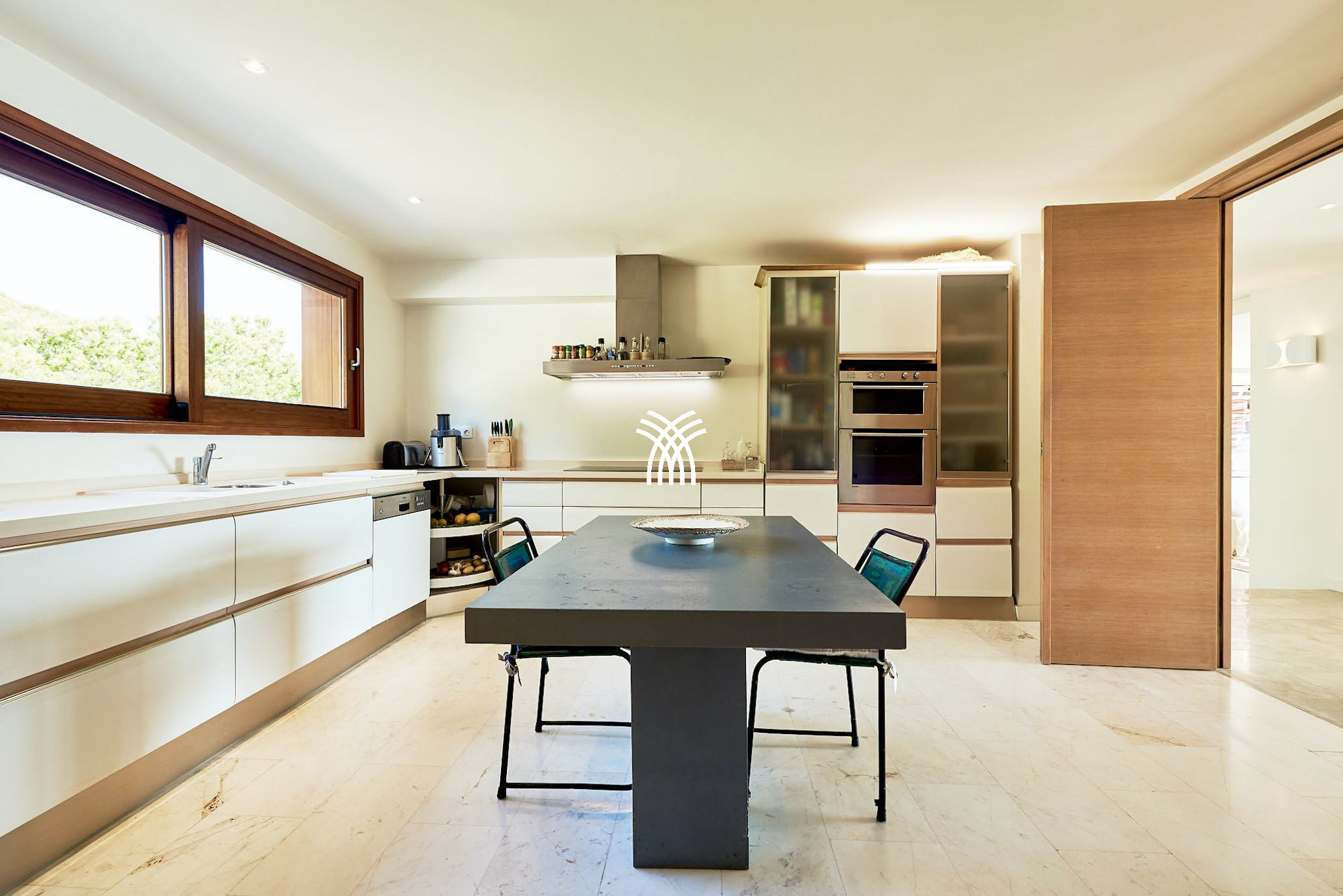 Conçue pour ceux qui apprécient la beauté, le confort et la tranquillité, cette villa élégante offre une disposition ouverte spacieuse avec une cuisine moderne entièrement équipée, comprenant un îlot élégant de 4 mètres et une salle à manger pour dix personnes. L'ample espace de vie s'étend harmonieusement à travers des portes coulissantes vitrées vers les terrasses ensoleillées et la terrasse de la piscine, offrant une vue imprenable et ininterrompue sur la mer Méditerranée.