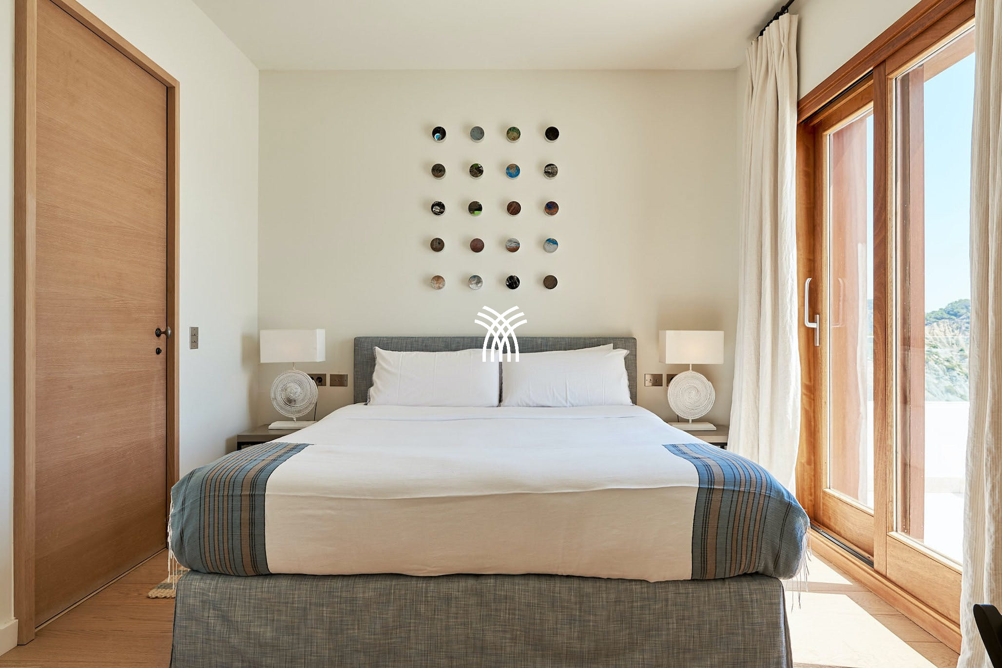 La Villa Viviana propose trois magnifiques chambres doubles avec salles de bains attenantes. Deux sont situées dans la maison principale, chacune offrant des vues panoramiques sur la mer, la climatisation et le chauffage au sol. La suite de l'étage supérieur offre plus d'intimité, une grande terrasse et une vue imprenable sur Es Vedra et la côte environnante.
