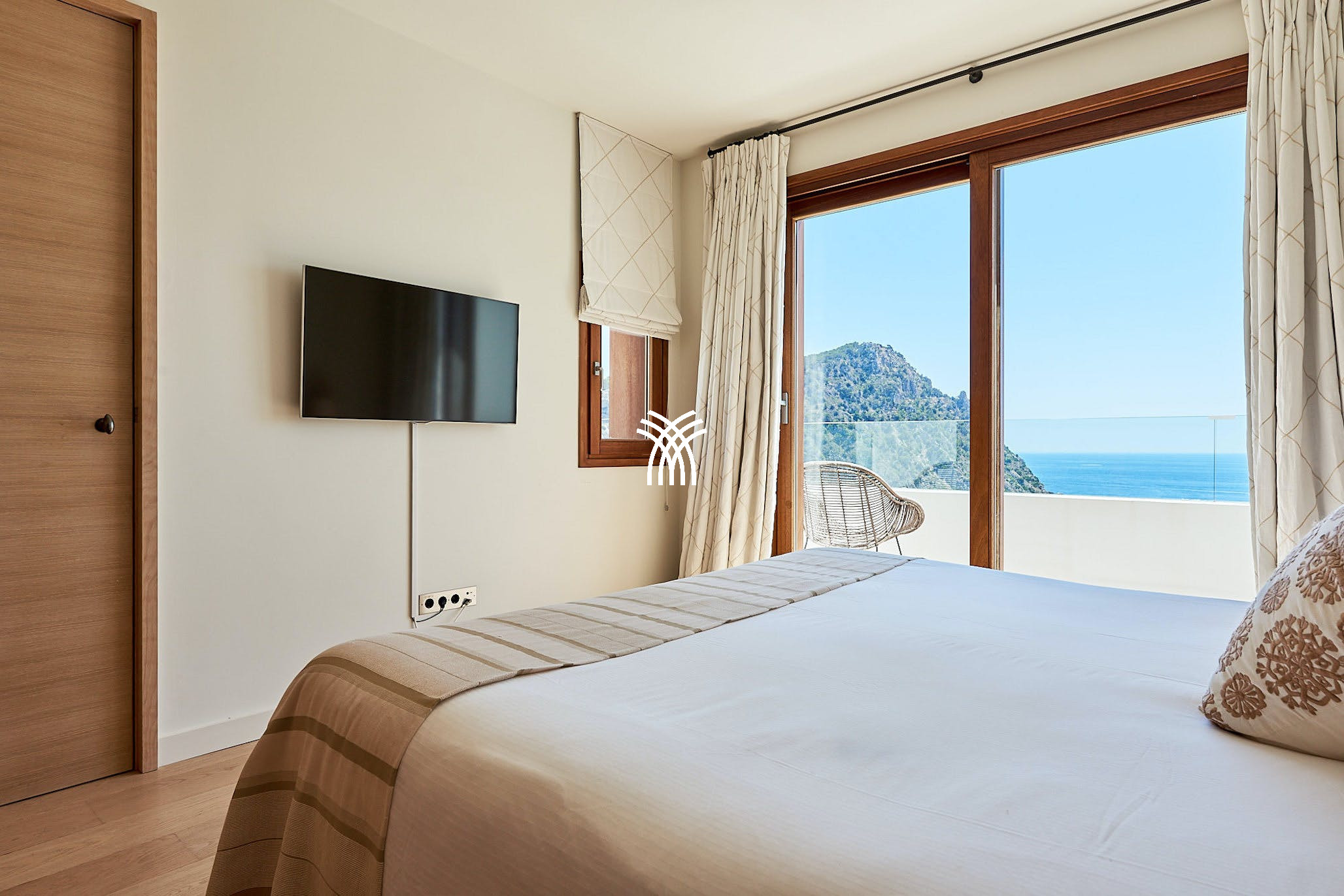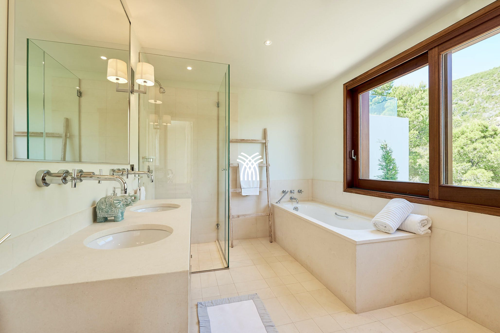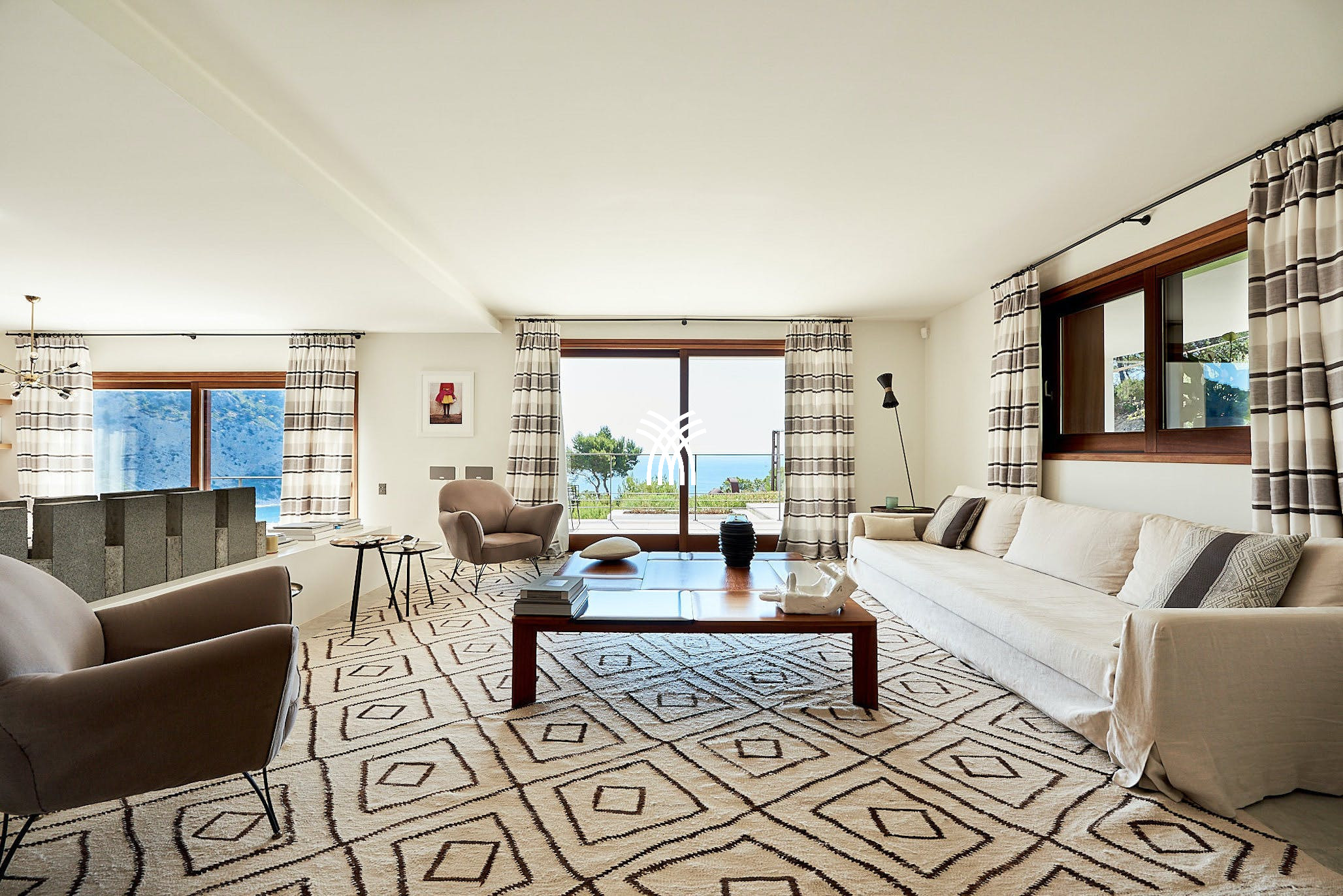 Entouré de collines couvertes de pins parfumés, les jardins expansifs offrent un havre de paix avec plusieurs espaces de détente extérieurs et zones sociales. Que vous vous détendez sur les bains de soleil qui surplombent Sol den Serra ou que vous vous relaxez près de la piscine à débordement qui semble se fondre dans la mer Méditerranée, chaque coin de cette propriété offre une occasion de s'imprégner de la beauté naturelle de l'île.