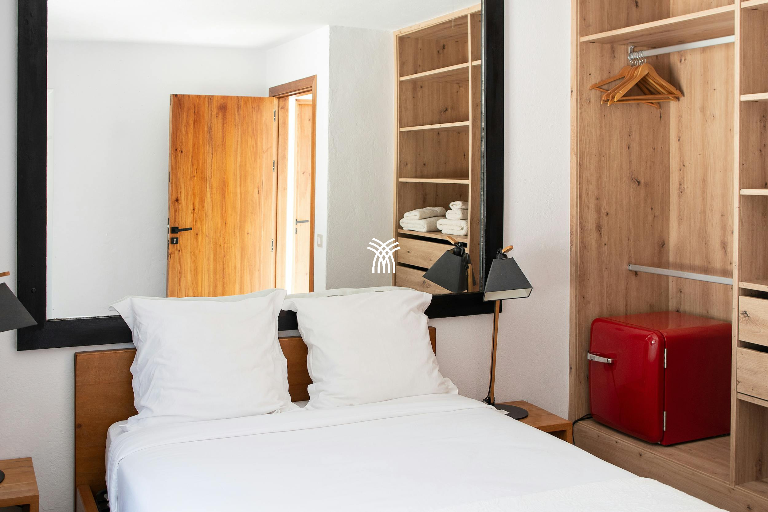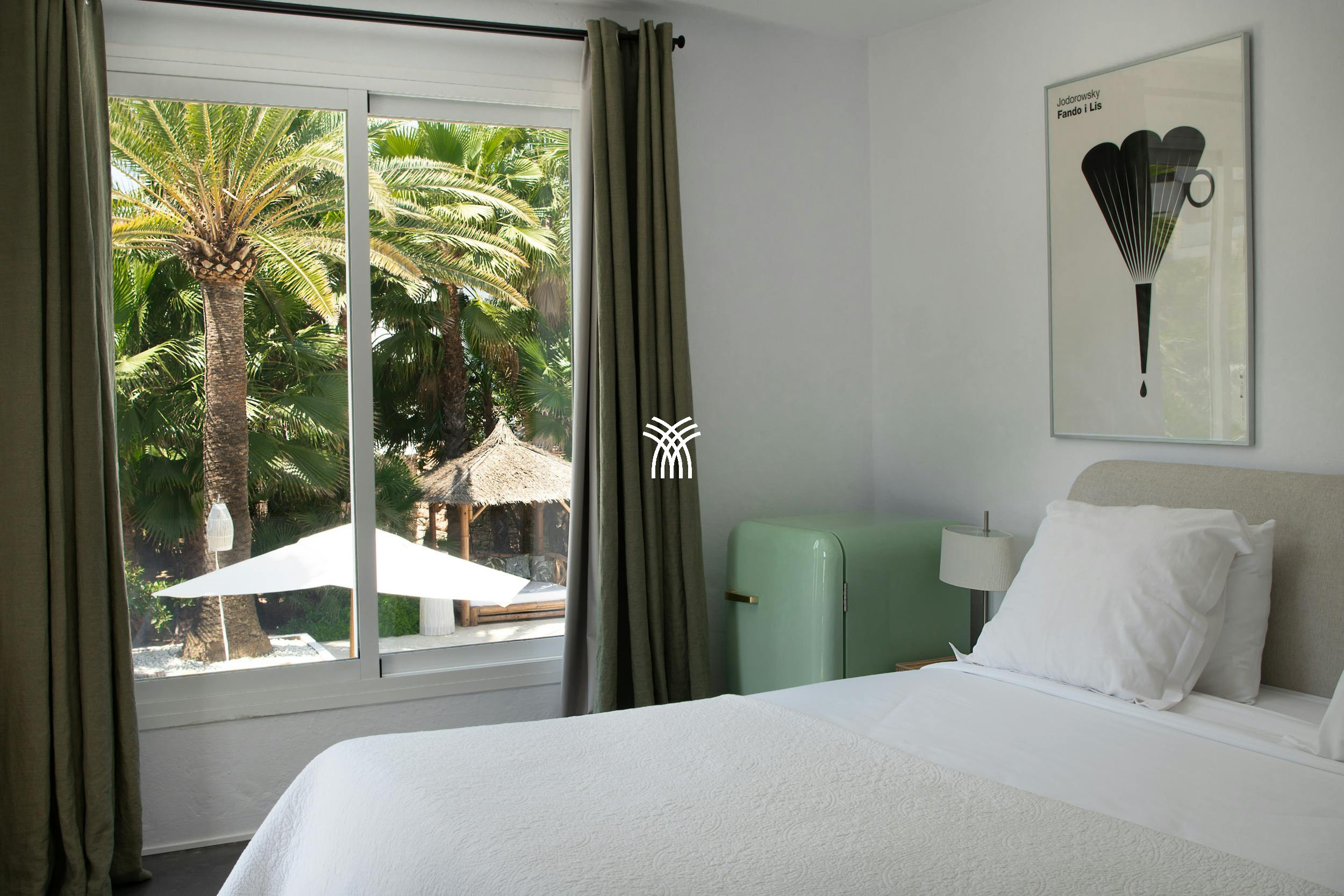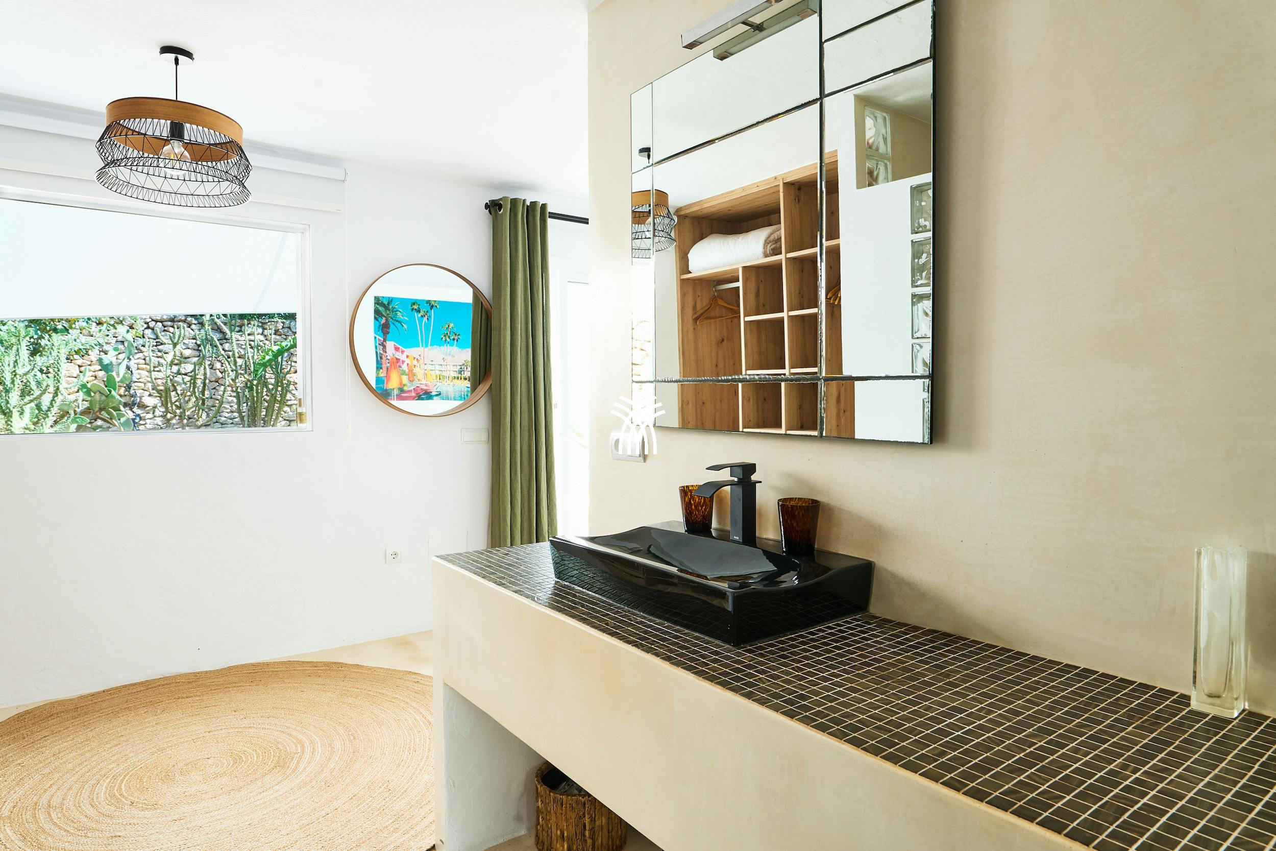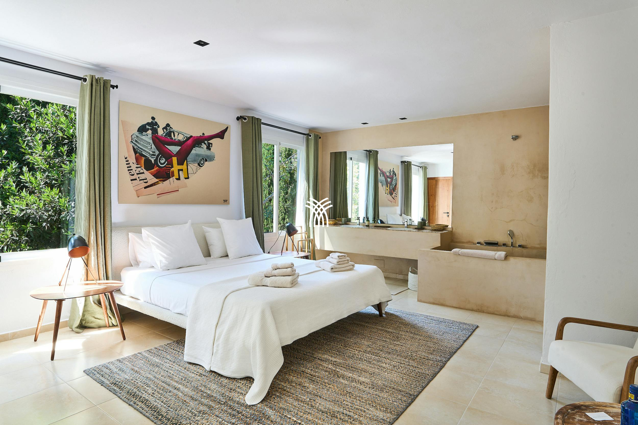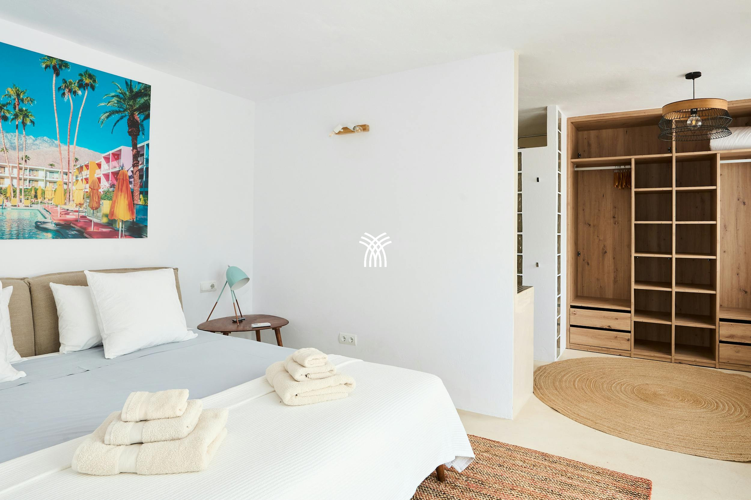 La Villa Viviana propose trois magnifiques chambres doubles avec salles de bains attenantes. Deux sont situées dans la maison principale, chacune offrant des vues panoramiques sur la mer, la climatisation et le chauffage au sol. La suite de l'étage supérieur offre plus d'intimité, une grande terrasse et une vue imprenable sur Es Vedra et la côte environnante.