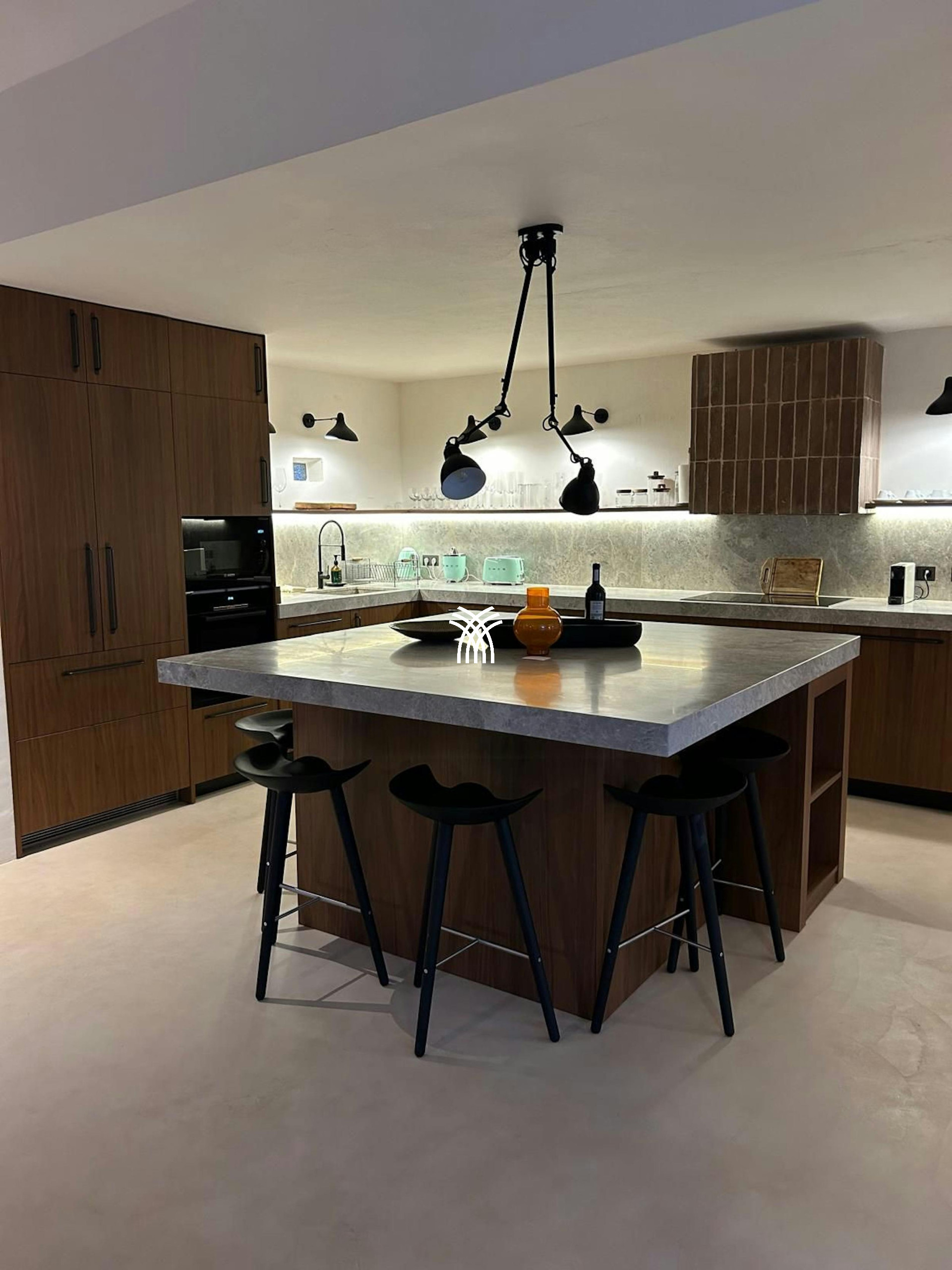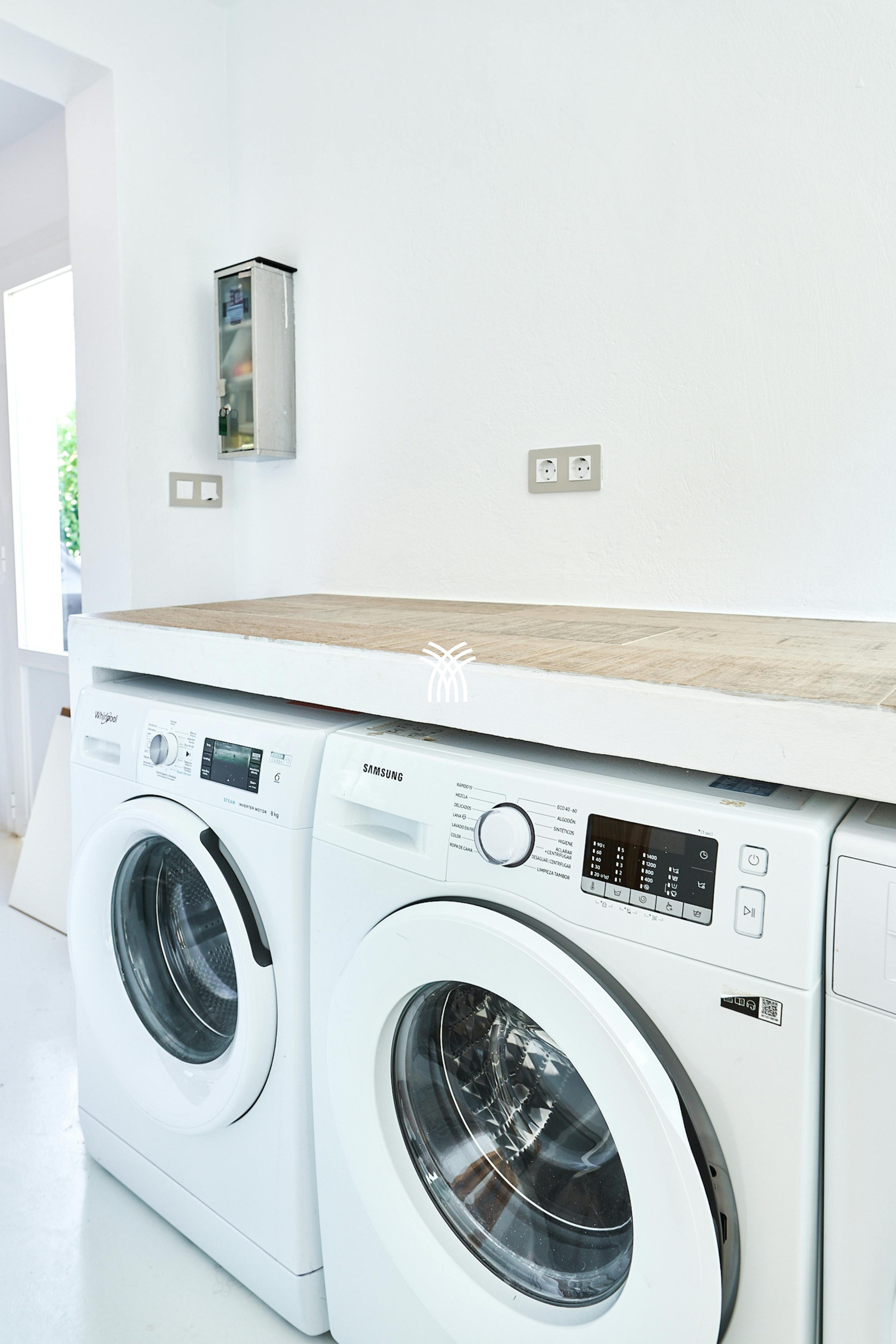 À l'intérieur, la villa continue de séduire avec une disposition ouverte et lumineuse et des intérieurs blancs et frais. L'espace de vie spacieux comprend deux canapés de salon et un espace détente en mezzanine avec des portes vitrées surdimensionnées qui se connectent parfaitement à la terrasse de la piscine. La cuisine moderne est subtilement intégrée à l'espace de vie, créant une atmosphère détendue idéale pour socialiser et divertir.
