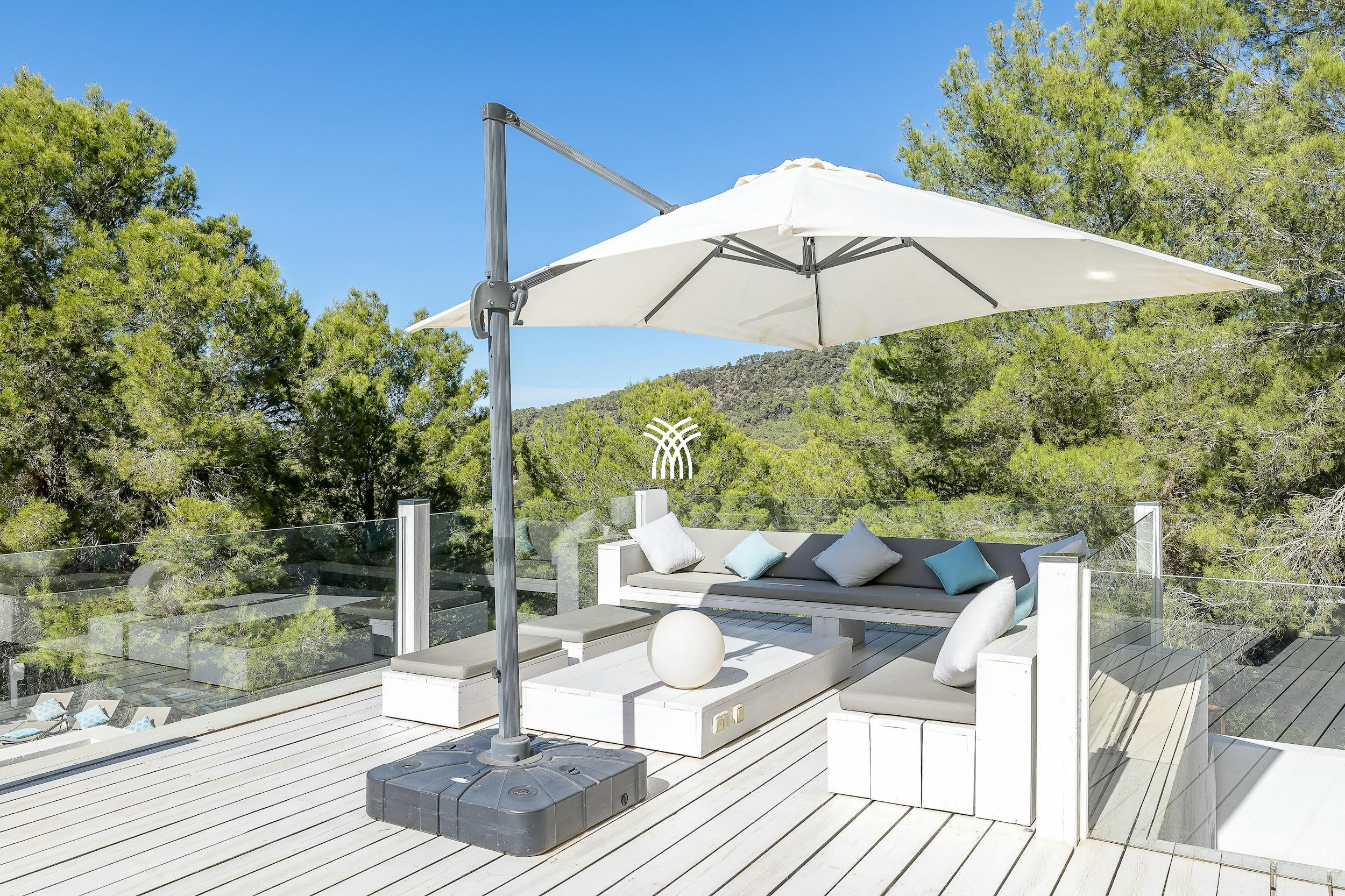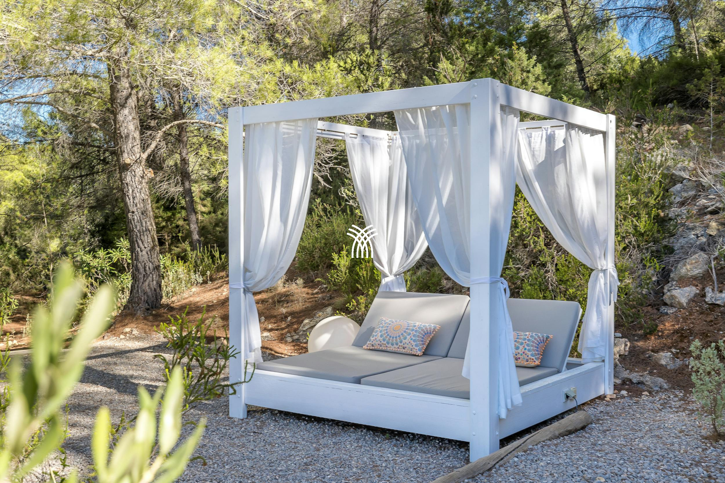 Conçu dans un esprit de détente, Sunset Paradise dispose d'une piscine d'eau salée de 10 mètres qui scintille sous le soleil méditerranéen. Plusieurs zones de détente comprennent des lits de jour spacieux, un salon à baldaquin ombragé sous les arbres, et une terrasse sur le toit spectaculaire—chaque espace est rehaussé par un système sonore Sonos complet, vous permettant de créer la bande-son parfaite pour chaque moment.