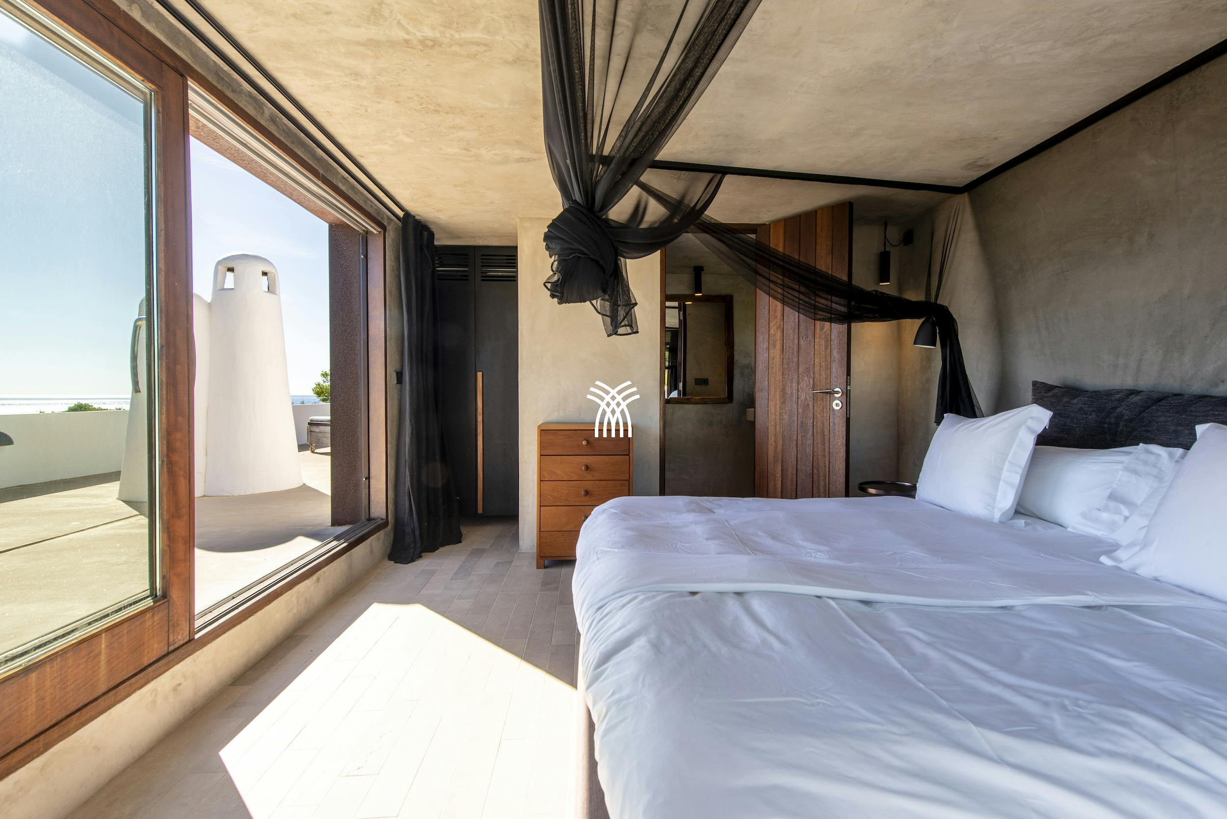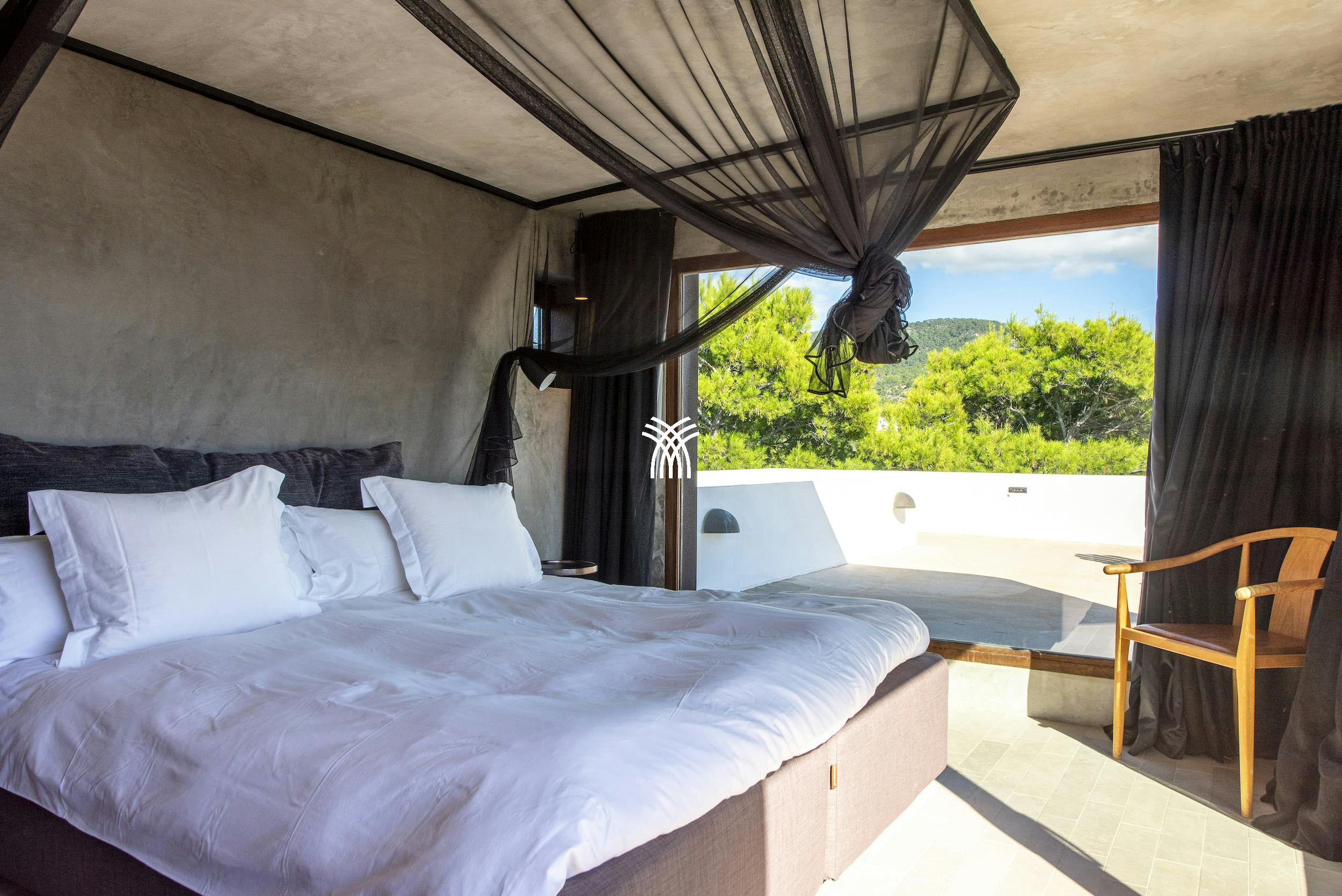 La Villa Viviana propose trois magnifiques chambres doubles avec salles de bains attenantes. Deux sont situées dans la maison principale, chacune offrant des vues panoramiques sur la mer, la climatisation et le chauffage au sol. La suite de l'étage supérieur offre plus d'intimité, une grande terrasse et une vue imprenable sur Es Vedra et la côte environnante.