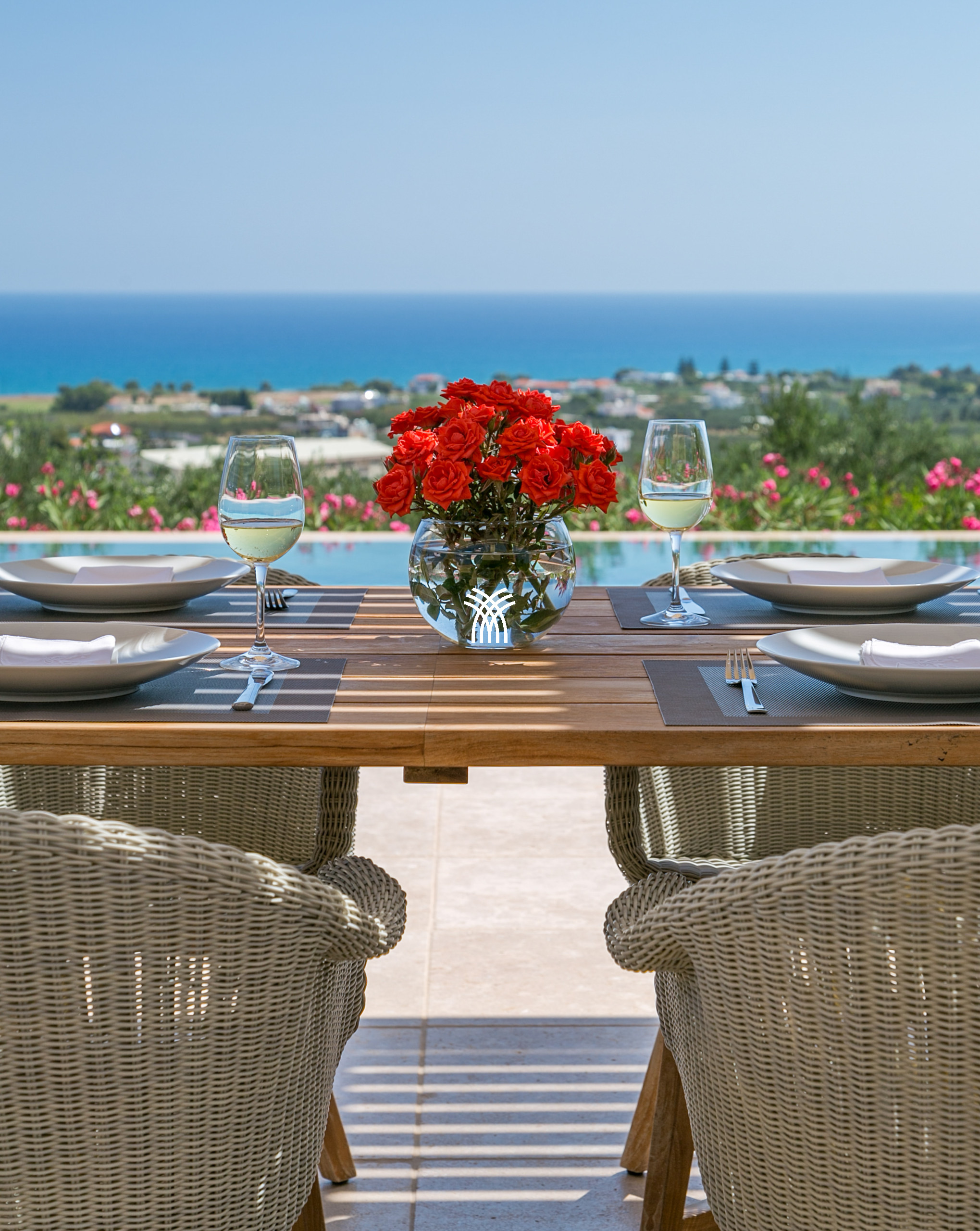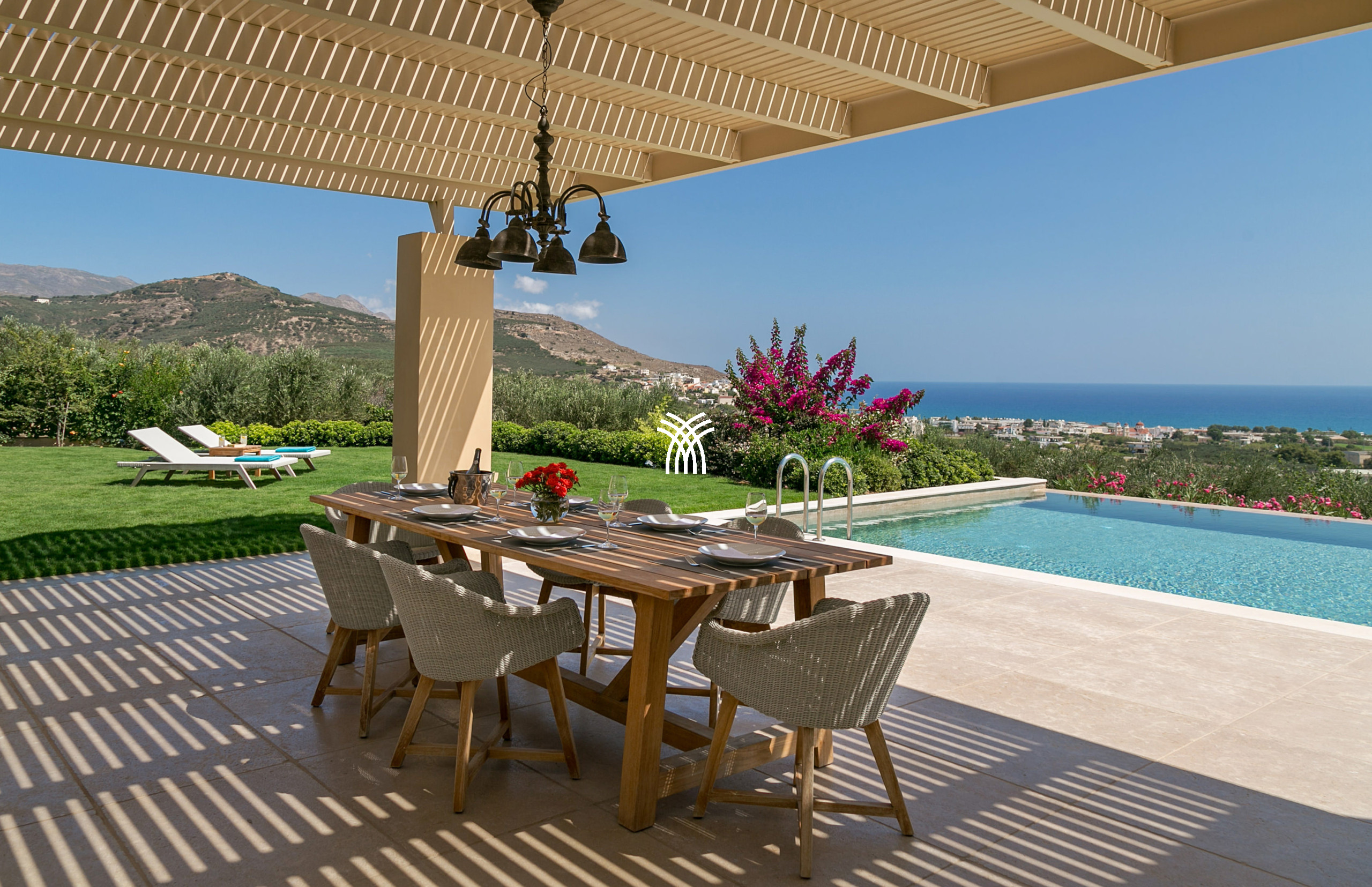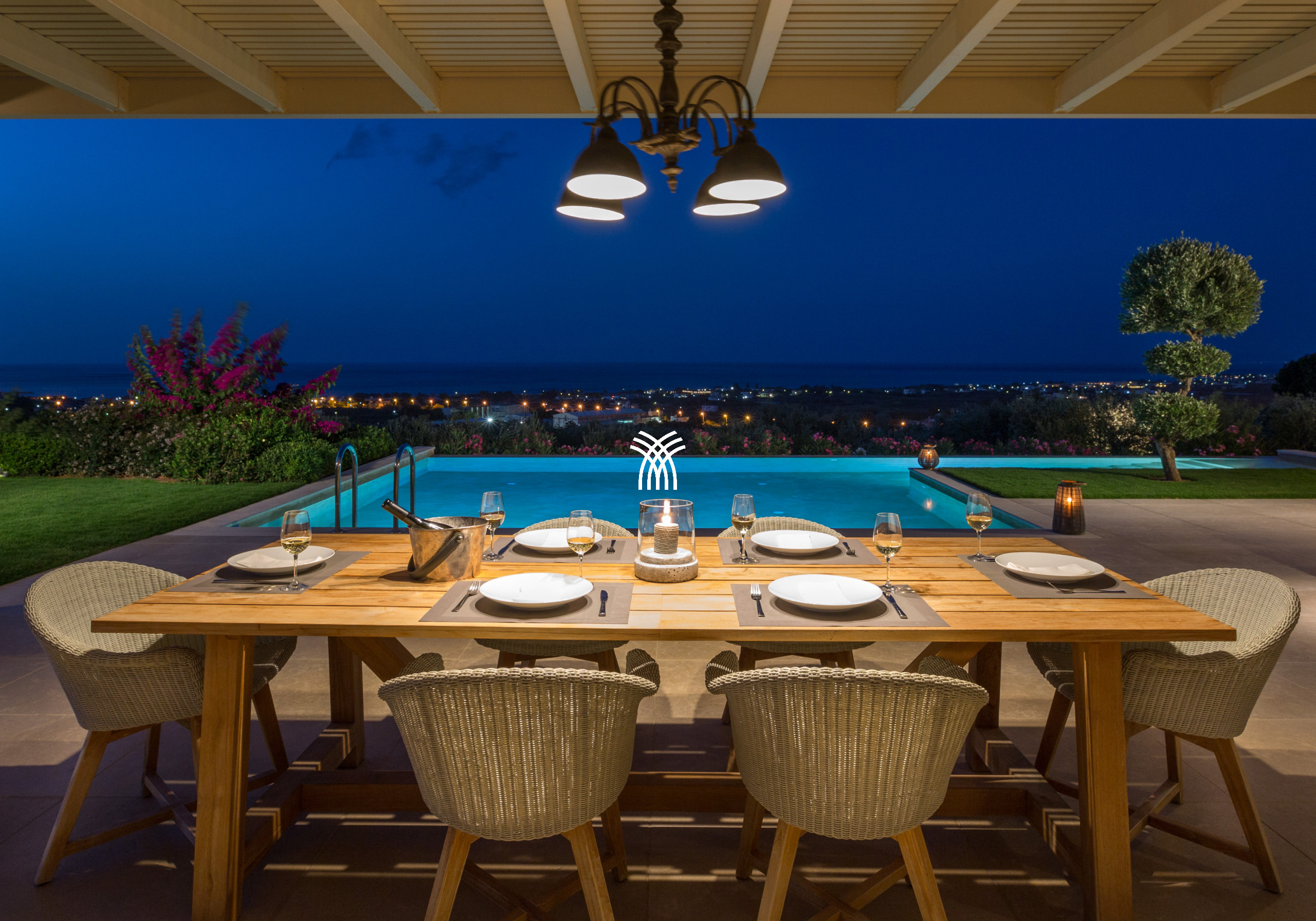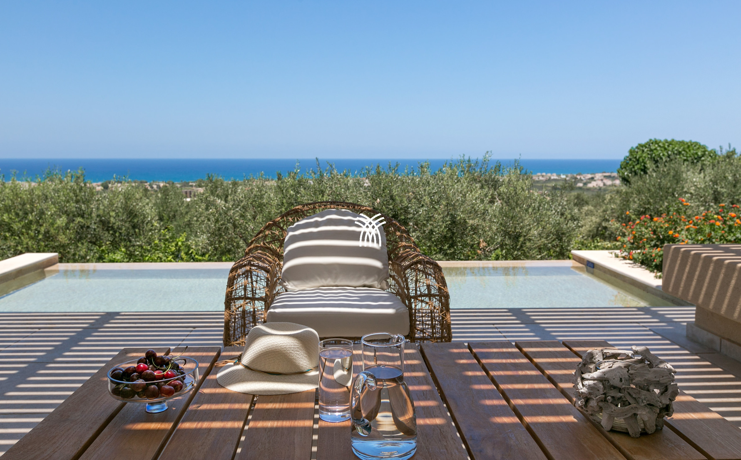 La Villa Ianara incarne l’idée même d’une location de villa luxe en Crète, où la nature s’invite dans chaque instant. L’infini de la piscine, pavée de galets couleur sable, capte les jeux de lumière et se fond dans le bleu profond de la mer. Le jardin méditerranéen s’étend jusqu’aux oliveraies et aux potagers biologiques mis à la disposition des hôtes : ici, cueillir des oranges, des pêches ou choisir quelques herbes fraîches pour le dîner devient un rituel simple et précieux. L’ensemble respire la générosité de la terre crétoise, reflétant le soin et la passion des propriétaires pour cet environnement unique.