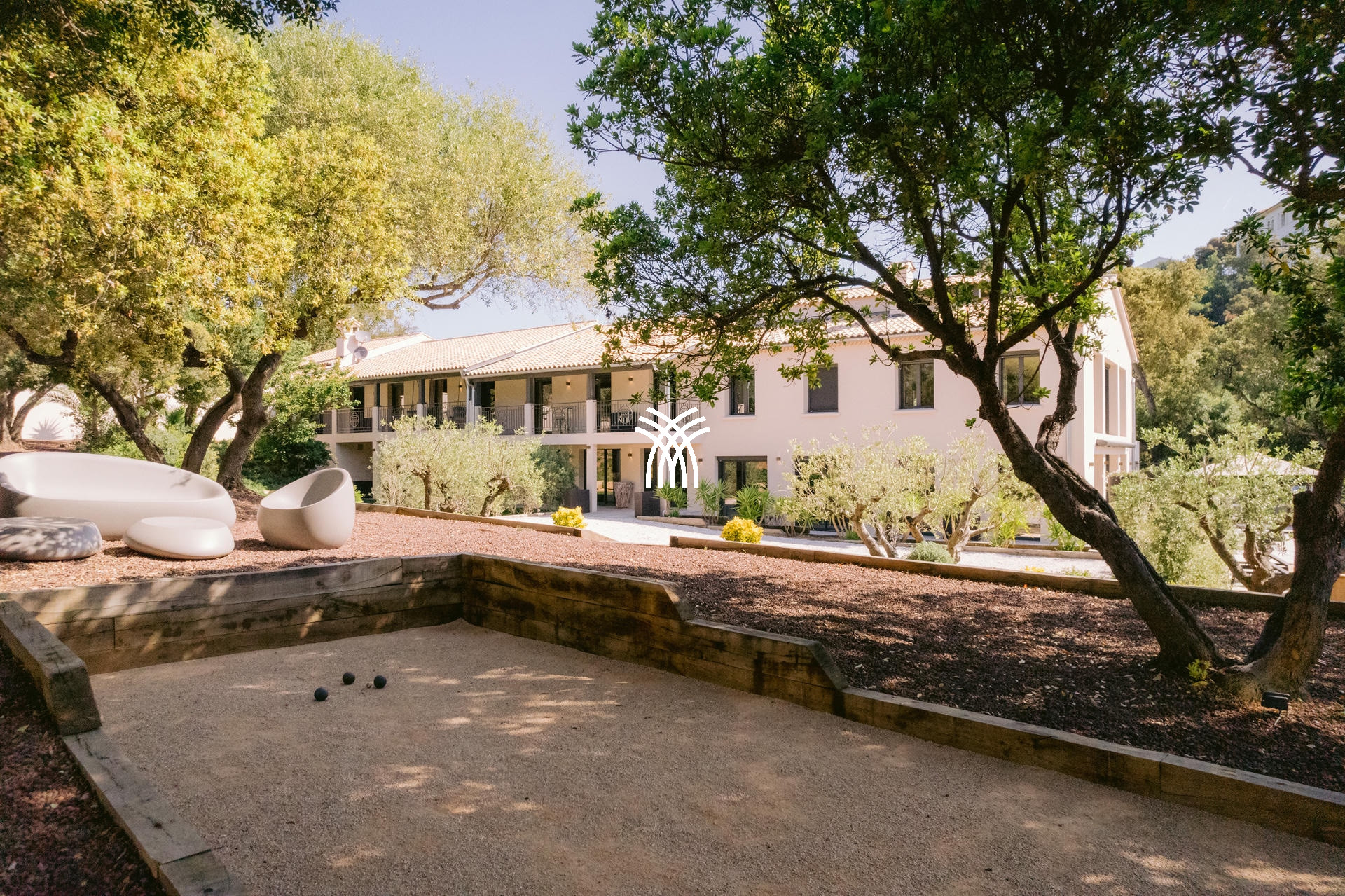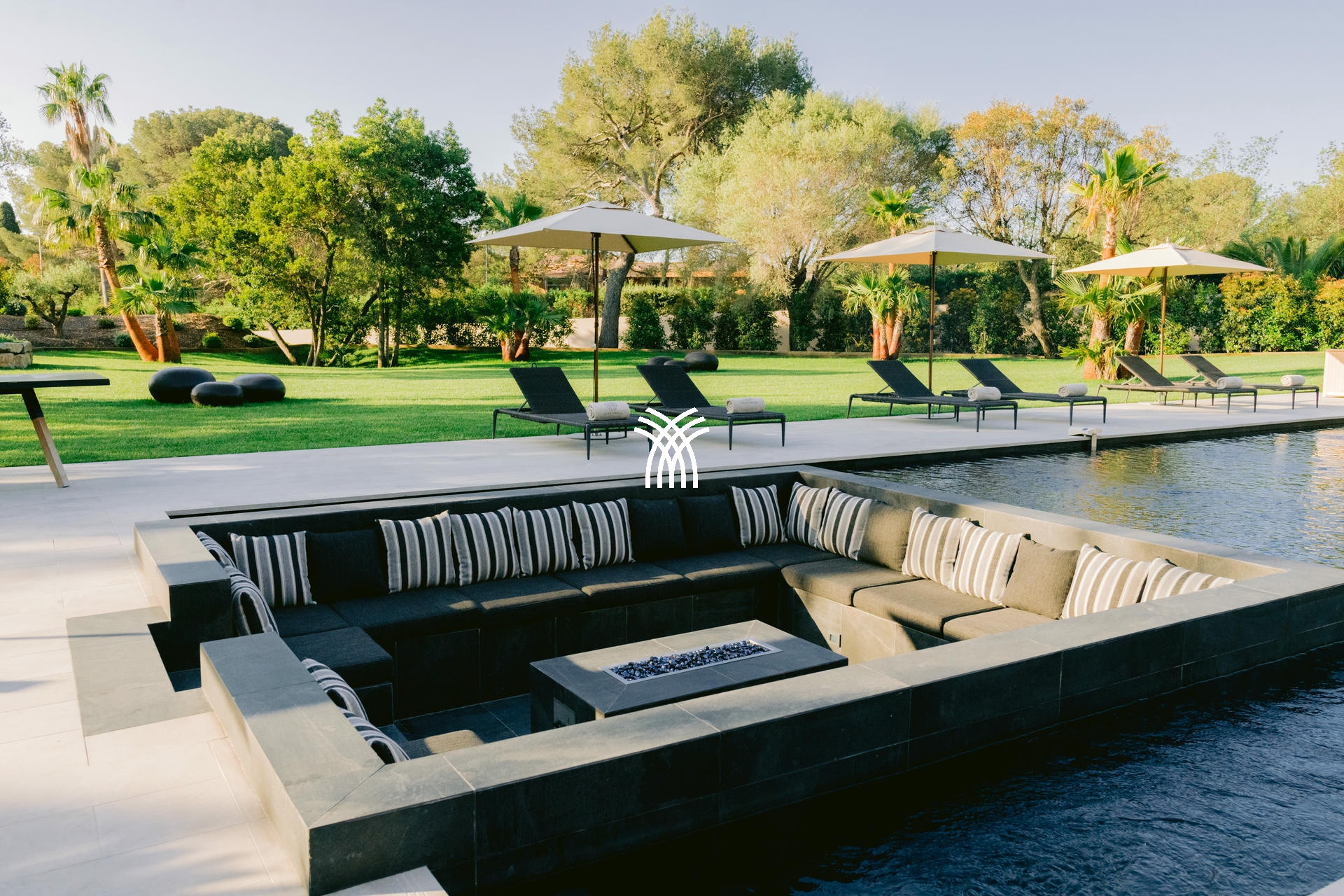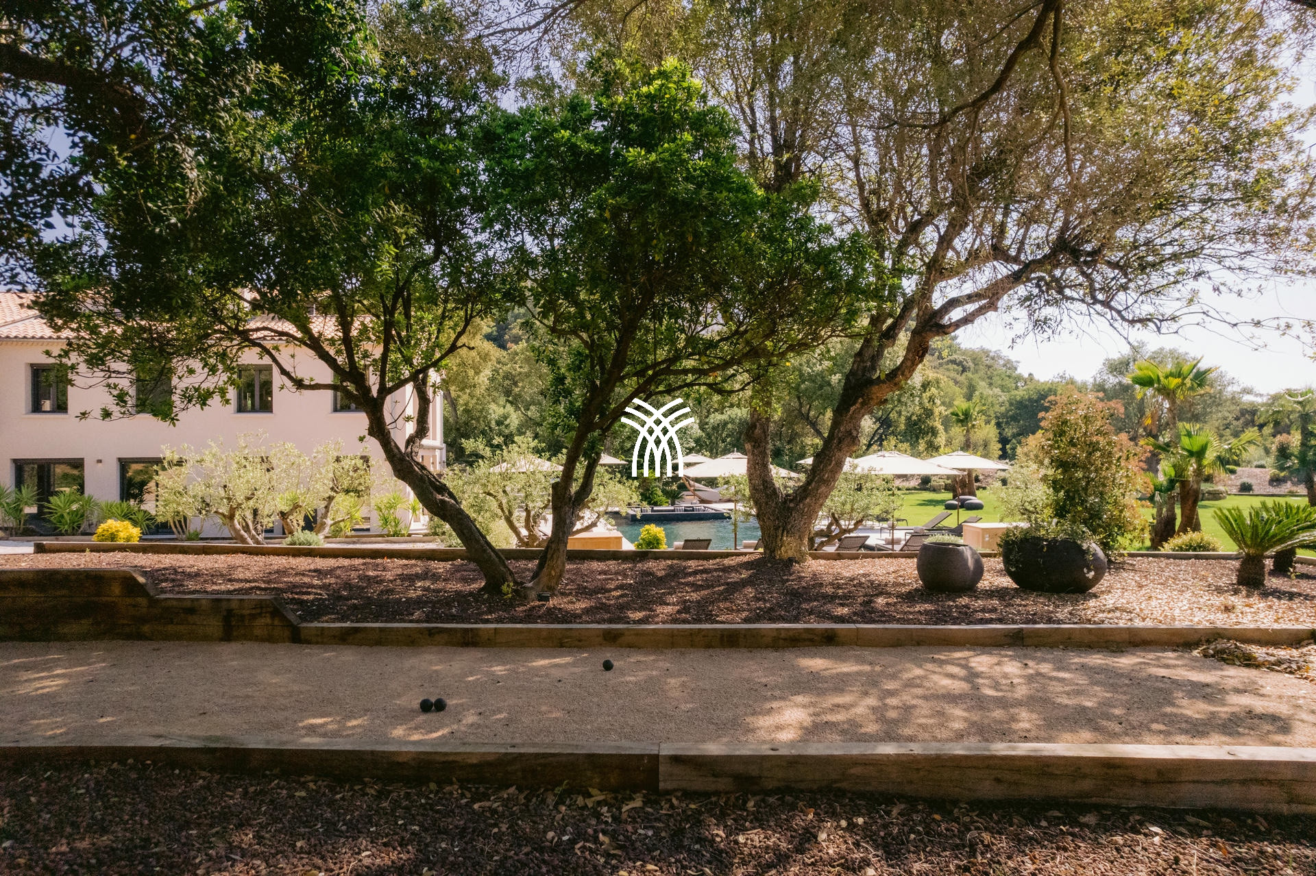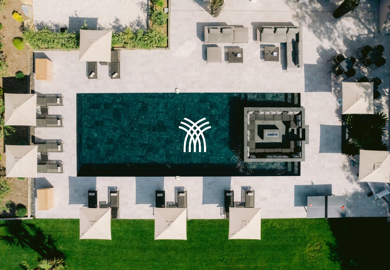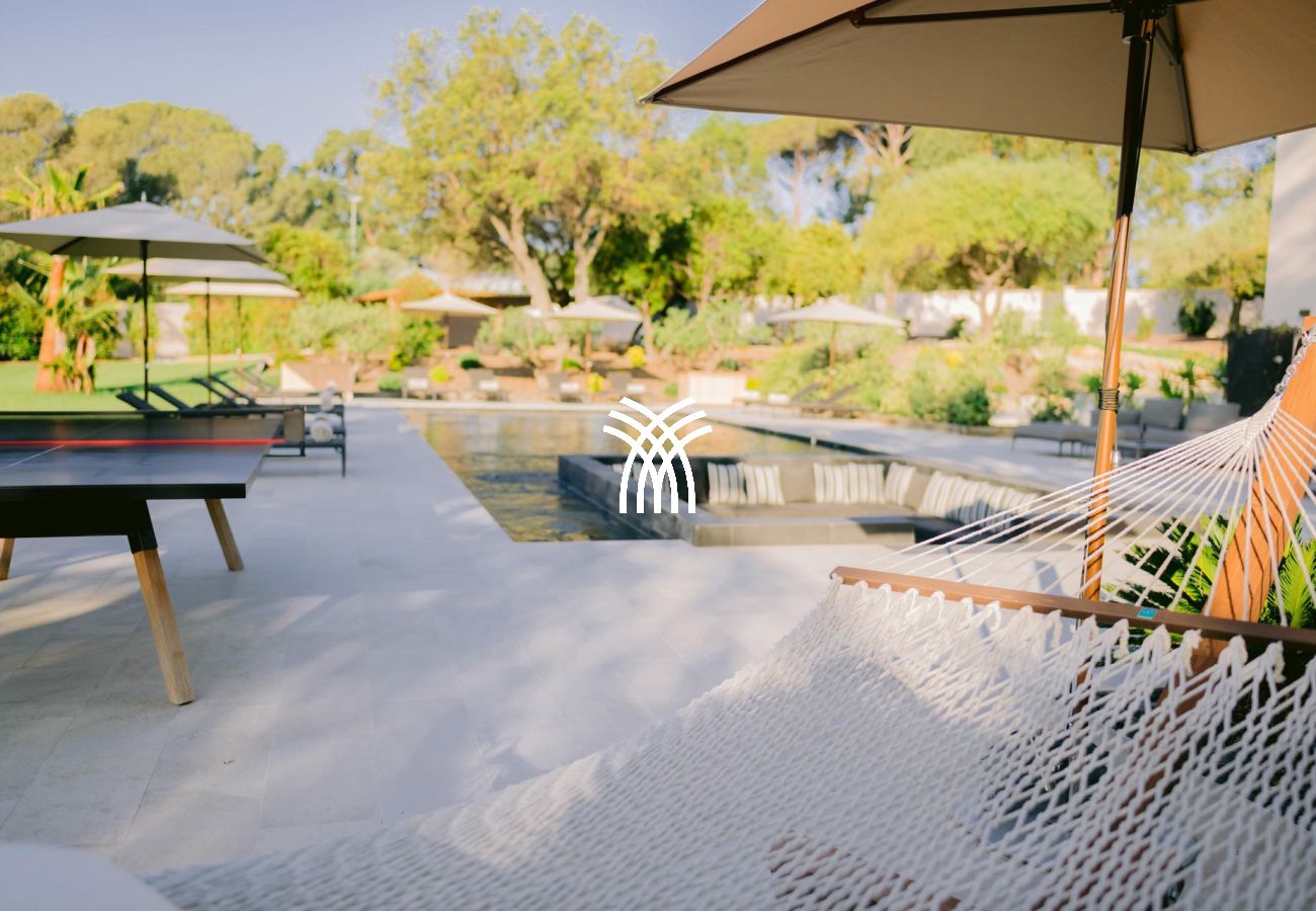 Son jardin luxuriant, agrémenté de majestueux palmiers, dévoile une piscine chauffée de 16x6m avec un brasero intégré, créant une ambiance chaleureuse pour les soirées d’été. Un vaste pool house avec cuisine professionnelle et barbecue complète cet espace extérieur conçu pour des moments de convivialité inoubliables.