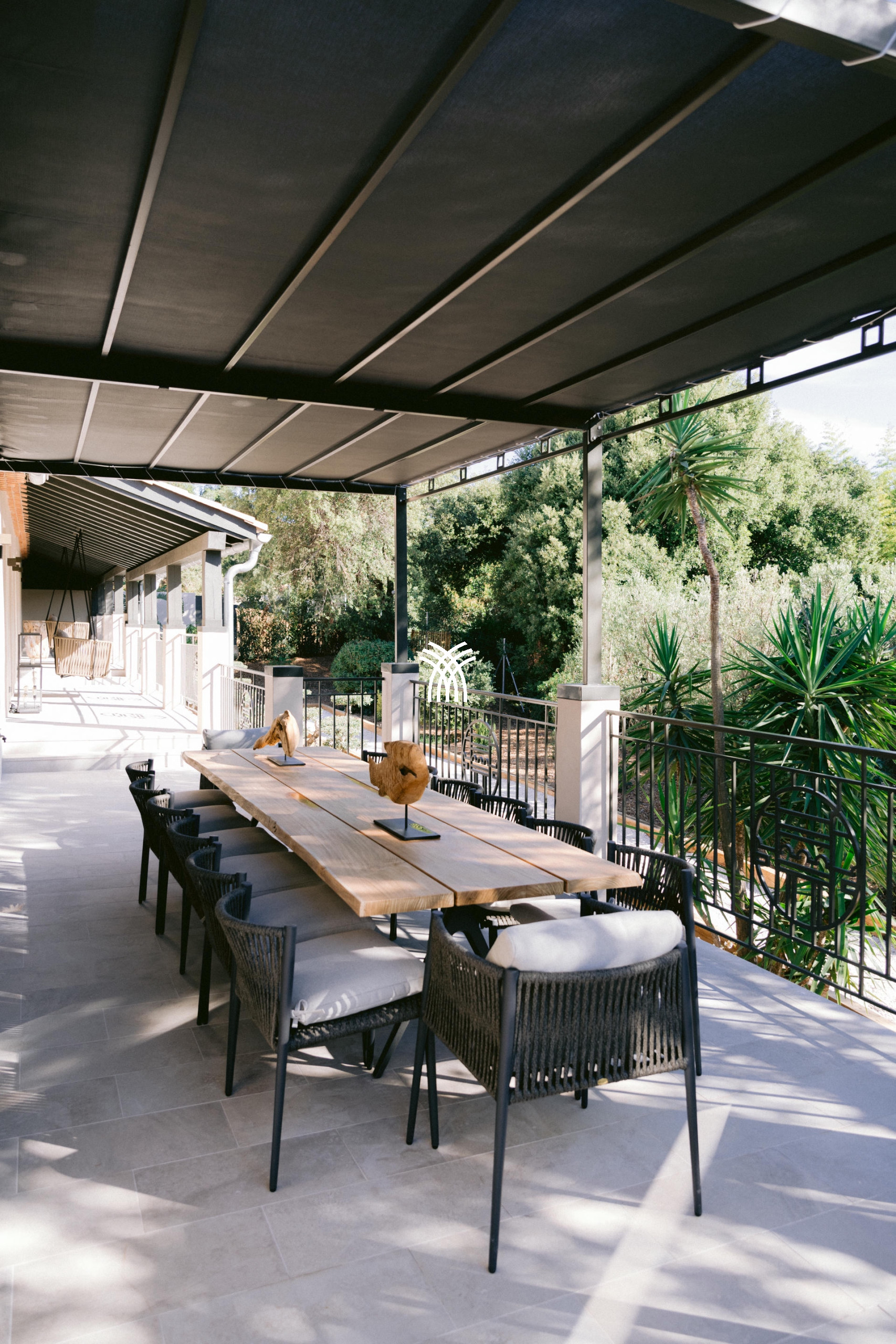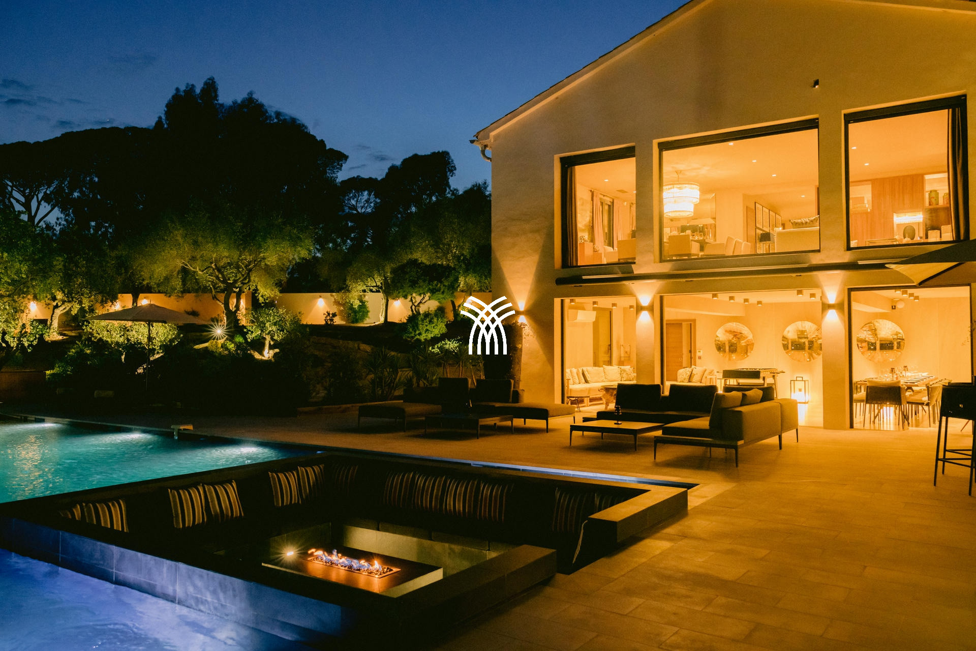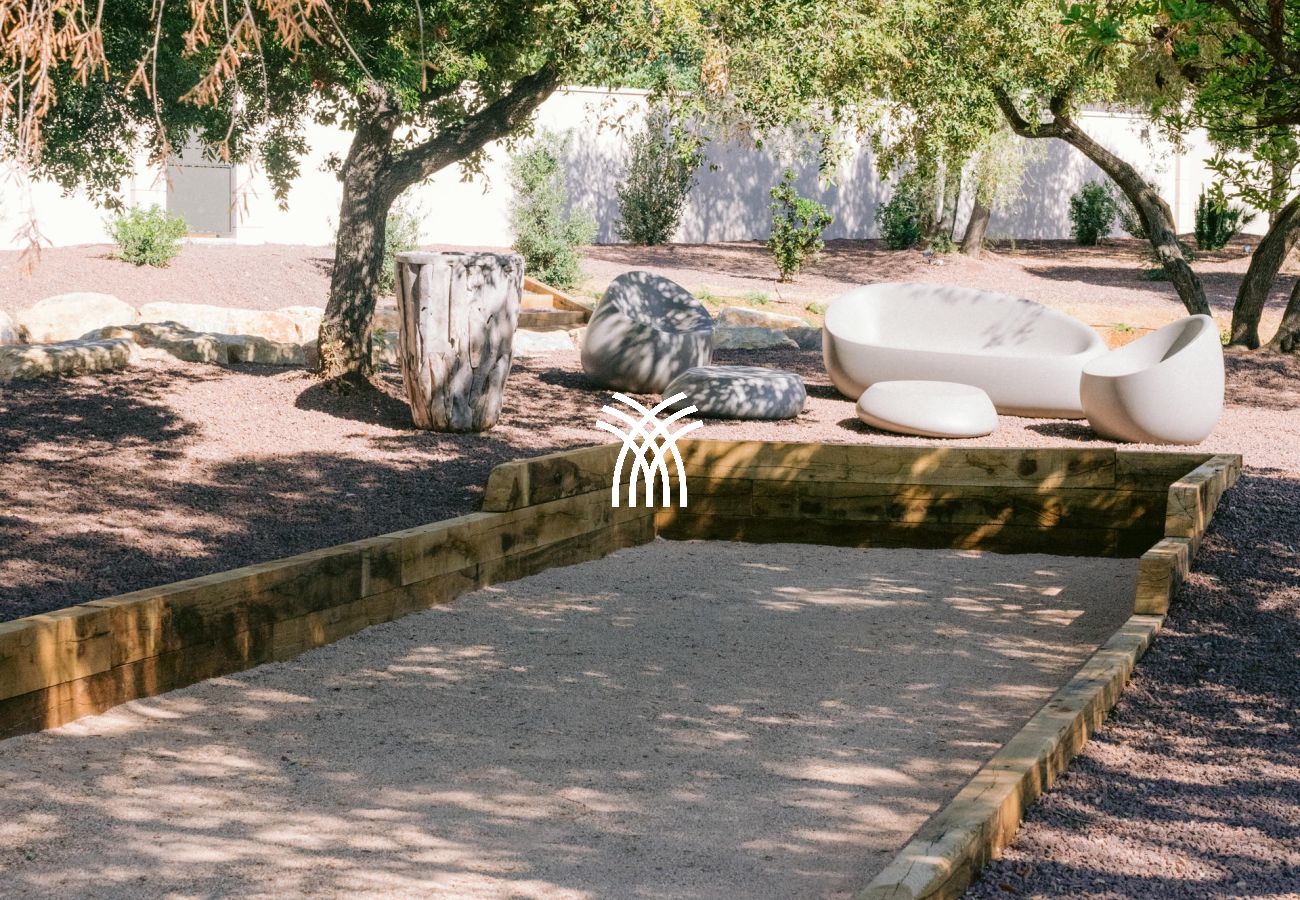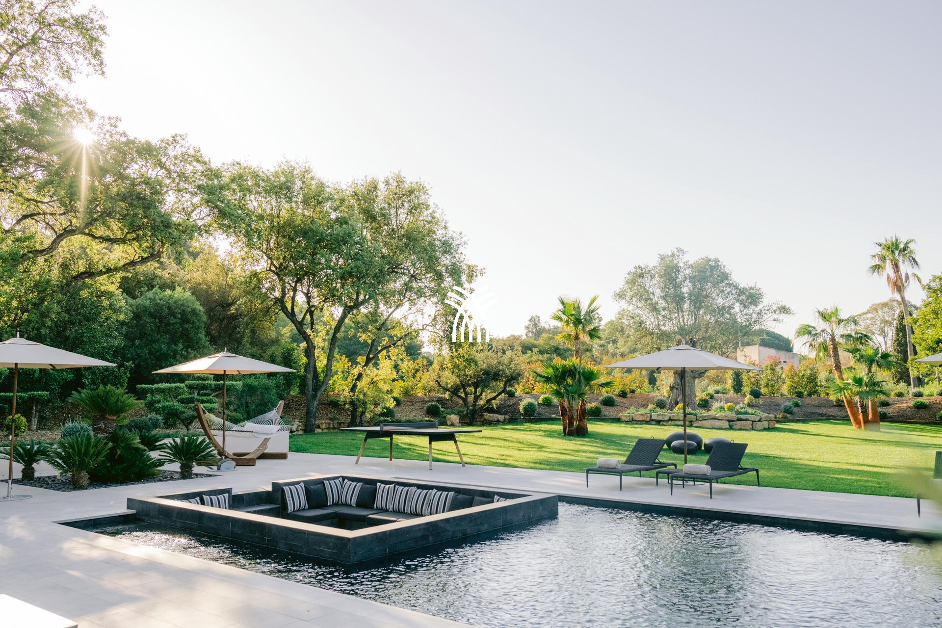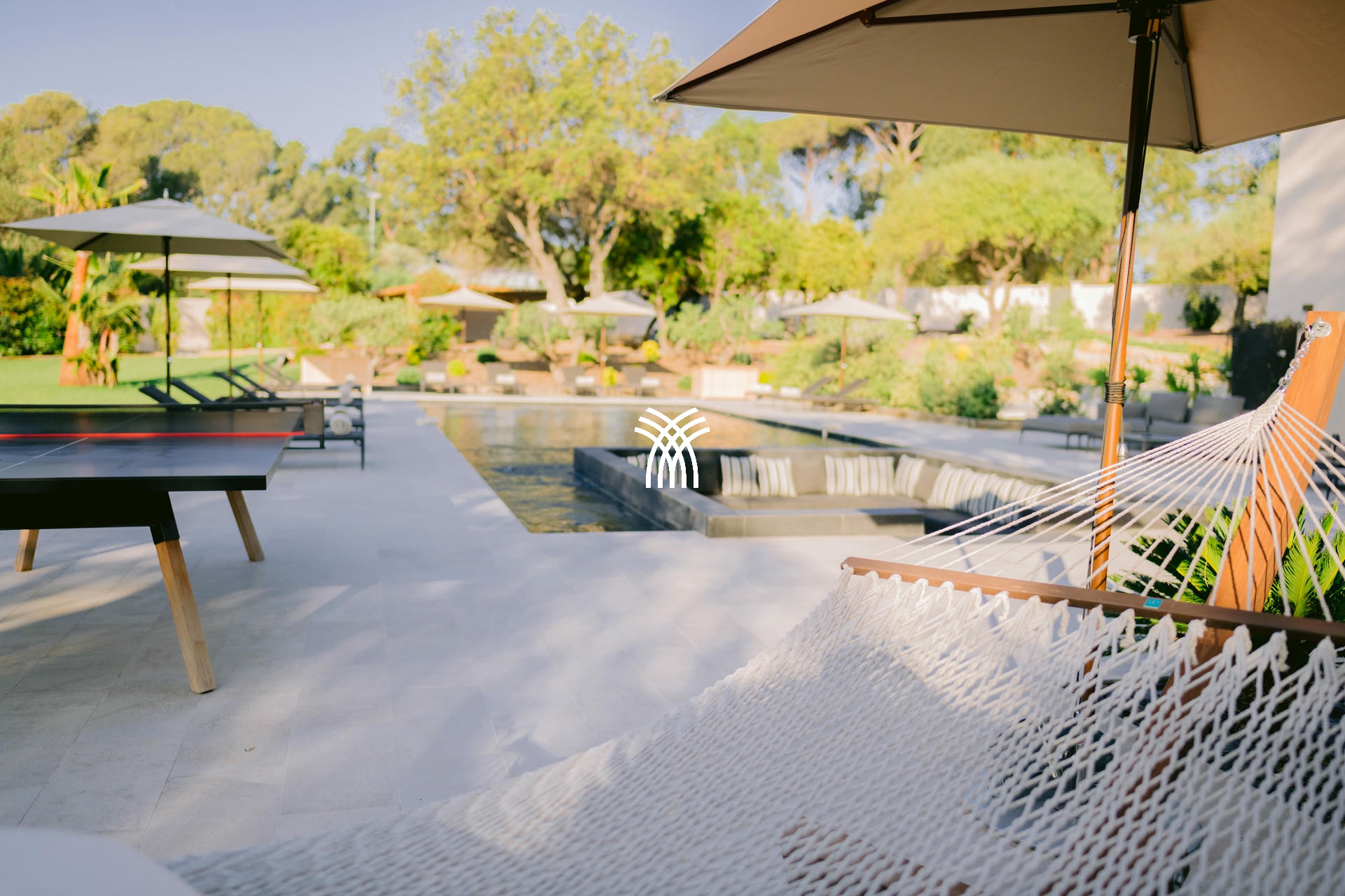Son jardin luxuriant, agrémenté de majestueux palmiers, dévoile une piscine chauffée de 16x6m avec un brasero intégré, créant une ambiance chaleureuse pour les soirées d’été. Un vaste pool house avec cuisine professionnelle et barbecue complète cet espace extérieur conçu pour des moments de convivialité inoubliables.