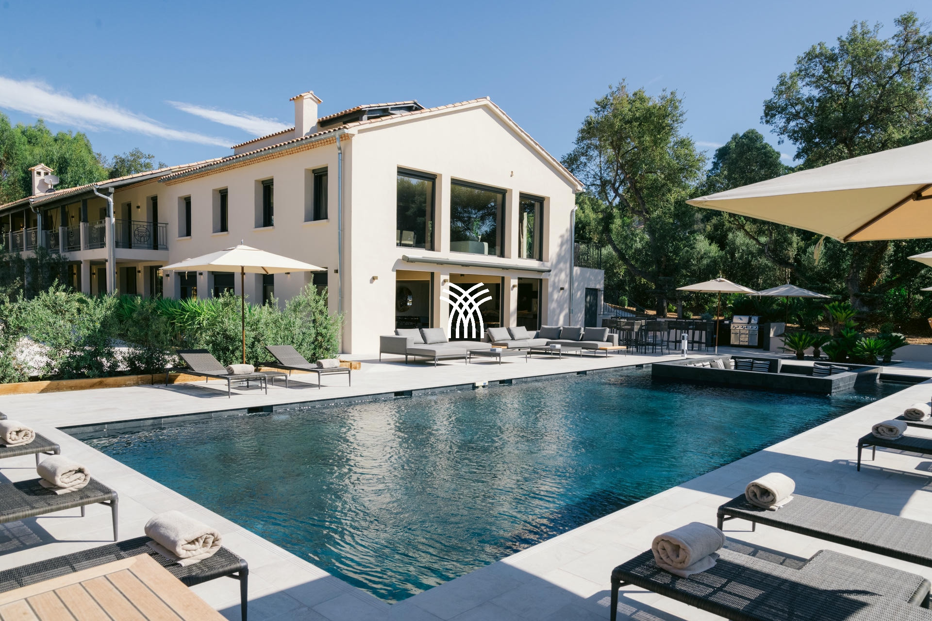 Située dans un domaine privé sécurisé, la Villa Reine est une somptueuse résidence de 640 m², nichée sur un terrain paysager de 3 000 m². Entre modernité et raffinement, elle offre une expérience luxueuse dans un cadre privilégié du Golfe de Saint-Tropez, à seulement 5 minutes de la plage de Sylvabelle et à 15 minutes de Pampelonne et du village de Saint-Tropez.