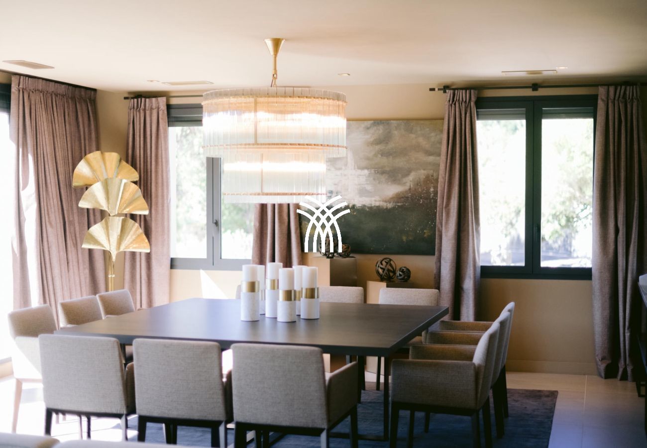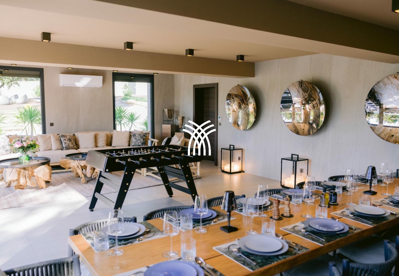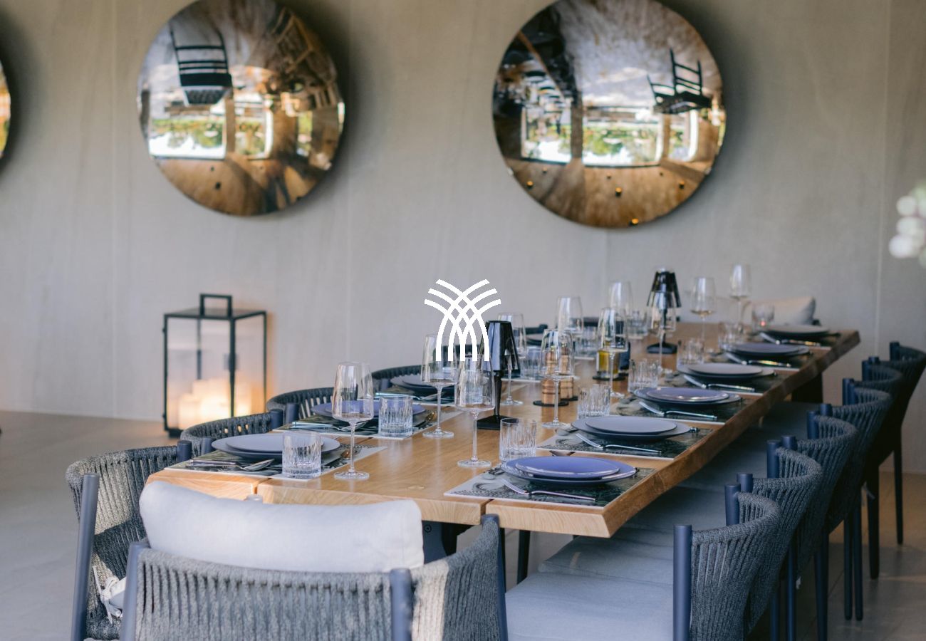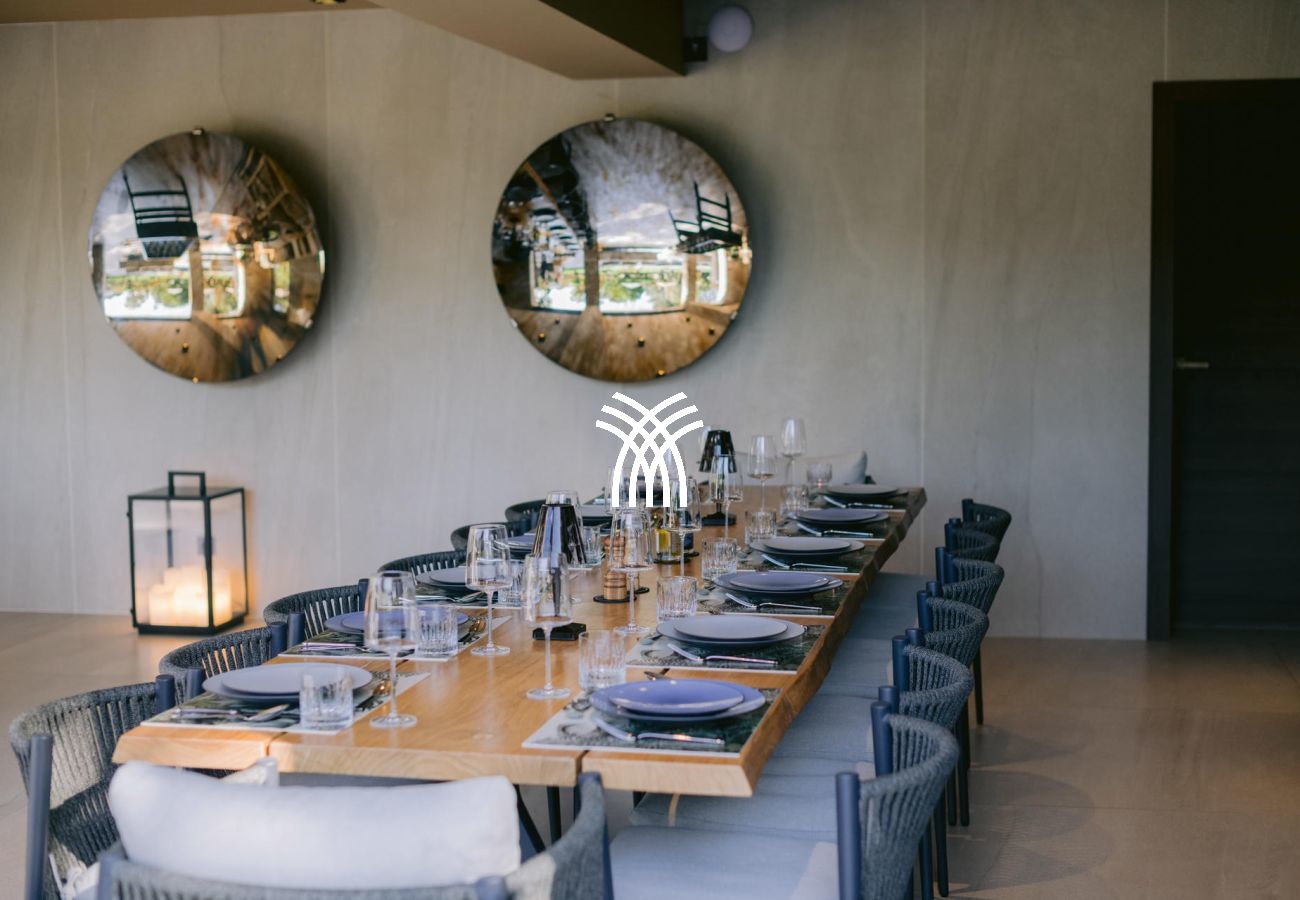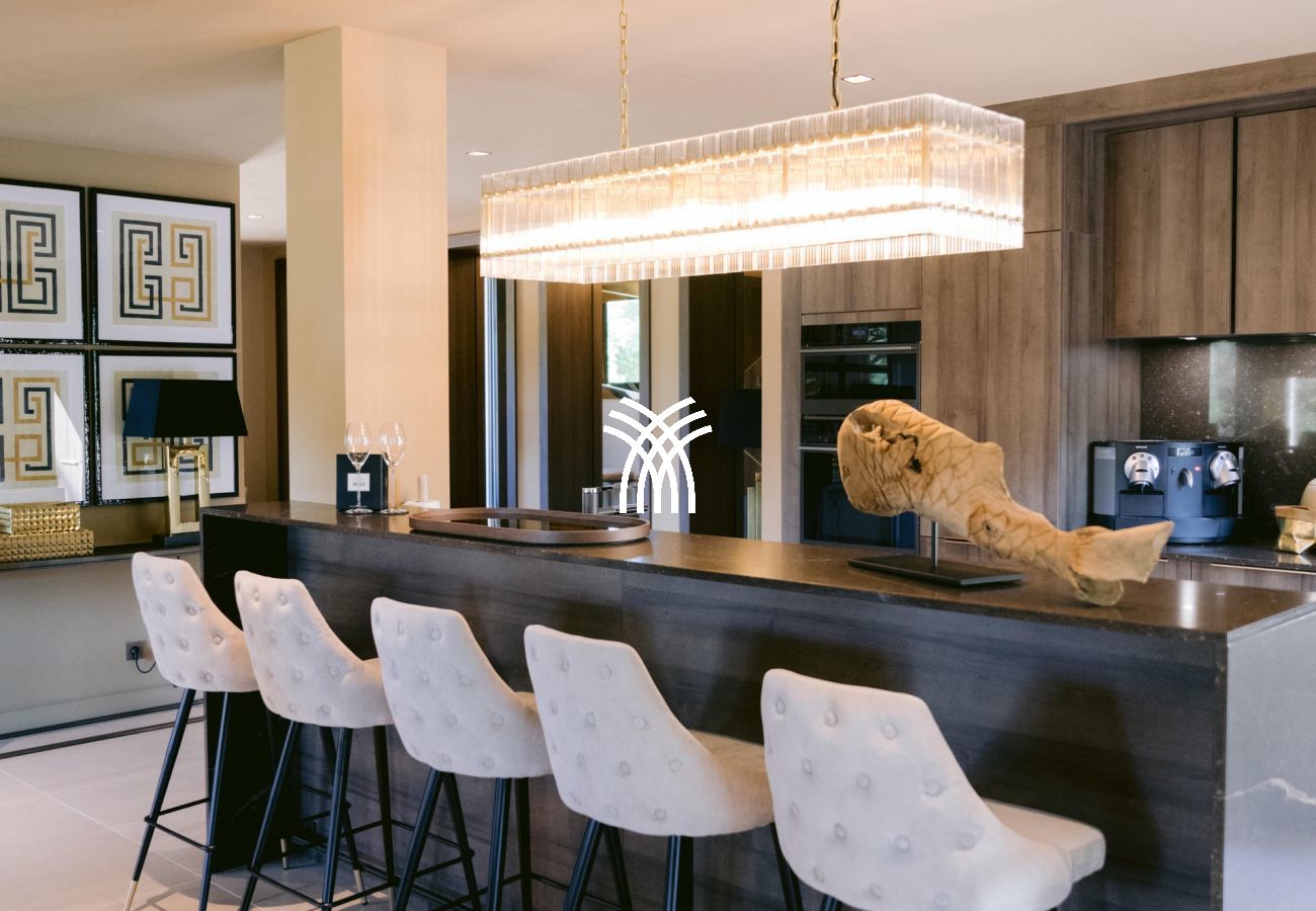 À l’intérieur, la villa dispose de sept suites élégantes, dont deux avec accès indépendant, garantissant confort et intimité absolus. Le salon spacieux et la salle à manger baignée de lumière invitent à la détente, tandis qu’une salle de sport et une salle de massage viennent enrichir l’expérience bien-être de cette demeure d’exception.