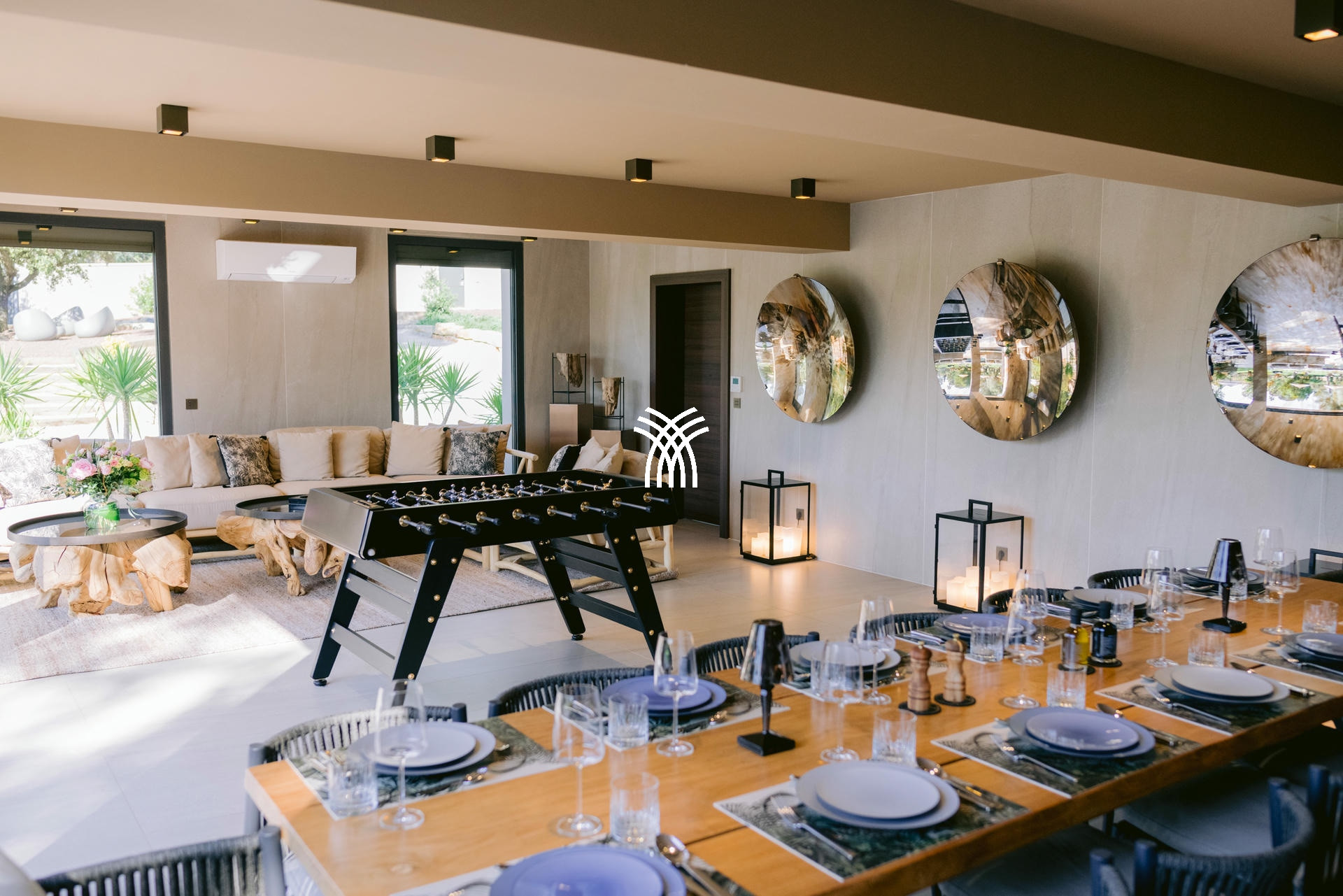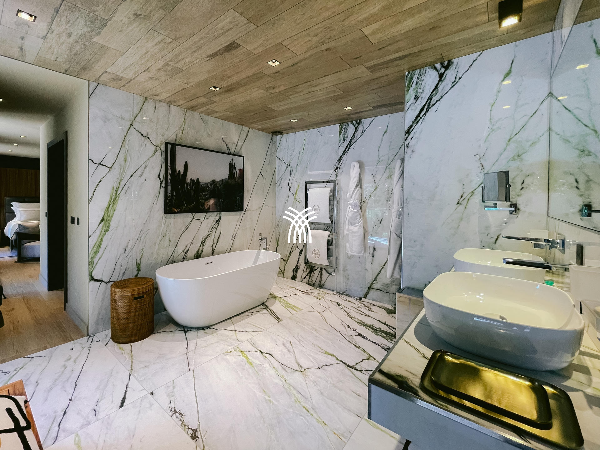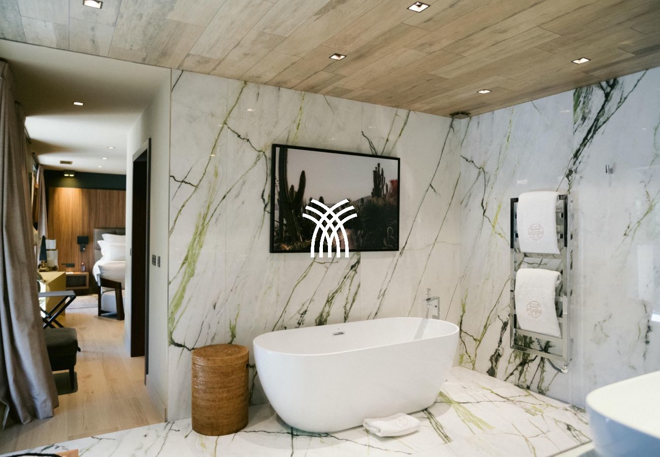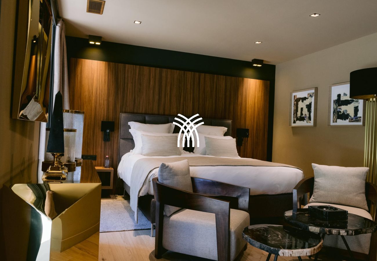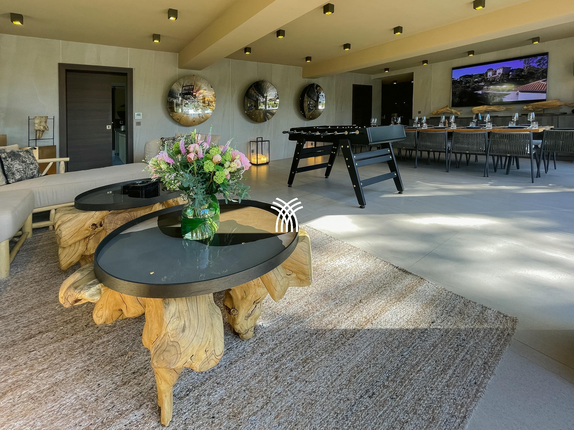À l’intérieur, la villa dispose de sept suites élégantes, dont deux avec accès indépendant, garantissant confort et intimité absolus. Le salon spacieux et la salle à manger baignée de lumière invitent à la détente, tandis qu’une salle de sport et une salle de massage viennent enrichir l’expérience bien-être de cette demeure d’exception.