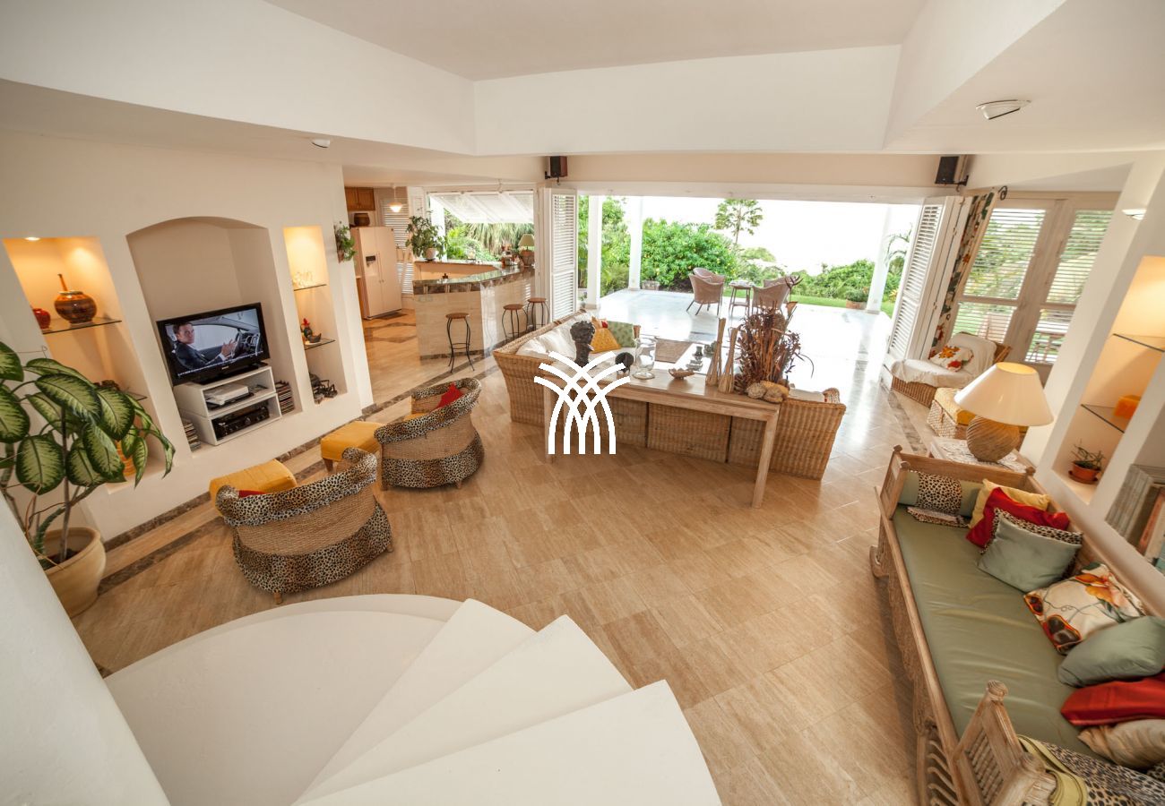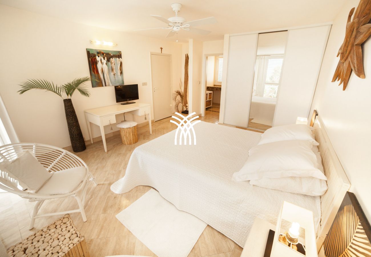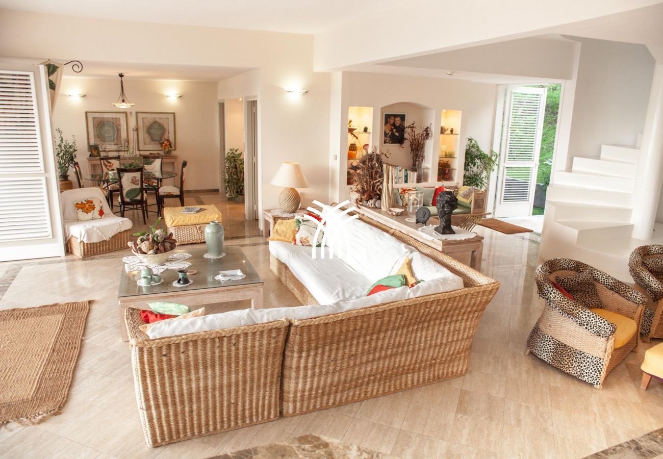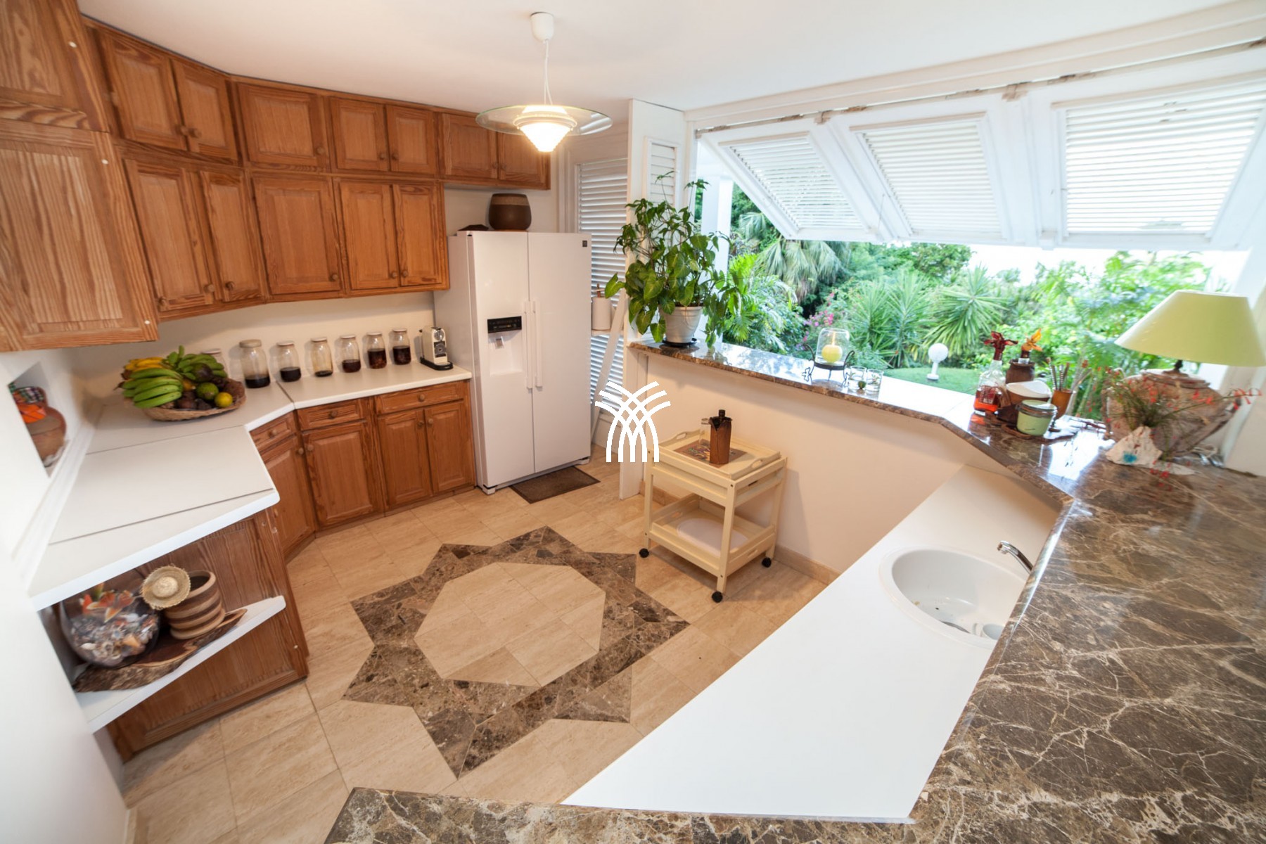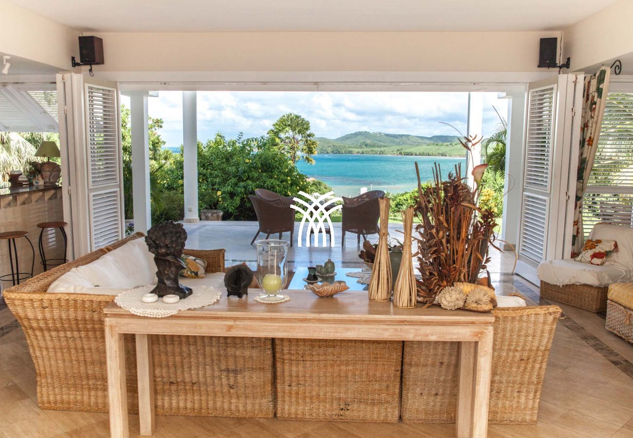 Cette villa de luxe a une vue imprenable sur la mer et la terrasse est parfaite pour déjeuner ou prendre un "ti punch". La cuisine américaine est entièrement équipée avec tous les appareils et a une ouverture sur la terrasse.