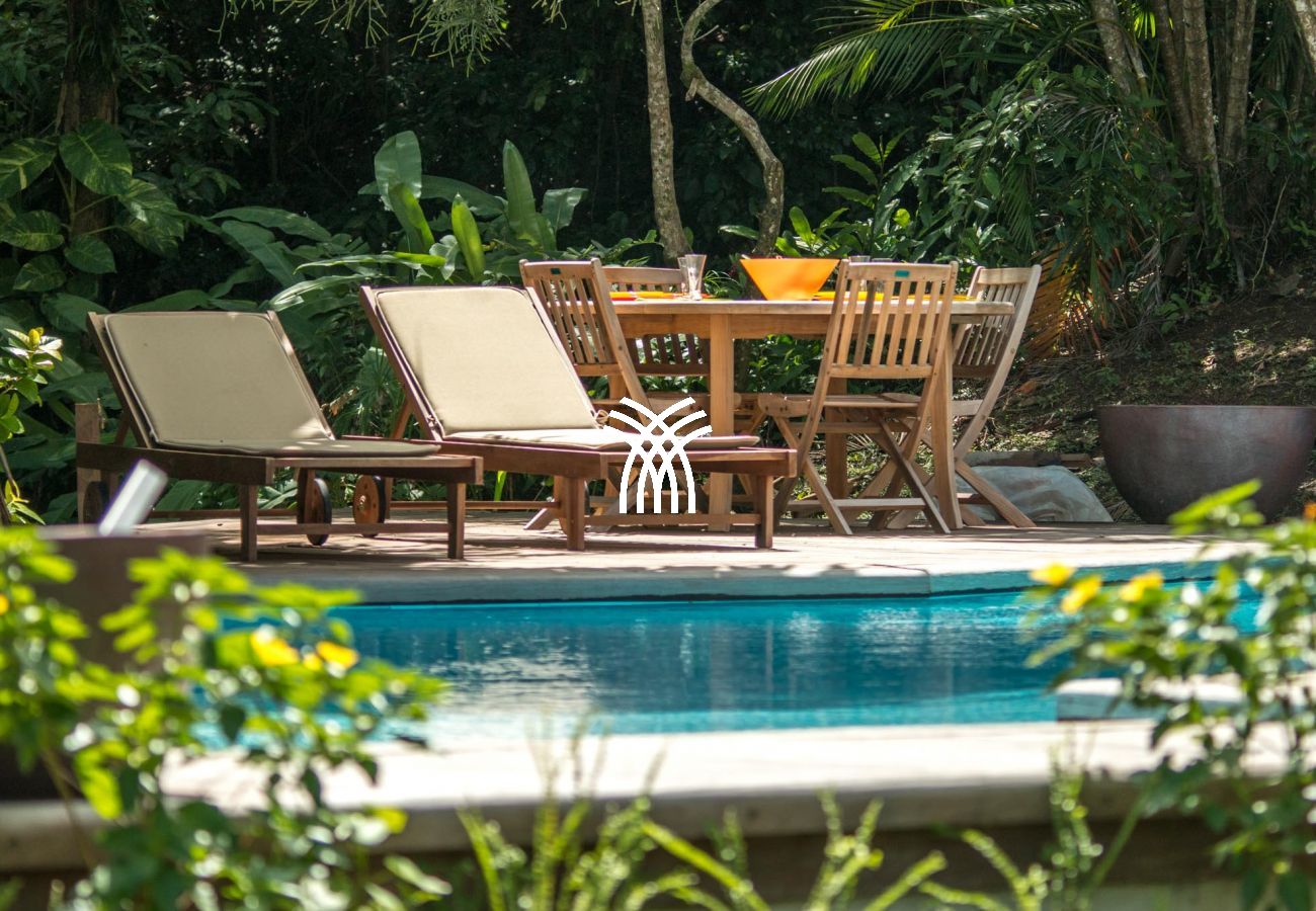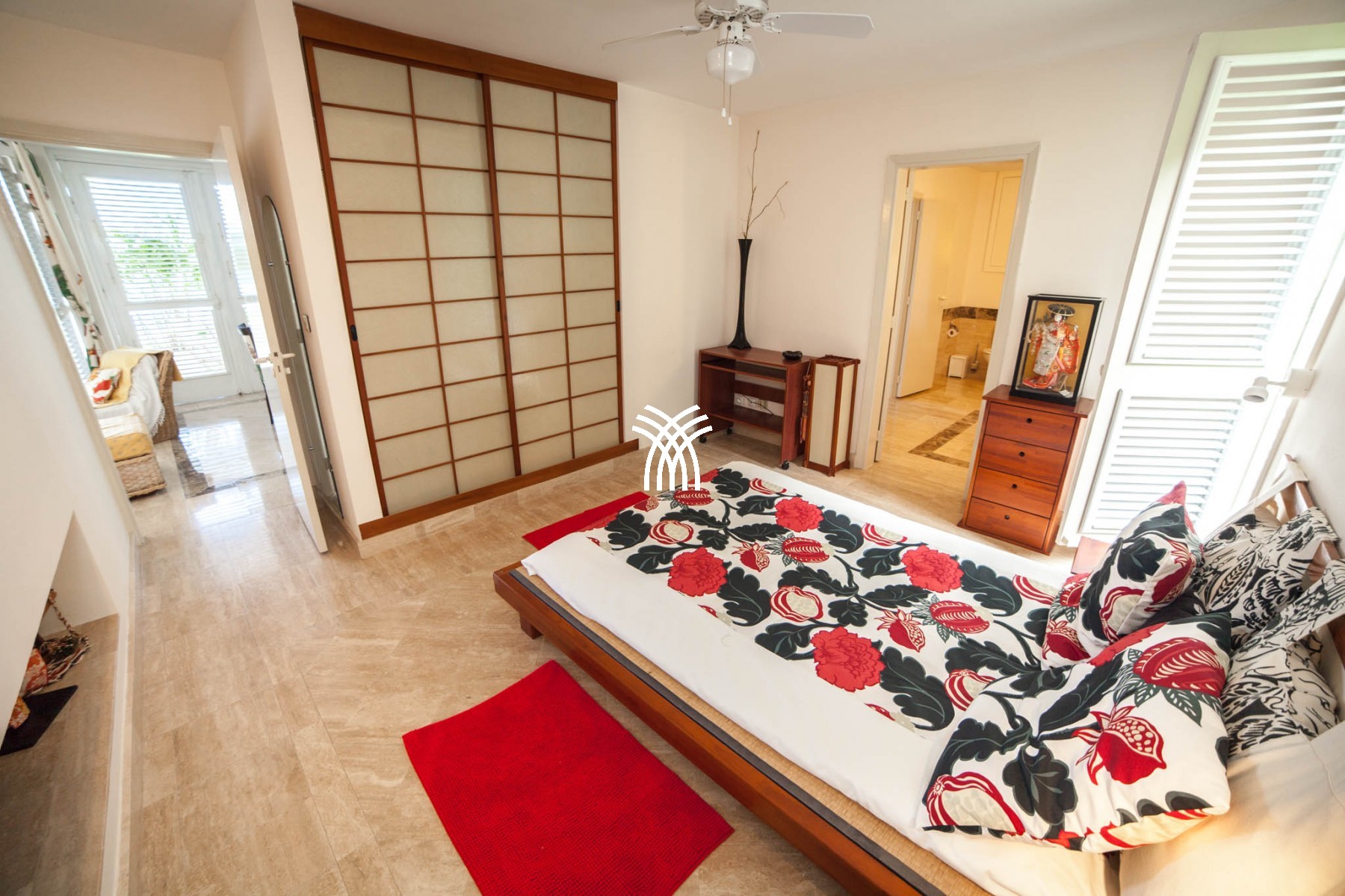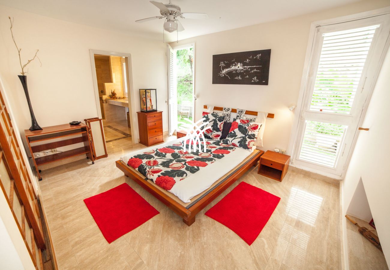 La chambre principale, située au premier étage, est très grande avec une terrasse et vue sur la mer, dressing et salle de bains. Les 3 autres chambres ont une décoration japonaise, brésilienne et tropicale.