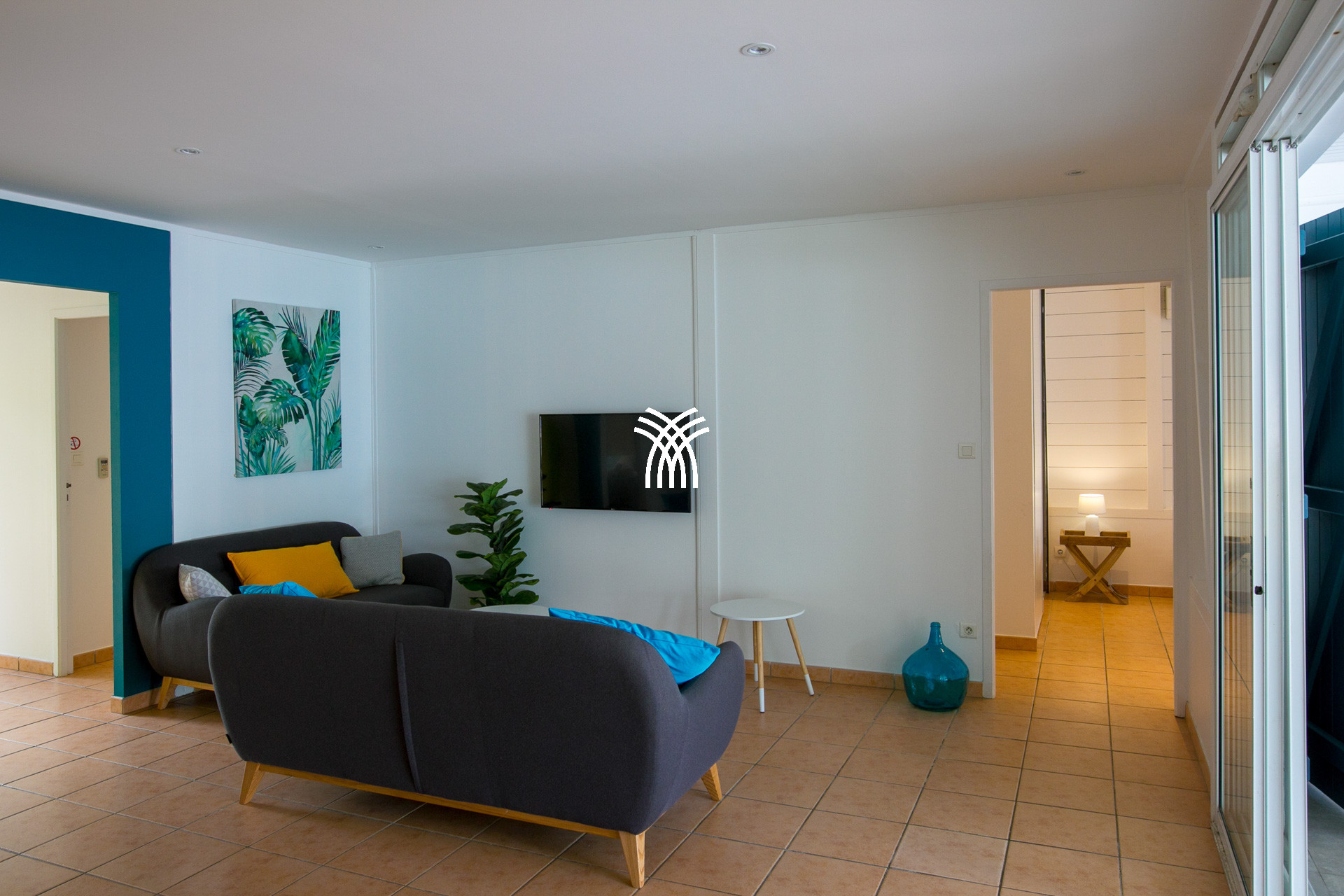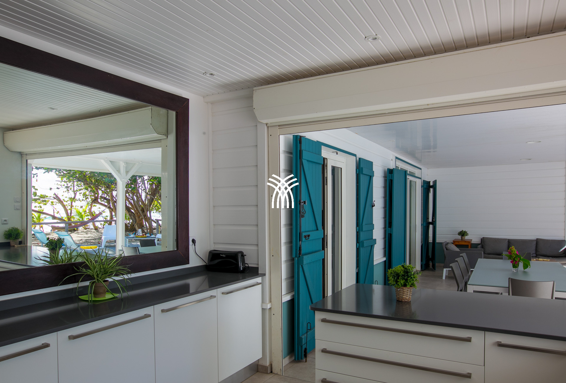 La cuisine ouverte sur le salon, meublé avec goût, se prolonge sur la terrasse donnant accès à la piscine qui permettre de profiter du soleil aisément. La villa On the Rock Martinique est une invitation à la détente pour des vacances au soleil en toute tranquillité.