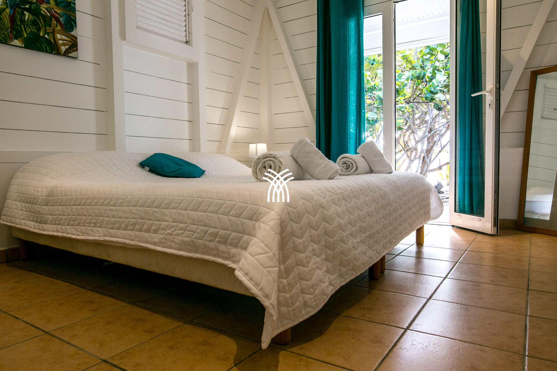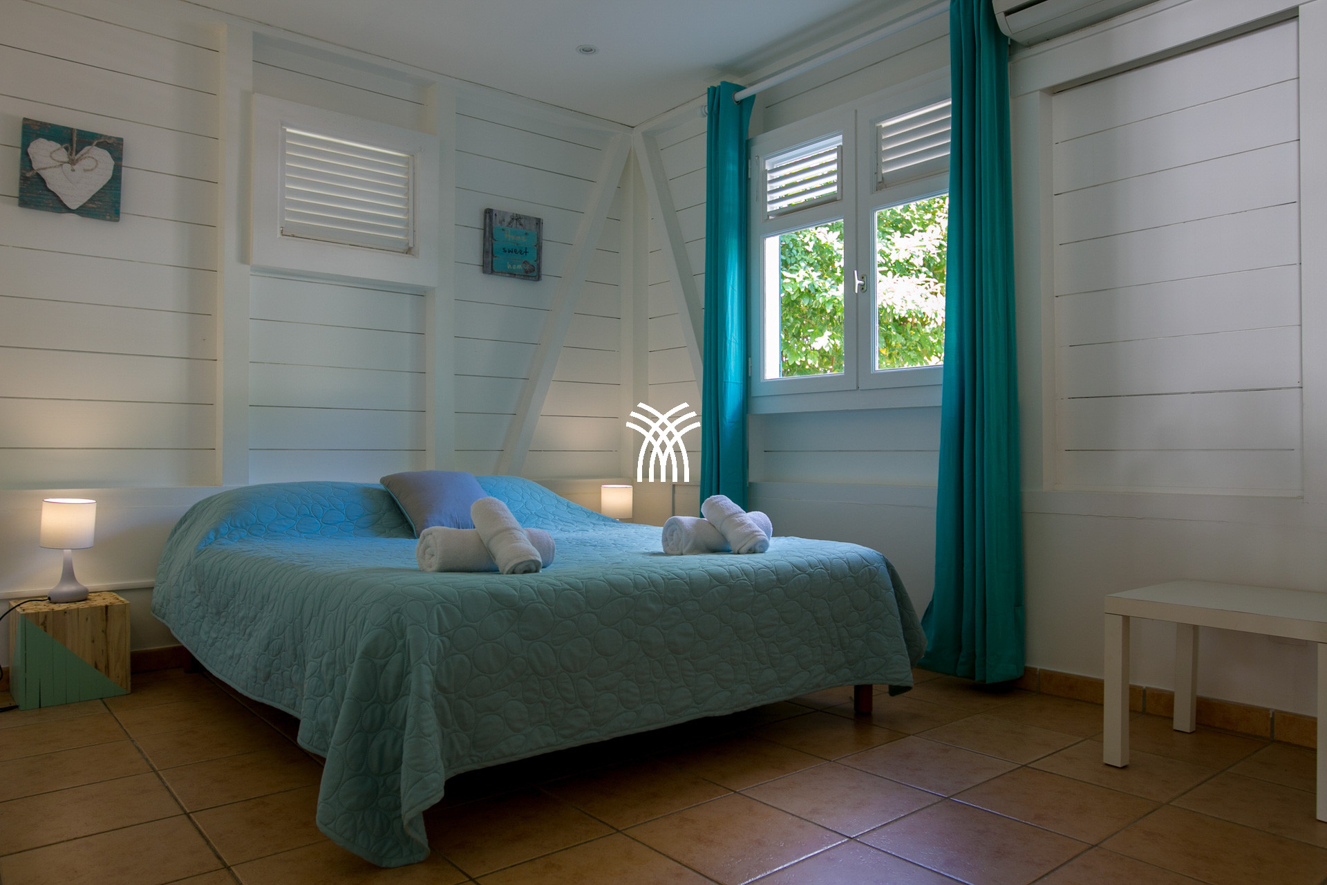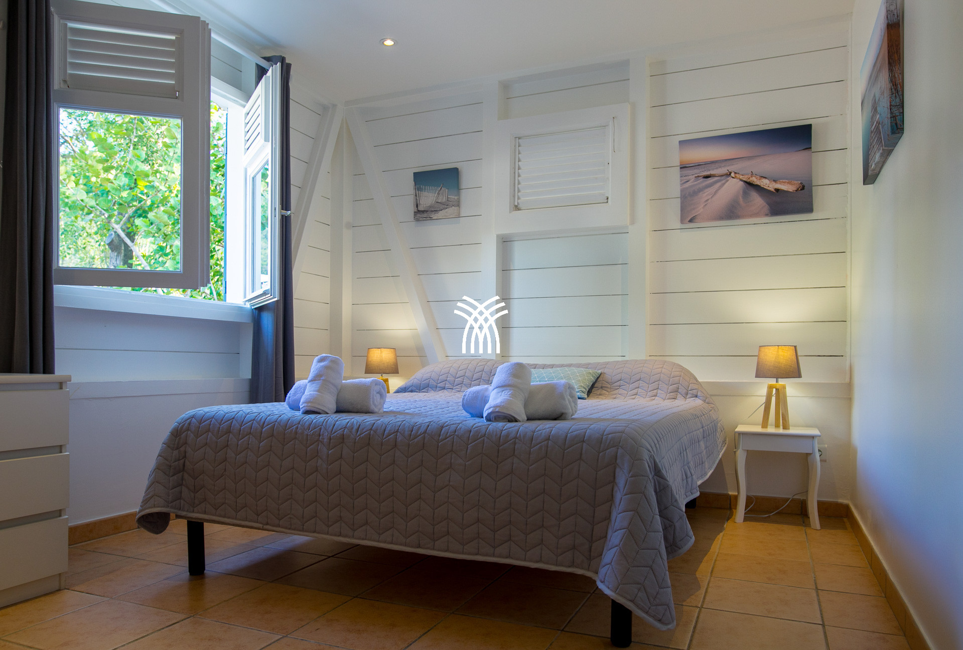 Lit queen size, air-conditionné, moustiquaire, placard, salle de douche et WC, accès terrasse et piscine
