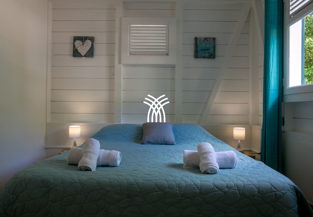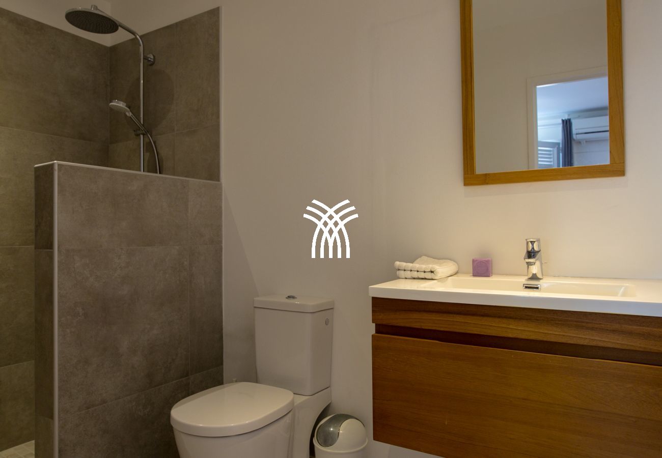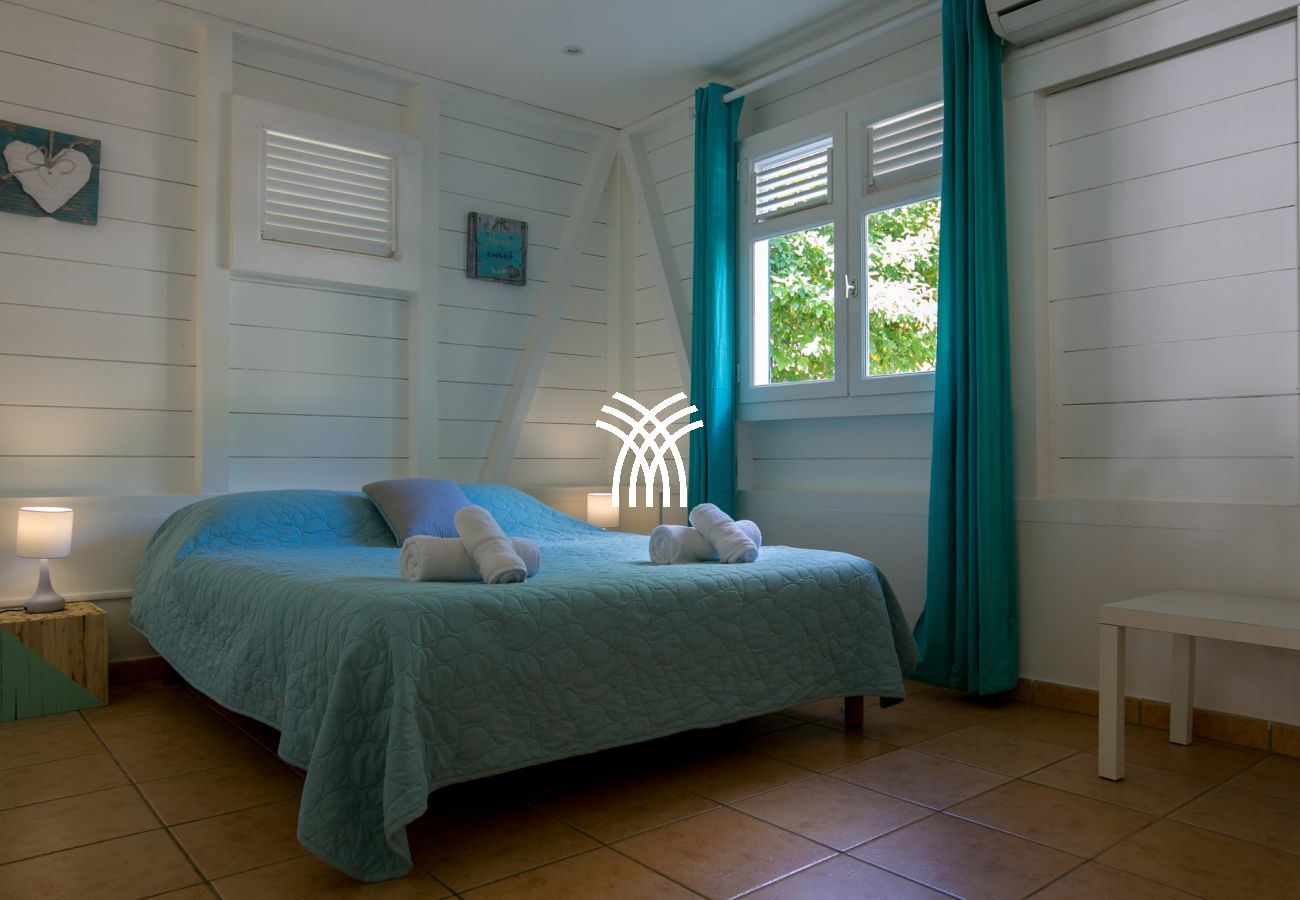 Lit queen size, air-conditionné, moustiquaire, placard, salle de douche et WC, accès terrasse et piscine