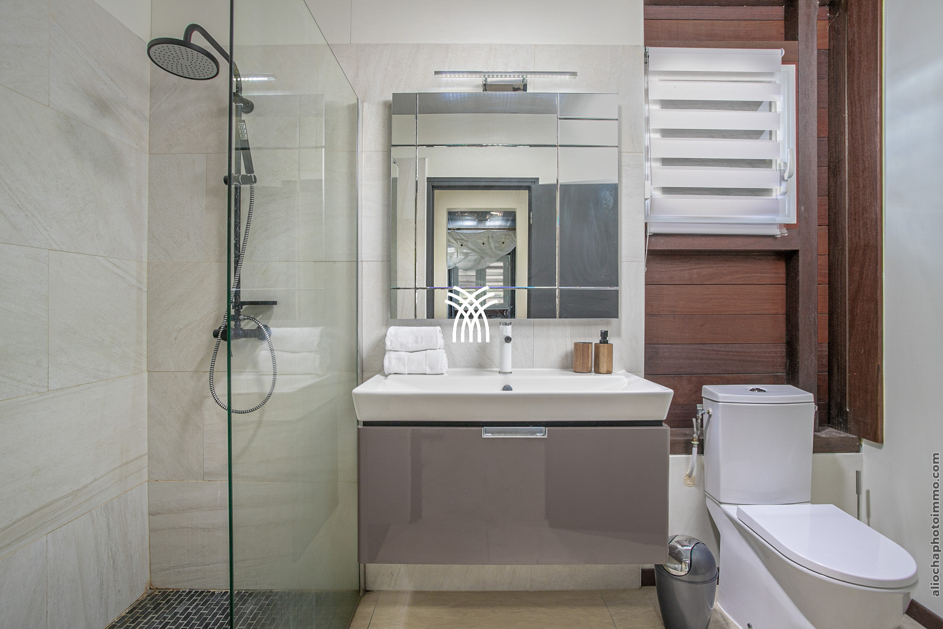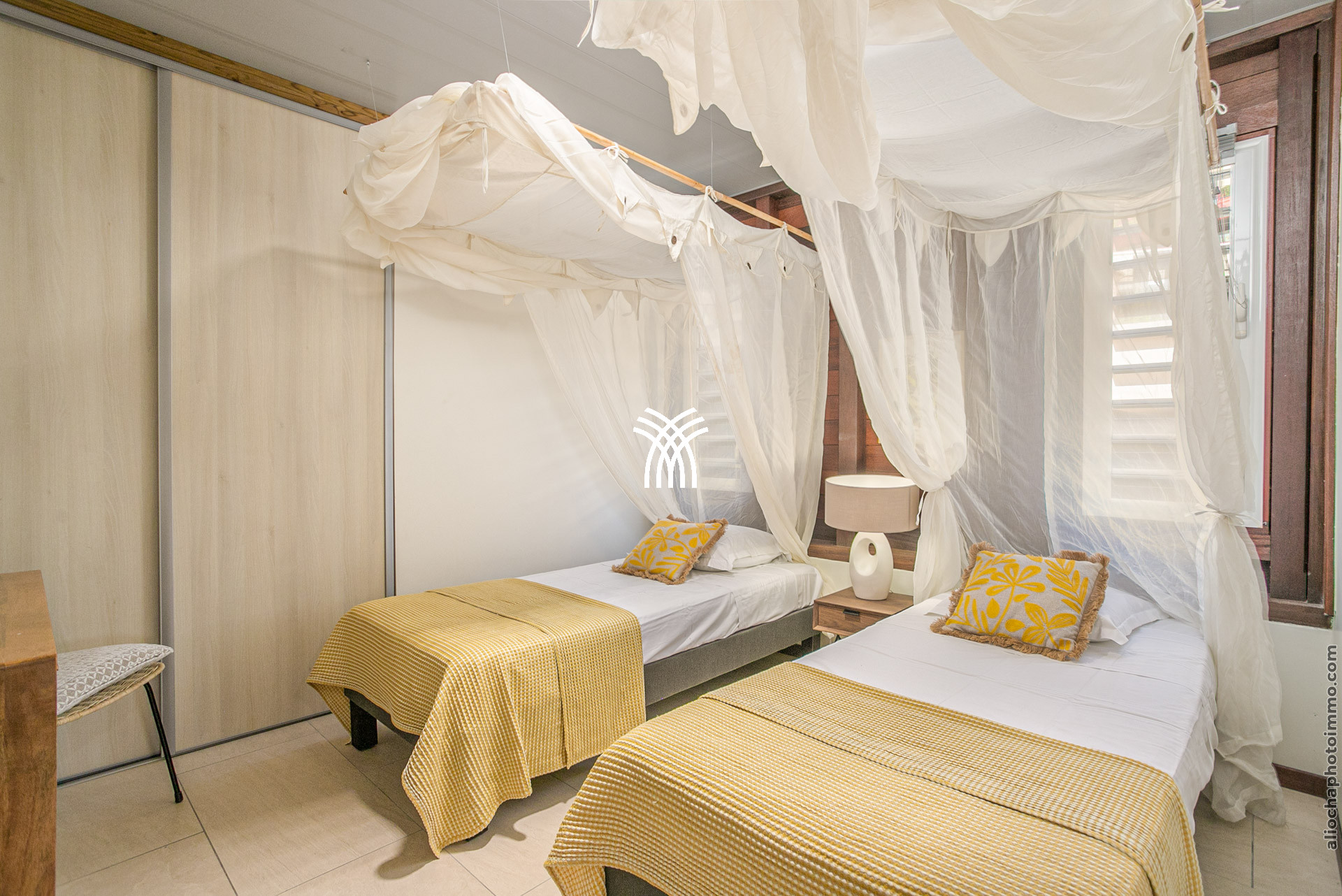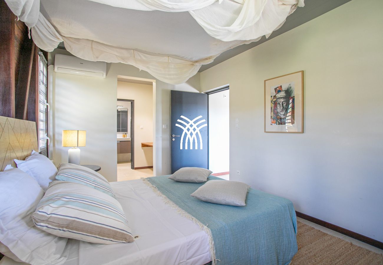 Avec une superficie de 220 m², la Villa Bwa Chik peut accueillir douze adultes et quatre enfants dans ses six chambres climatisées, chacune équipée d'une salle de douche avec WC. Réparties sur trois niveaux, les chambres sont élégantes et confortables.