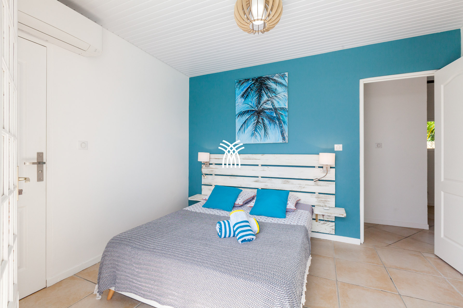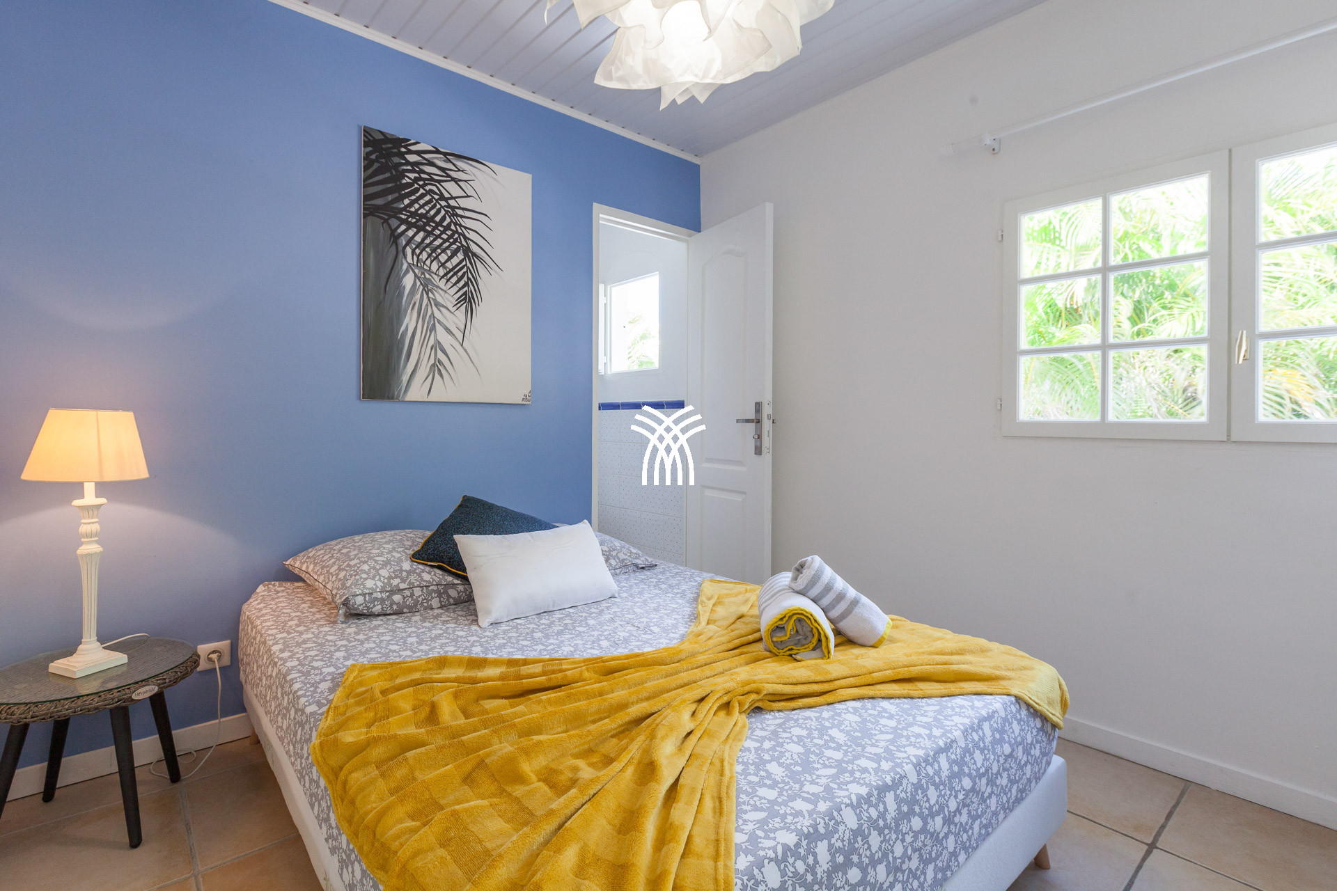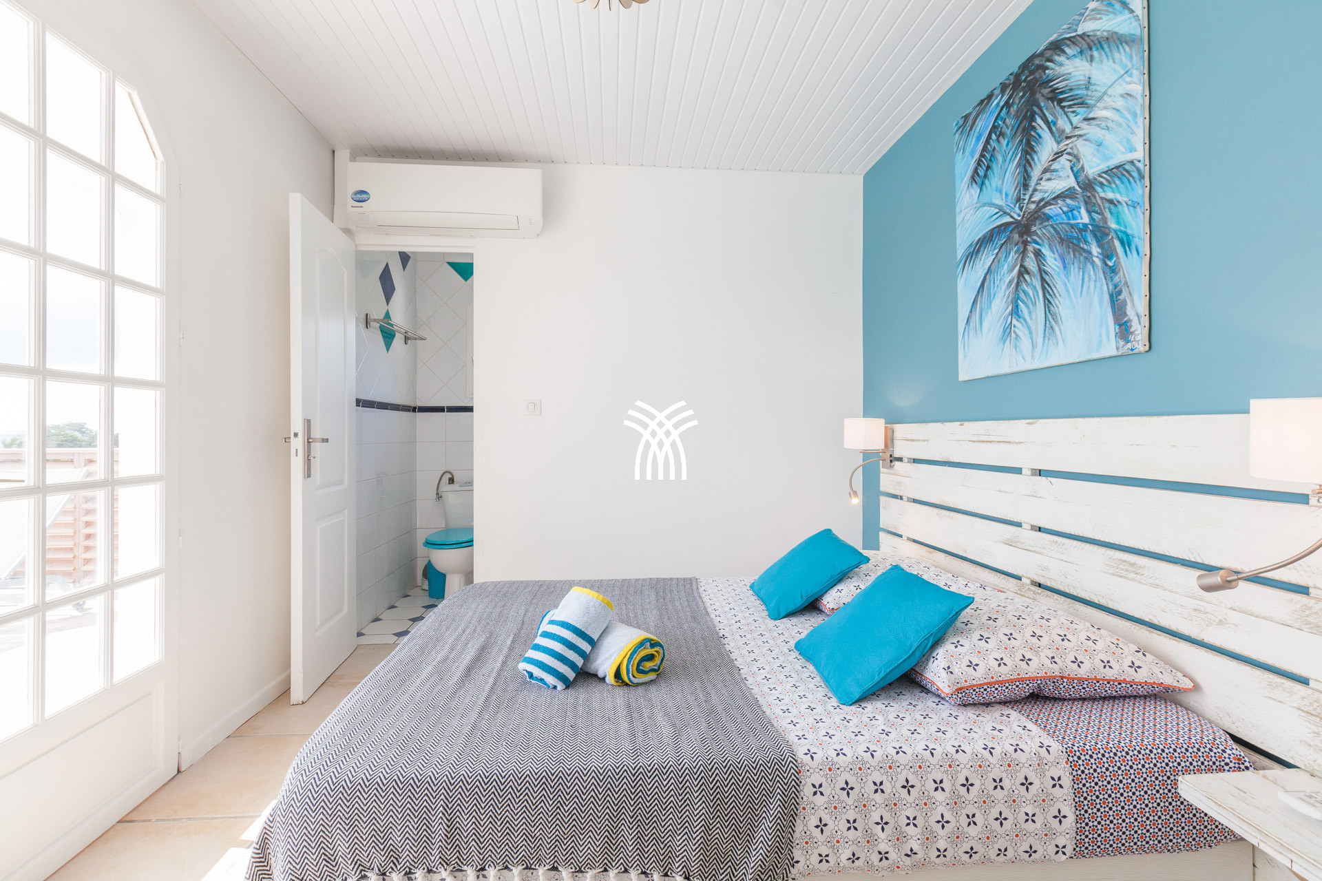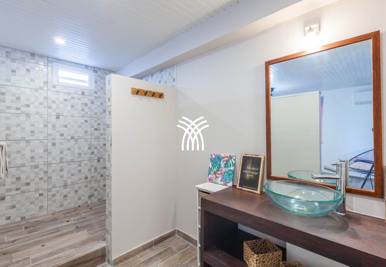 Pensée dans un esprit authentique et créole, la villa allie chaleur, confort et fonctionnalité. De grandes ouvertures laissent entrer la lumière tropicale et permettent de vivre en totale harmonie avec l’extérieur. La maison s’articule autour d’un espace de vie central accueillant — cuisine et salon — encadré par deux chambres climatisées, chacune avec leur salle d’eau à l’italienne et leurs WC privatifs. Au total, la Villa Honeymoon propose trois chambres doubles et une chambre quadruple, idéale pour les séjours en famille ou entre amis.