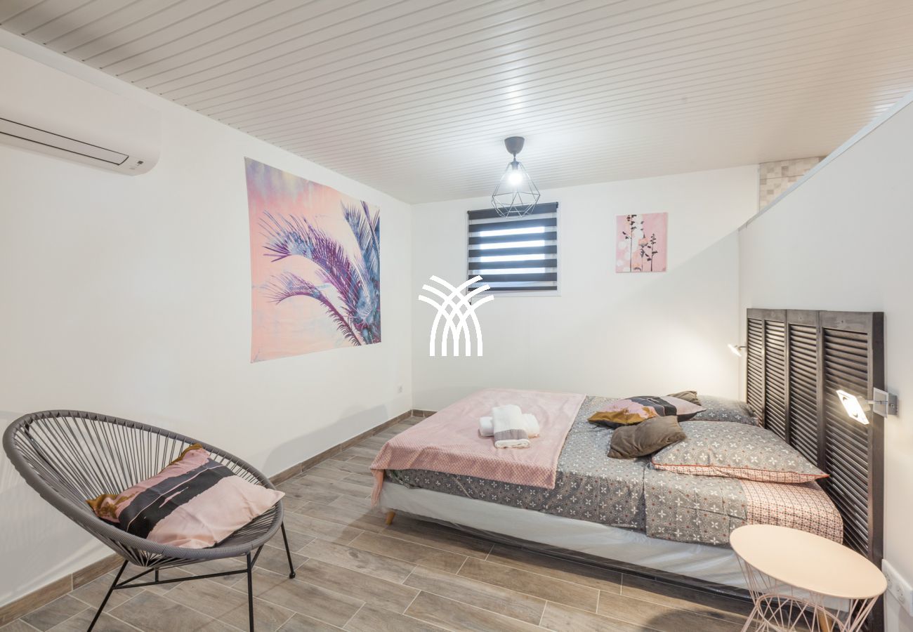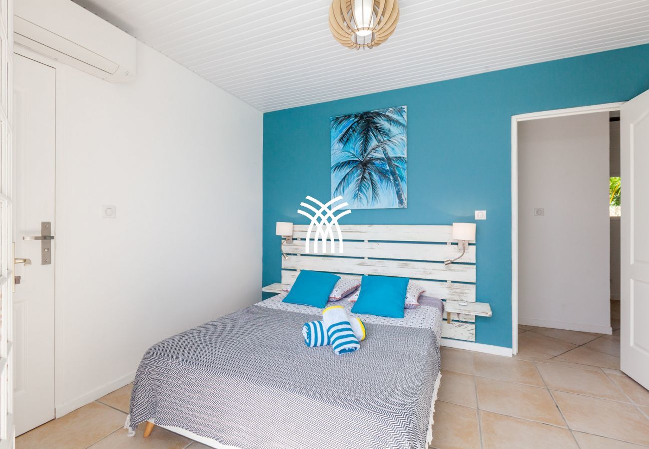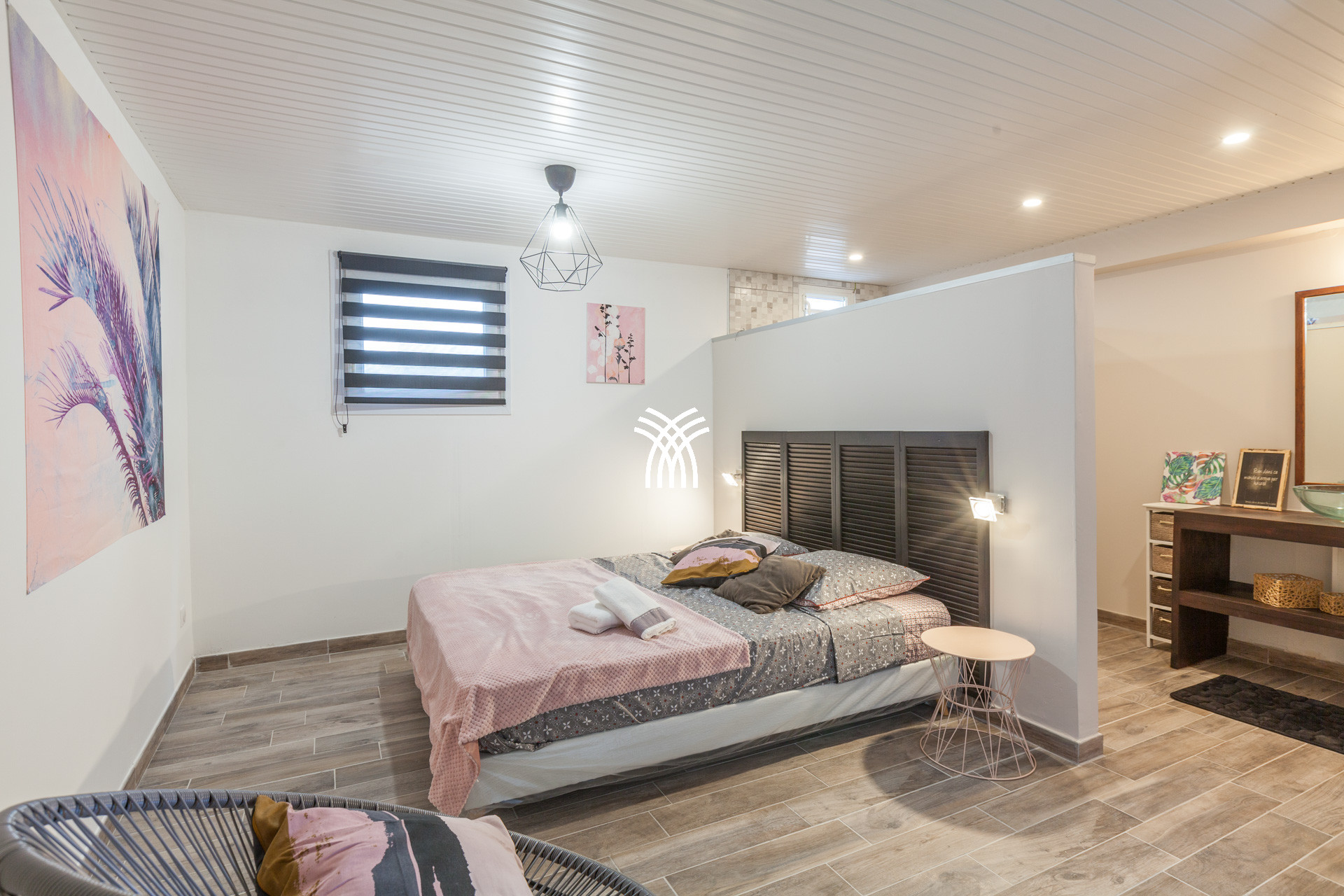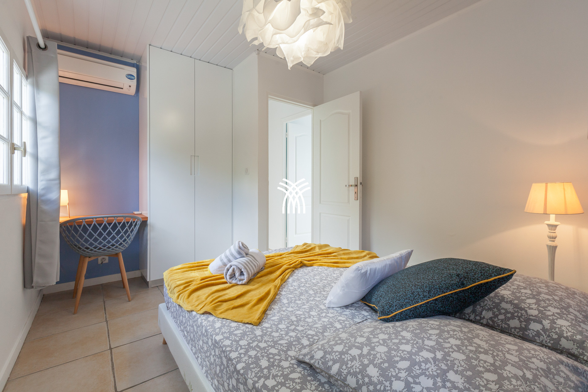 Pensée dans un esprit authentique et créole, la villa allie chaleur, confort et fonctionnalité. De grandes ouvertures laissent entrer la lumière tropicale et permettent de vivre en totale harmonie avec l’extérieur. La maison s’articule autour d’un espace de vie central accueillant — cuisine et salon — encadré par deux chambres climatisées, chacune avec leur salle d’eau à l’italienne et leurs WC privatifs. Au total, la Villa Honeymoon propose trois chambres doubles et une chambre quadruple, idéale pour les séjours en famille ou entre amis.