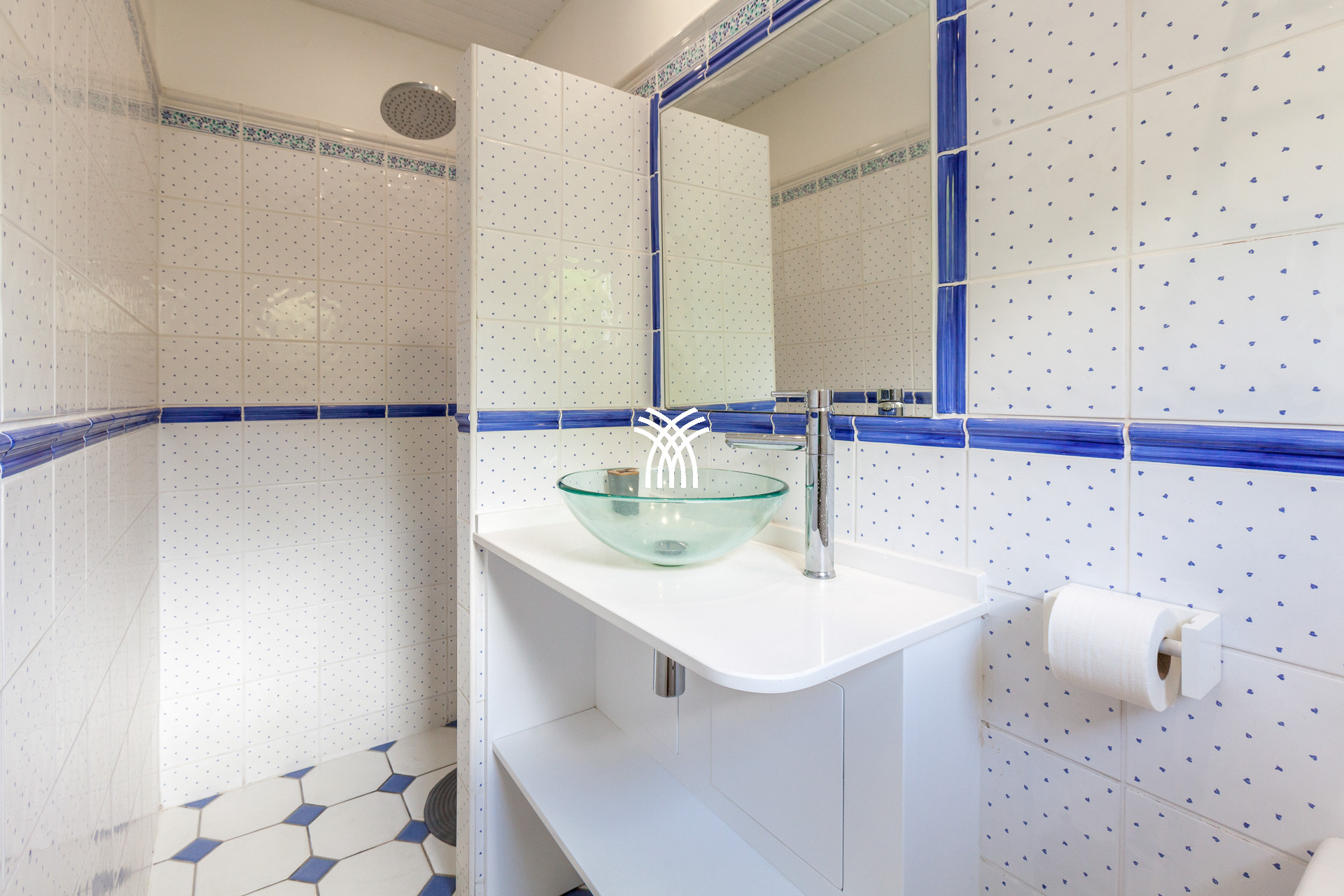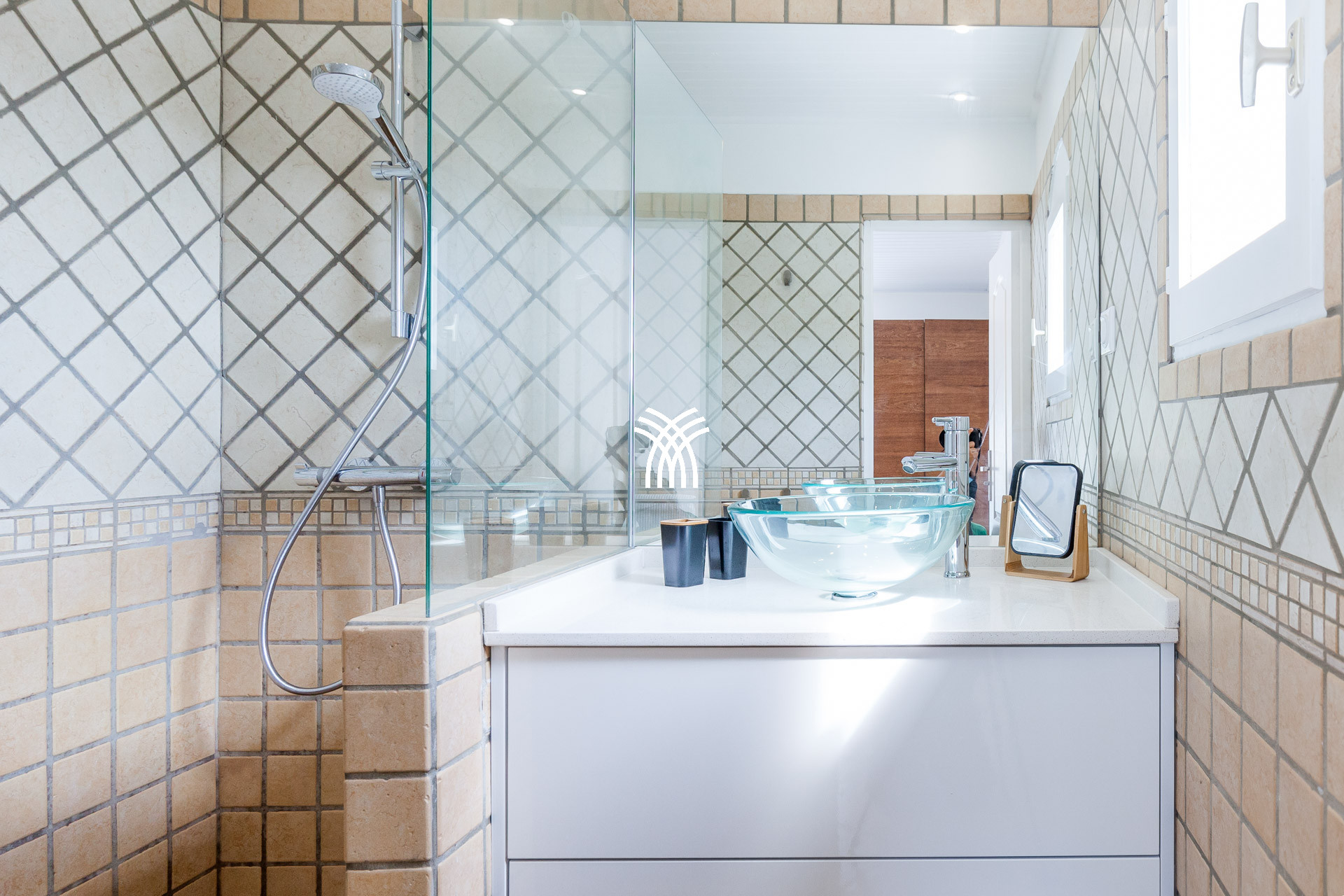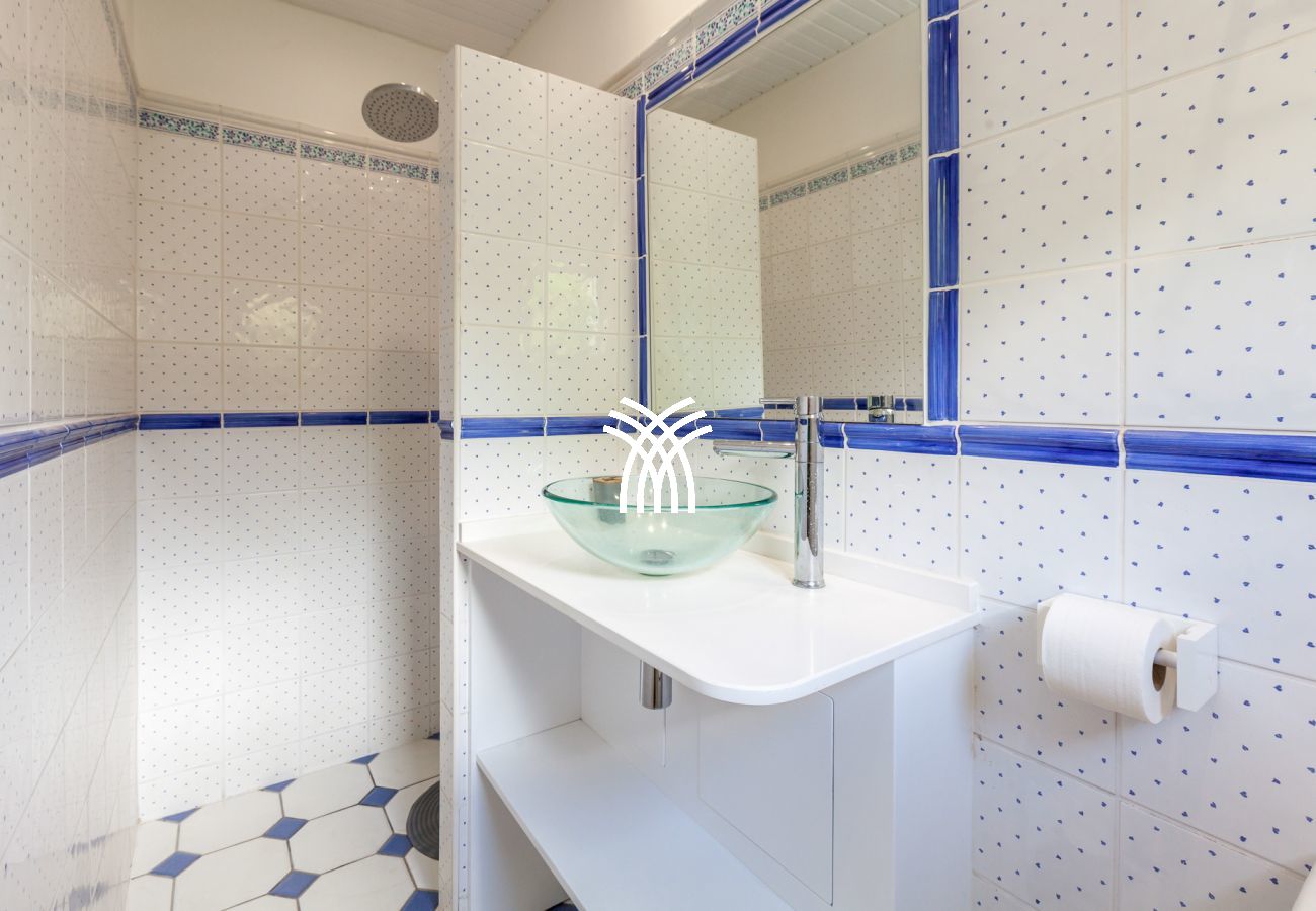 La villa dispose de cinq chambres climatisées, conçues pour allier confort et intimité. La suite parentale, spacieuse et élégante, s’ouvre sur une terrasse avec vue sur la mer et dispose d’une salle de bain en travertin. Deux chambres au rez-de-chaussée partagent une salle d’eau et offrent un cadre chaleureux pour vos invités. Les deux chambres situées au niveau inférieur, accessibles par un escalier, bénéficient d’un espace supplémentaire avec une salle de jeu équipée d’un babyfoot, idéal pour les enfants ou les adolescents. Une mini-suite avec terrasse privée et une grande chambre avec mobilier en bois des Andes complètent cet espace, alliant raffinement et fonctionnalité.
