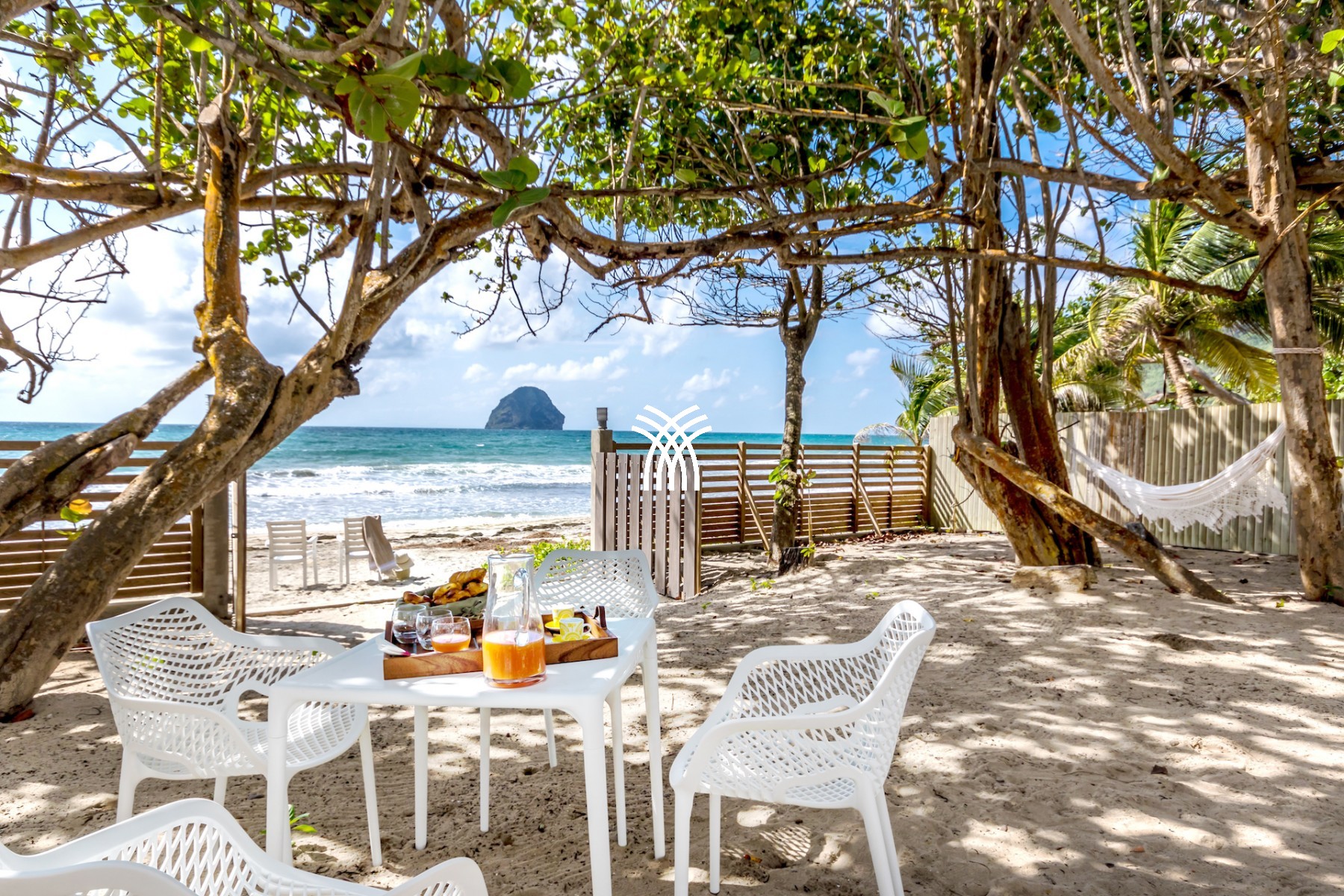 Découvrez La Villa Sand Beach, votre refuge de bien-être face au majestueux Rocher du Diamant. Située dans un jardin de sable, cette villa vous plonge dans une atmosphère de détente, idéale pour échapper au rythme effréné de la vie urbaine et savourer la douceur de vivre antillaise.