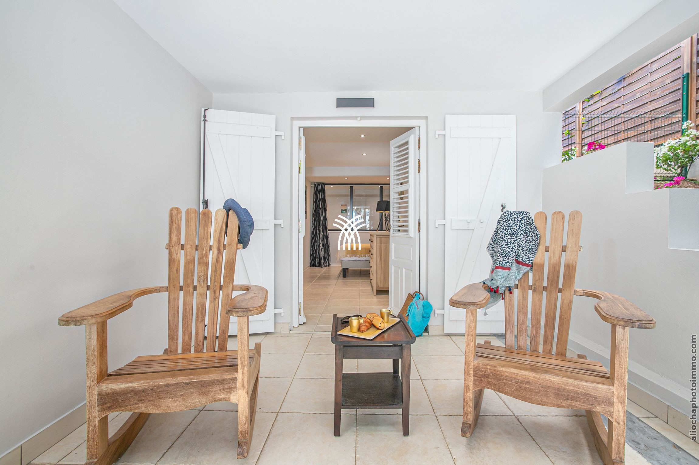 La façade ornée de lambrequins évoque une délicate dentelle, tandis que le bardage en bois et la toiture en tôle ondulée reflètent l'authenticité créole. À l'intérieur, une ambiance contemporaine vous attend. Les fenêtres à claustras laissent entrer une brise rafraîchissante et illuminent chaque espace.