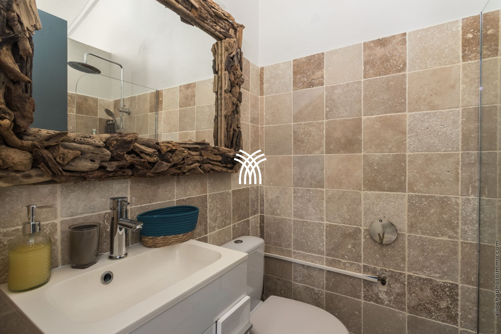 La villa dispose de cinq chambres climatisées, conçues pour allier confort et intimité. La suite parentale, spacieuse et élégante, s’ouvre sur une terrasse avec vue sur la mer et dispose d’une salle de bain en travertin. Deux chambres au rez-de-chaussée partagent une salle d’eau et offrent un cadre chaleureux pour vos invités. Les deux chambres situées au niveau inférieur, accessibles par un escalier, bénéficient d’un espace supplémentaire avec une salle de jeu équipée d’un babyfoot, idéal pour les enfants ou les adolescents. Une mini-suite avec terrasse privée et une grande chambre avec mobilier en bois des Andes complètent cet espace, alliant raffinement et fonctionnalité.
