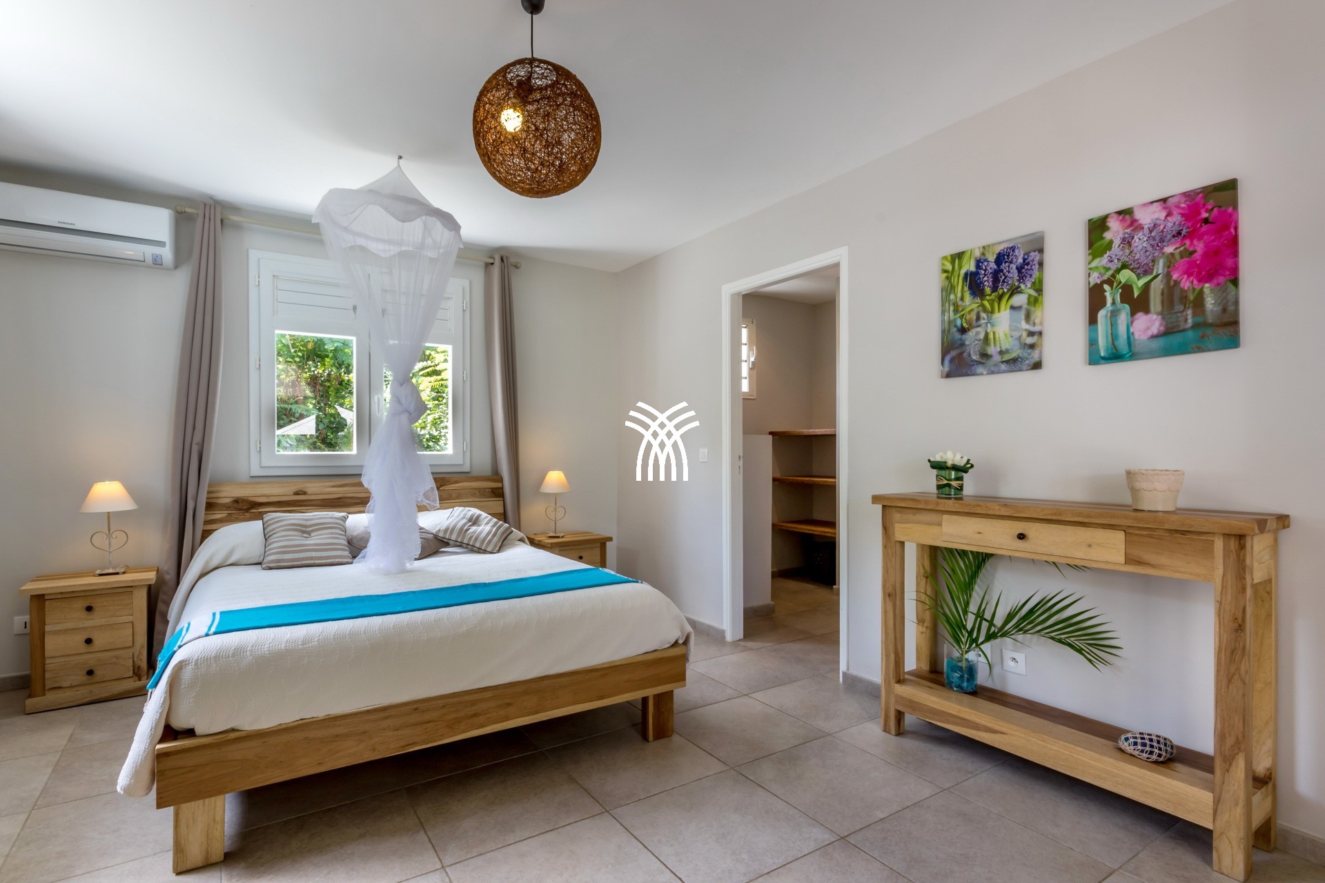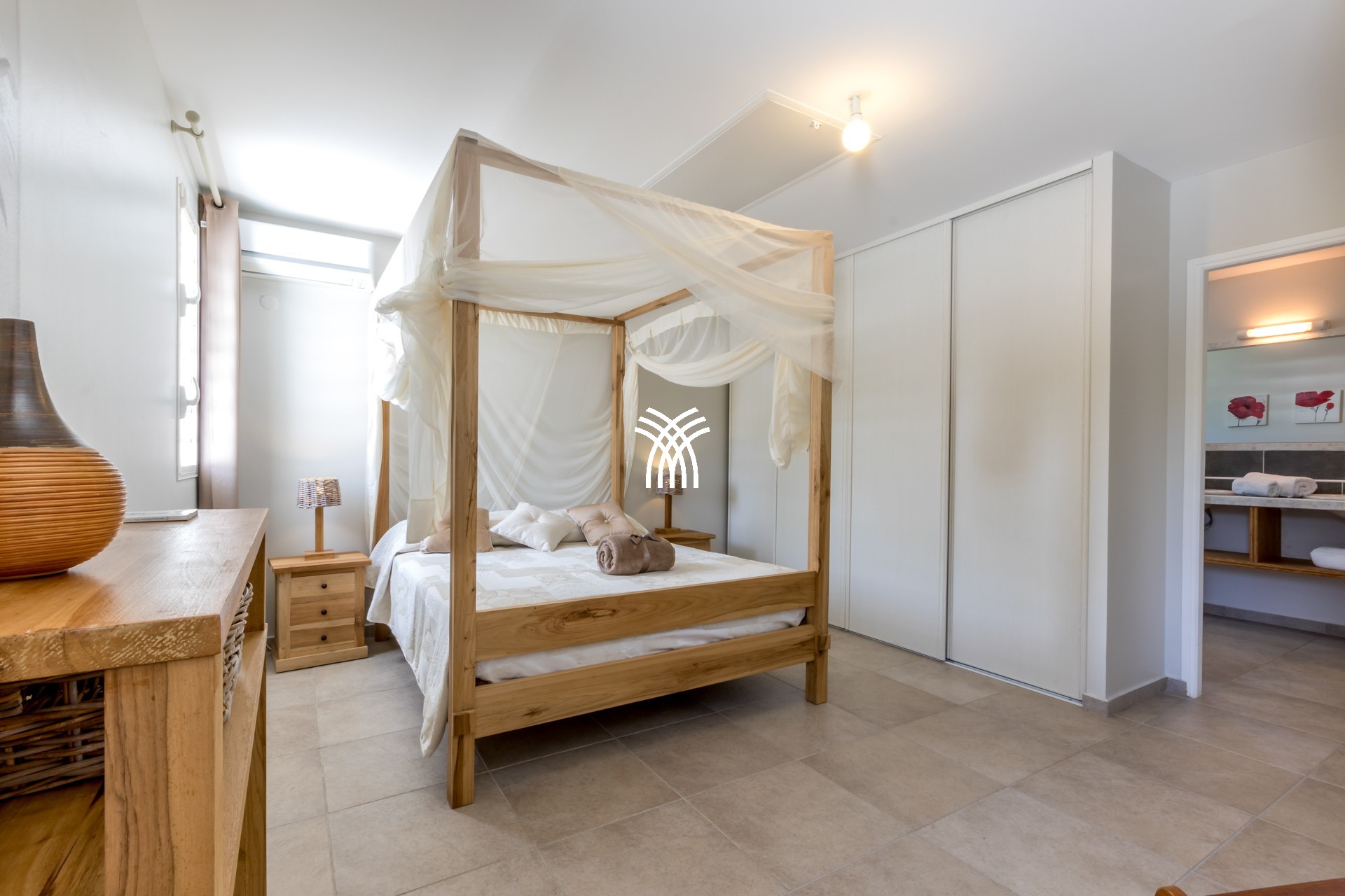 Lit queen size, air-conditionné, moustiquaire, placard, salle de douche et WC, accès terrasse et piscine