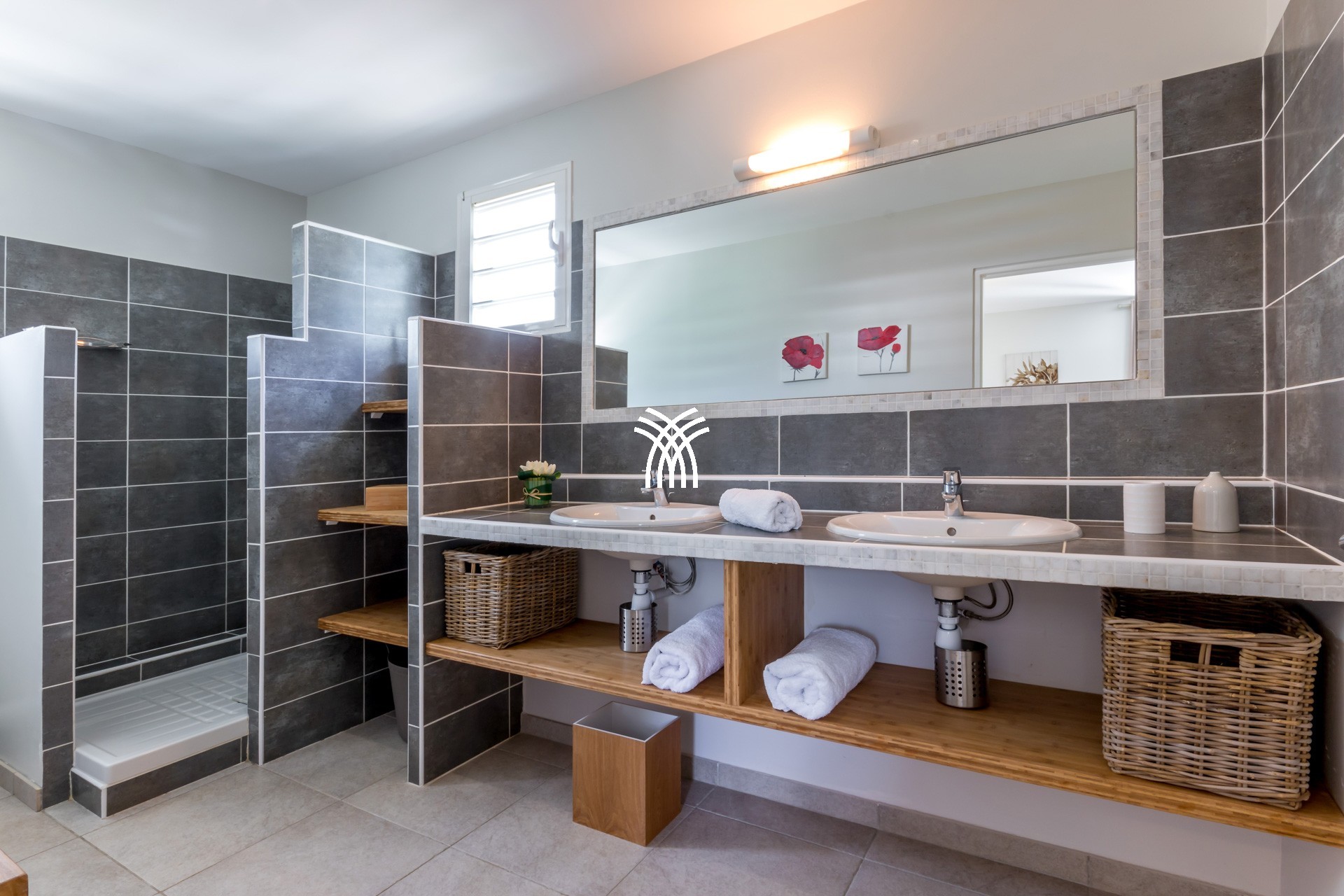 La cuisine ouverte sur le salon, meublé avec goût, se prolonge sur la terrasse donnant accès à la piscine qui permettre de profiter du soleil aisément. La villa On the Rock Martinique est une invitation à la détente pour des vacances au soleil en toute tranquillité.