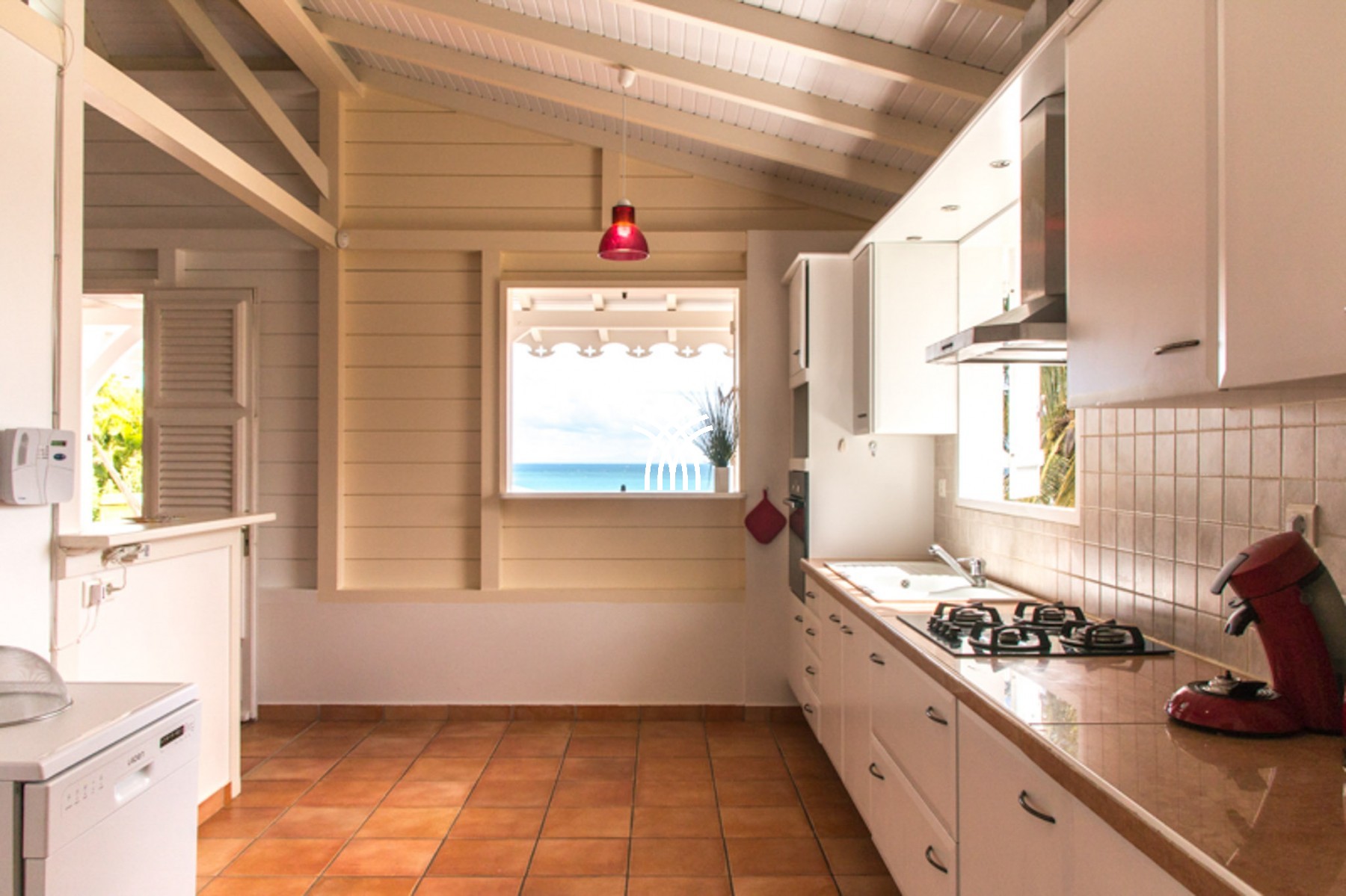 La cuisine ouverte sur le salon, meublé avec goût, se prolonge sur la terrasse donnant accès à la piscine qui permettre de profiter du soleil aisément. La villa On the Rock Martinique est une invitation à la détente pour des vacances au soleil en toute tranquillité.