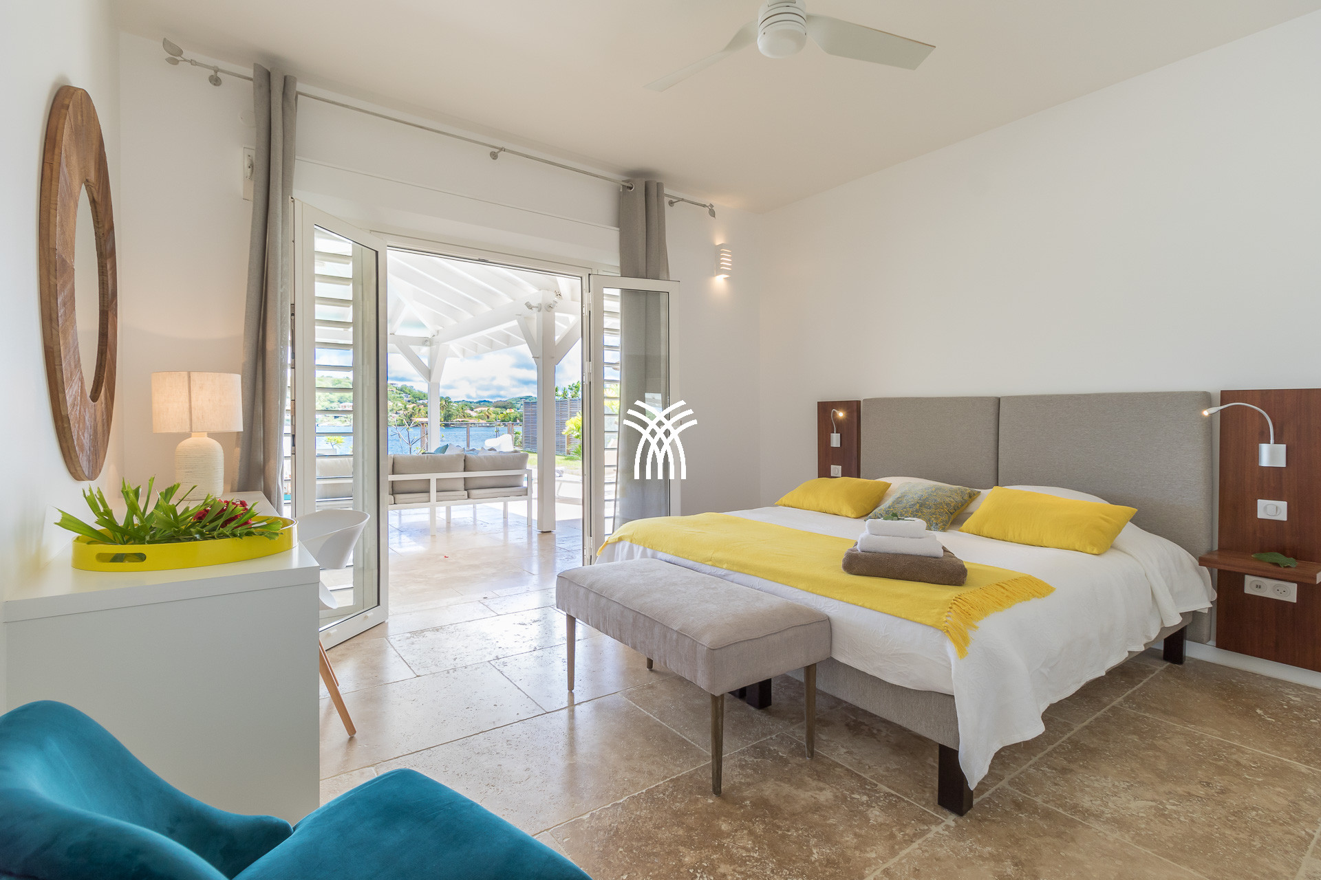 La Villa Celadon Martinique est une très belle villa à l'architecture caribéenne mêlant matériaux nobles et décoration contemporaine. Située sur la presqu'île du Cap Est, quartier chic de l'île, la maison offre un accès direct à la mer avec un ponton privé.