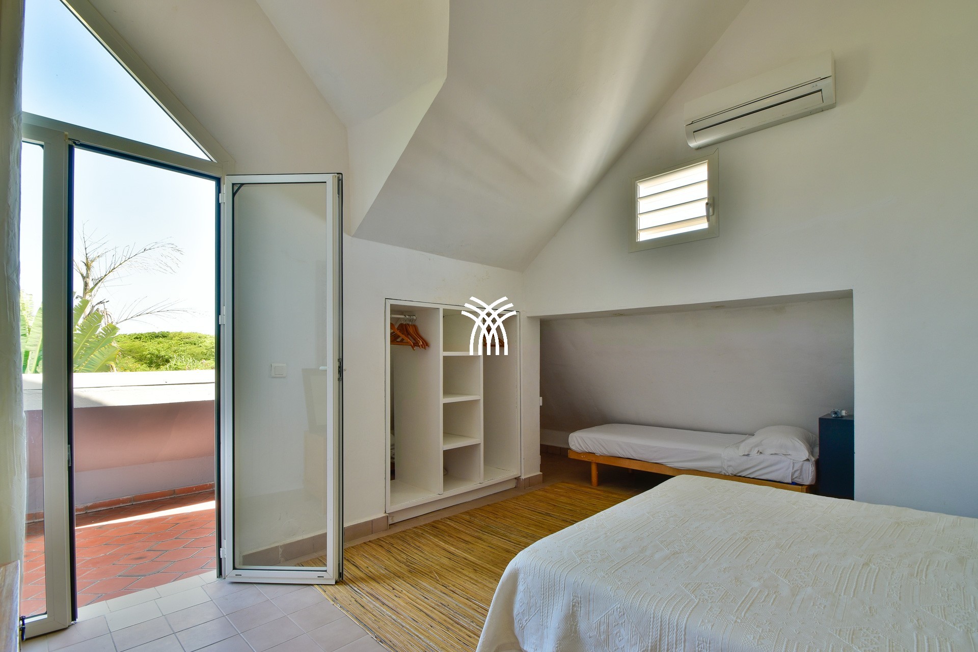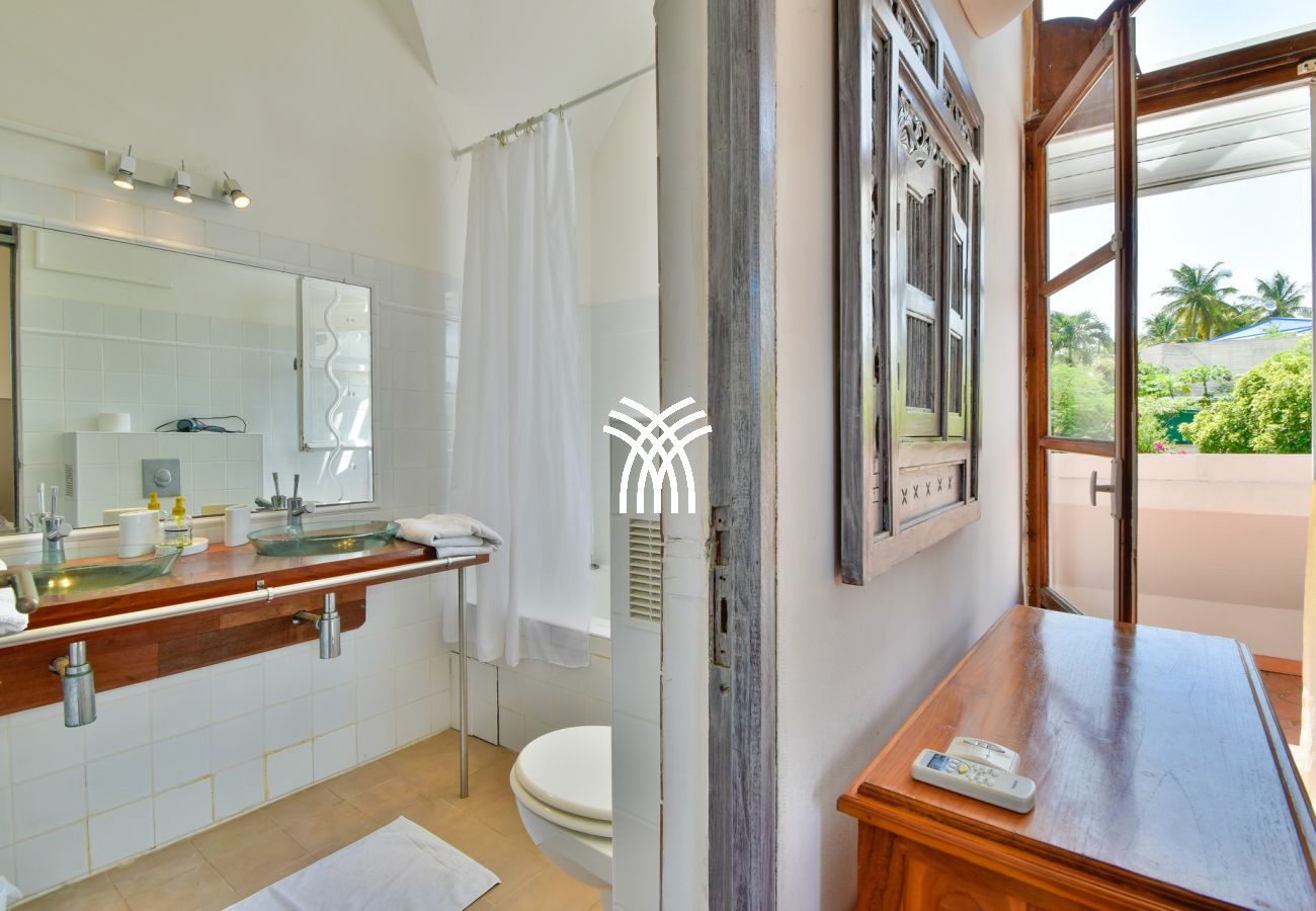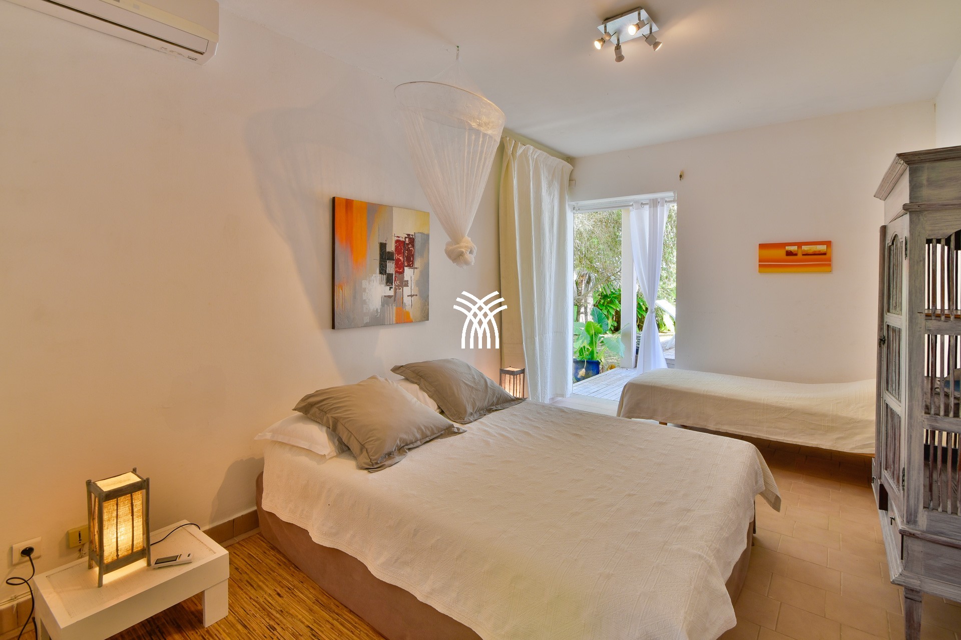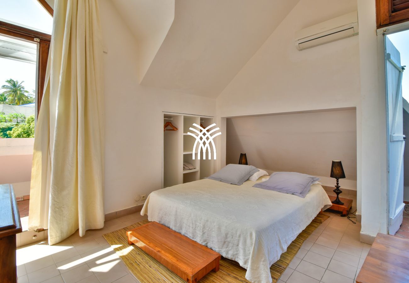 Conçue pour accueillir jusqu’à 11 personnes, la Villa Karukera offre des volumes harmonieux et quatre chambres spacieuses, chacune climatisée pour un confort optimal. La literie modulable permet une flexibilité parfaite pour les groupes et familles, avec trois lits doubles de 160 cm et cinq lits simples de 80 cm pouvant être réunis. La distribution des chambres assure à chacun son espace, avec une chambre en rez-de-chaussée dotée d’un lit double et d’un lit simple avec salle de bain privative, ainsi que trois chambres à l’étage, dont l’une dispose également de sa propre salle de bain. Une salle d’eau supplémentaire est partagée à l’étage, ainsi qu’un toilette invité au rez-de-chaussée. Un lit bébé est disponible, avec la possibilité d’en ajouter un second sur demande.