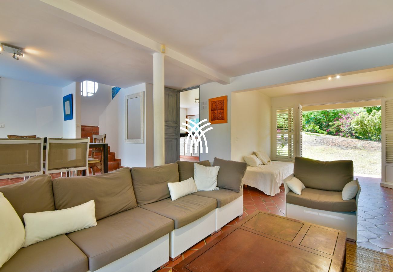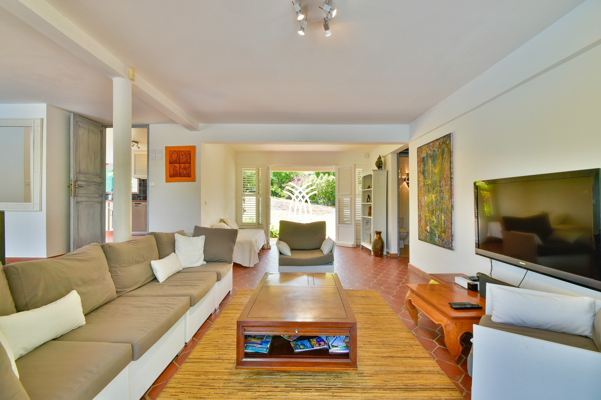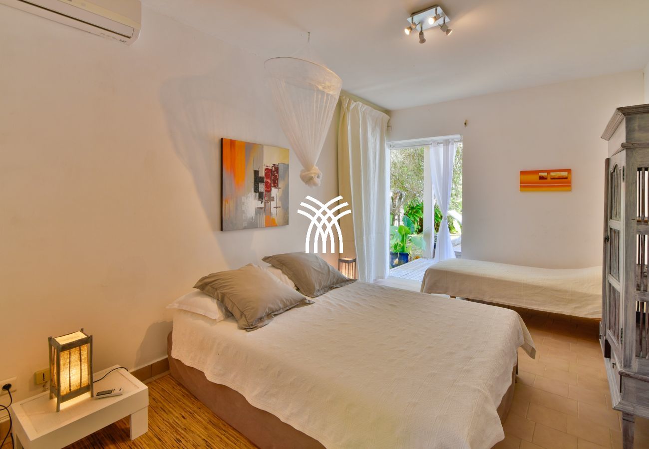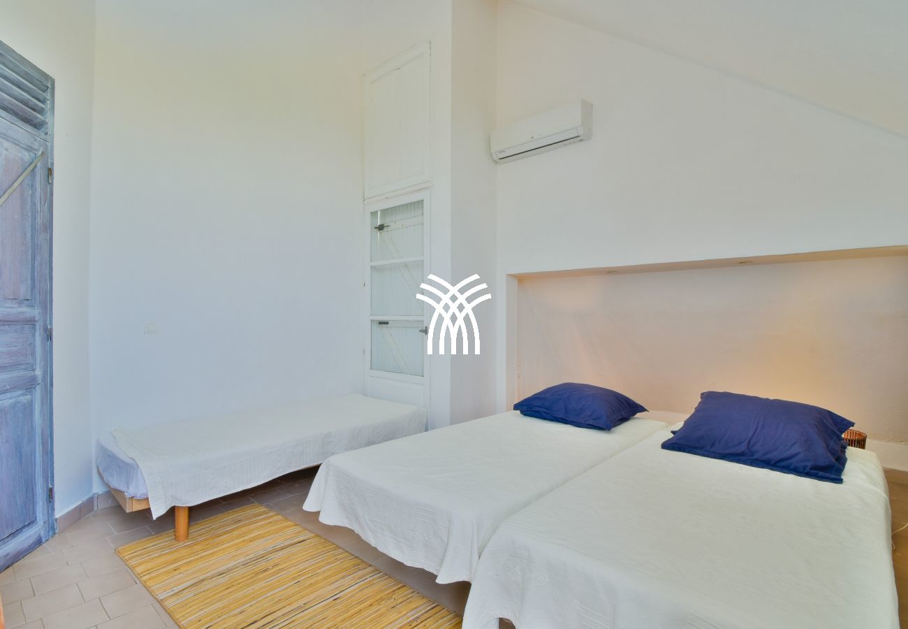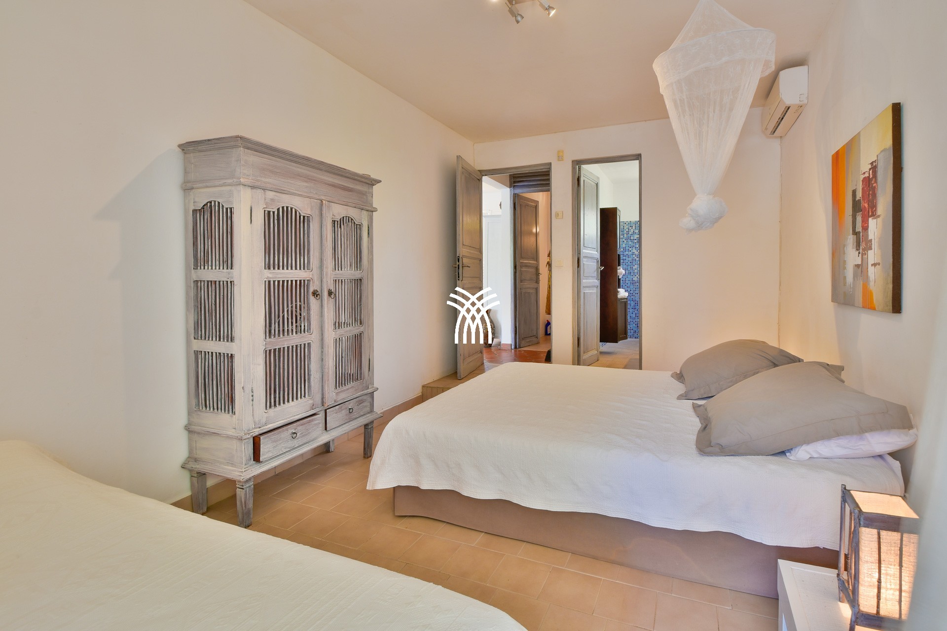 Conçue pour accueillir jusqu’à 11 personnes, la Villa Karukera offre des volumes harmonieux et quatre chambres spacieuses, chacune climatisée pour un confort optimal. La literie modulable permet une flexibilité parfaite pour les groupes et familles, avec trois lits doubles de 160 cm et cinq lits simples de 80 cm pouvant être réunis. La distribution des chambres assure à chacun son espace, avec une chambre en rez-de-chaussée dotée d’un lit double et d’un lit simple avec salle de bain privative, ainsi que trois chambres à l’étage, dont l’une dispose également de sa propre salle de bain. Une salle d’eau supplémentaire est partagée à l’étage, ainsi qu’un toilette invité au rez-de-chaussée. Un lit bébé est disponible, avec la possibilité d’en ajouter un second sur demande.