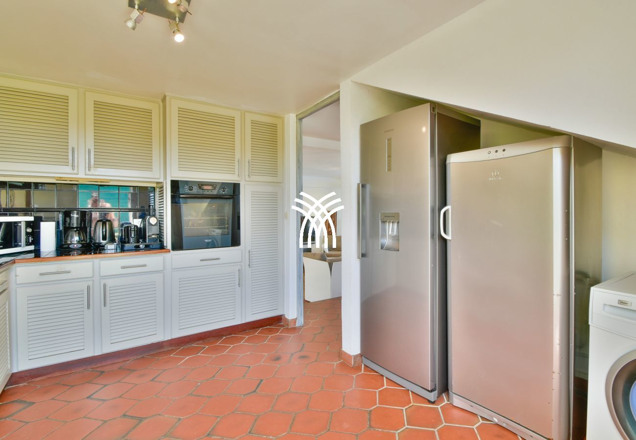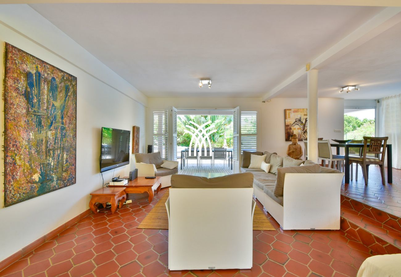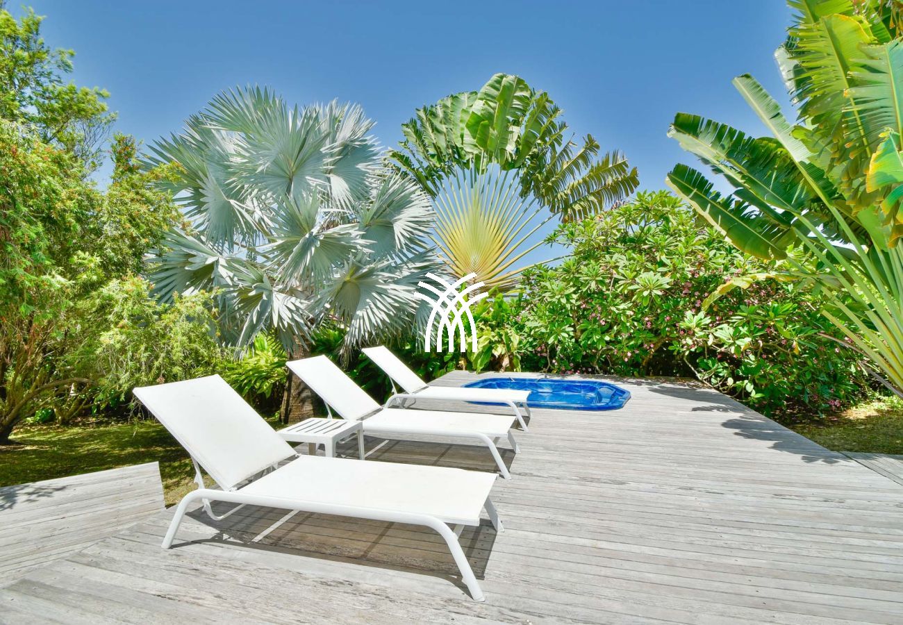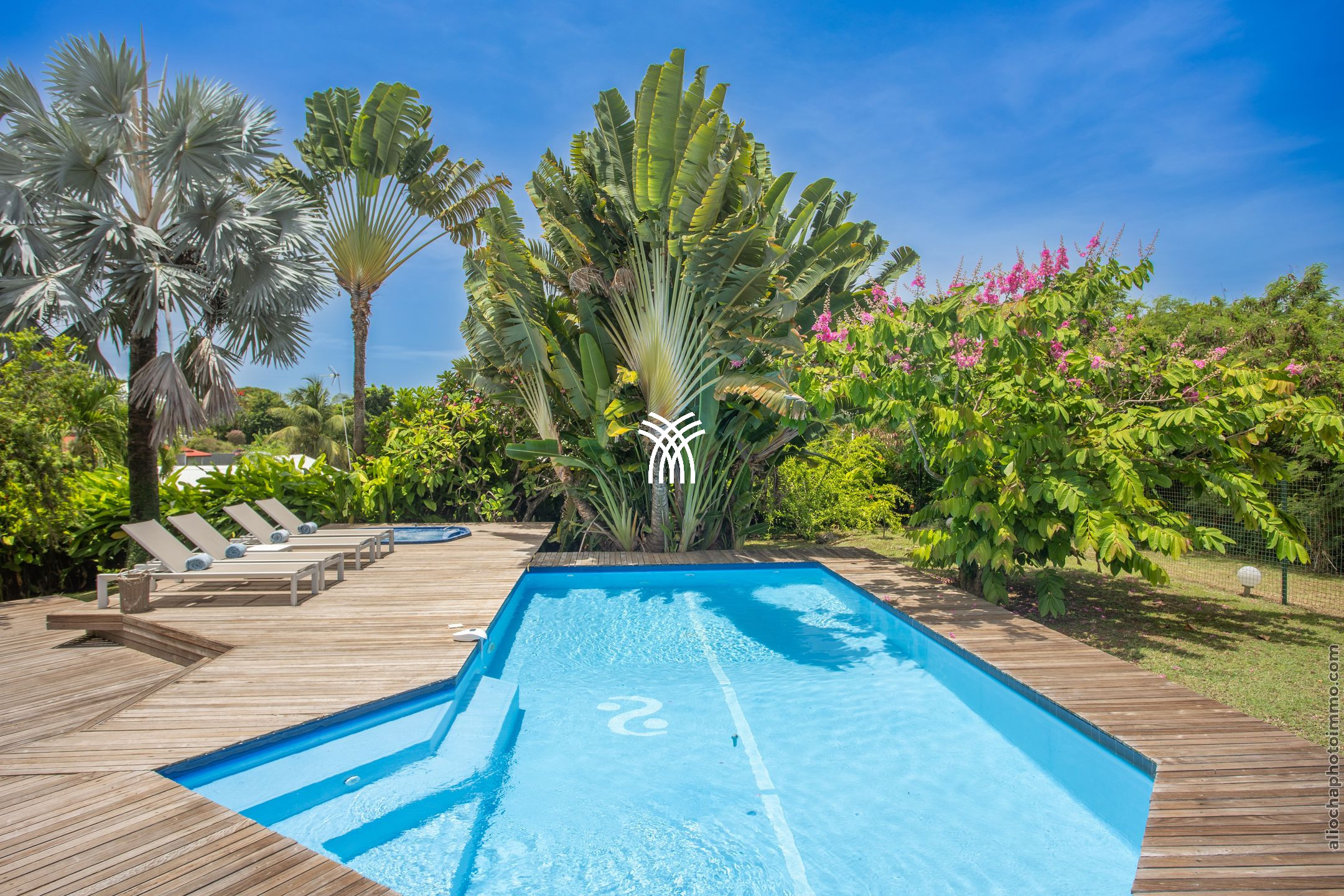 Le vaste espace extérieur est un véritable havre de paix, avec une piscine au sel de 9,5 x 4 mètres équipée d’un éclairage nocturne et d’un système de nage à contre-courant. Un jacuzzi 6 places, niché au cœur du deck et entouré de végétation tropicale, invite à la détente sous le ciel étoilé. Une douche extérieure avec eau chaude et froide, un jardin tropical luxuriant soigneusement entretenu et un barbecue complètent ce cadre idyllique.