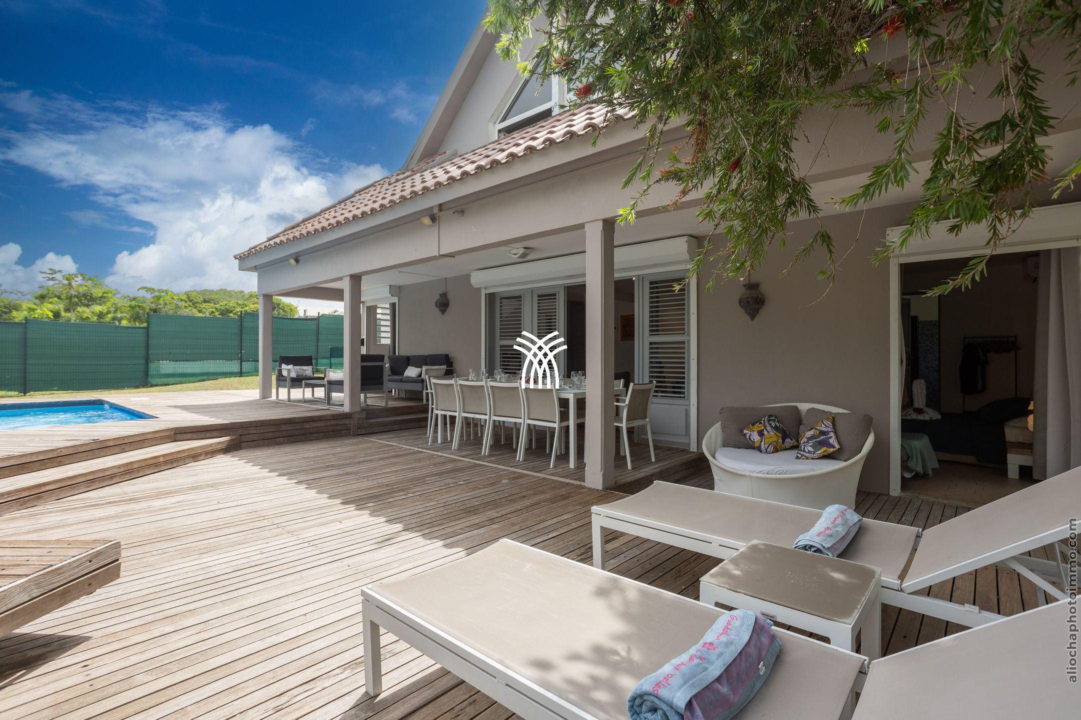 La Villa Karukera, située à Petit-Havre au Gosier, est une véritable invitation au rêve et à la sérénité. Nichée en front de mer, cette somptueuse villa de 185 m² avec un vaste deck de 75 m² bénéficie d’un accès direct à un lagon préservé à seulement 40 mètres, sans sargasses, bordé de sable blanc et de cocotiers. Son emplacement privilégié dans le quartier résidentiel de Petit-Havre, entre Le Gosier et Sainte-Anne, en fait un lieu idéal pour un séjour inoubliable en Guadeloupe.