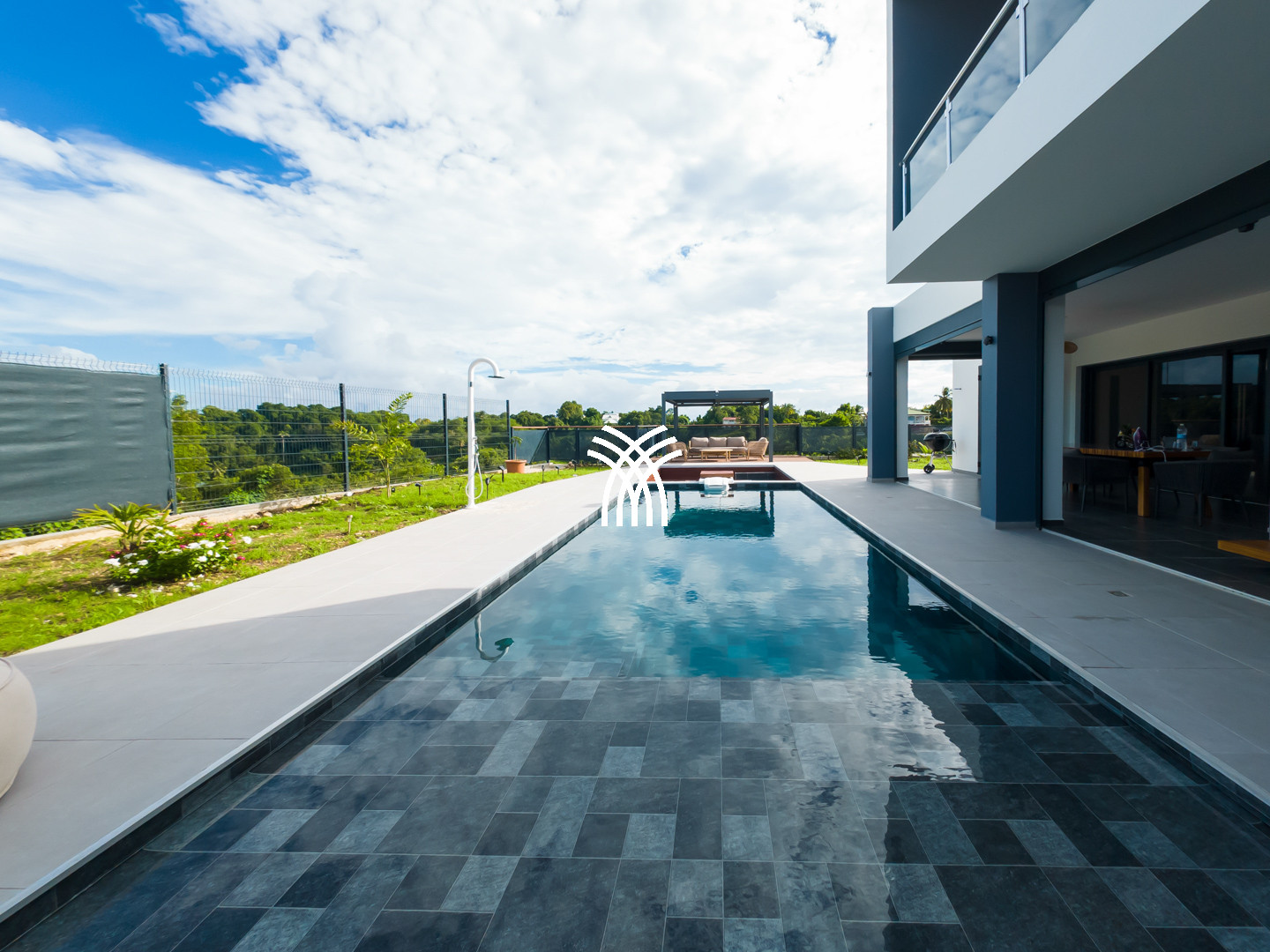 Côté extérieur, la villa possède une superbe piscine au sel 10x 5 m, agrémentée d'un jacuzzi pour des moments de détente réussis. Et si le luxe est de pouvoir aussi regarder en vacances des films ou séries sur écran géant, la villa Aline Guadeloupe offre un écran de 3 mètres par 2 mètres sur la terrasse.