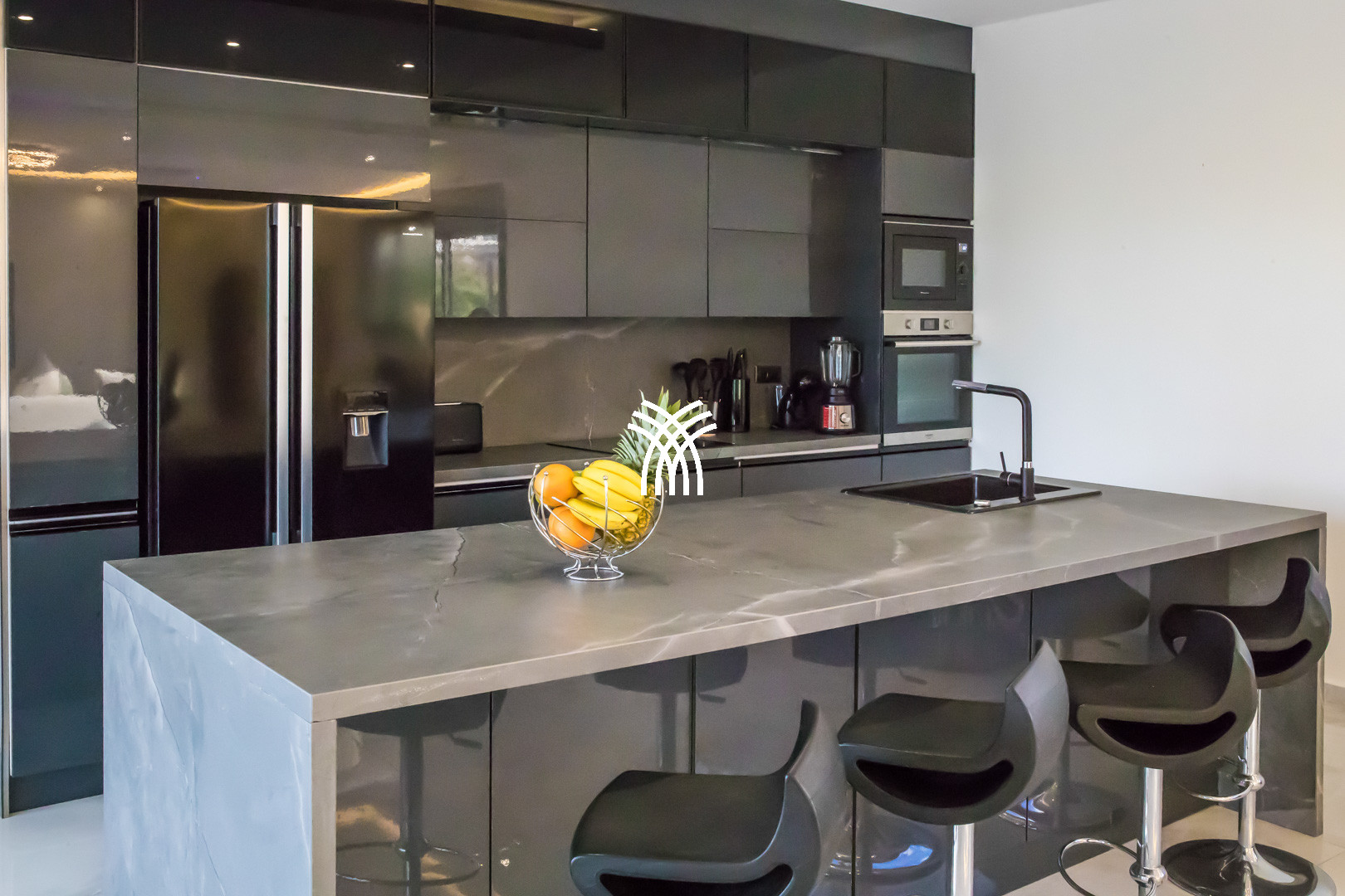 La cuisine américaine toute équipée vous permettra de cuisiner facilement ou vous pourrez faire appel à un chef à domicile si besoin. Tout est sur place.