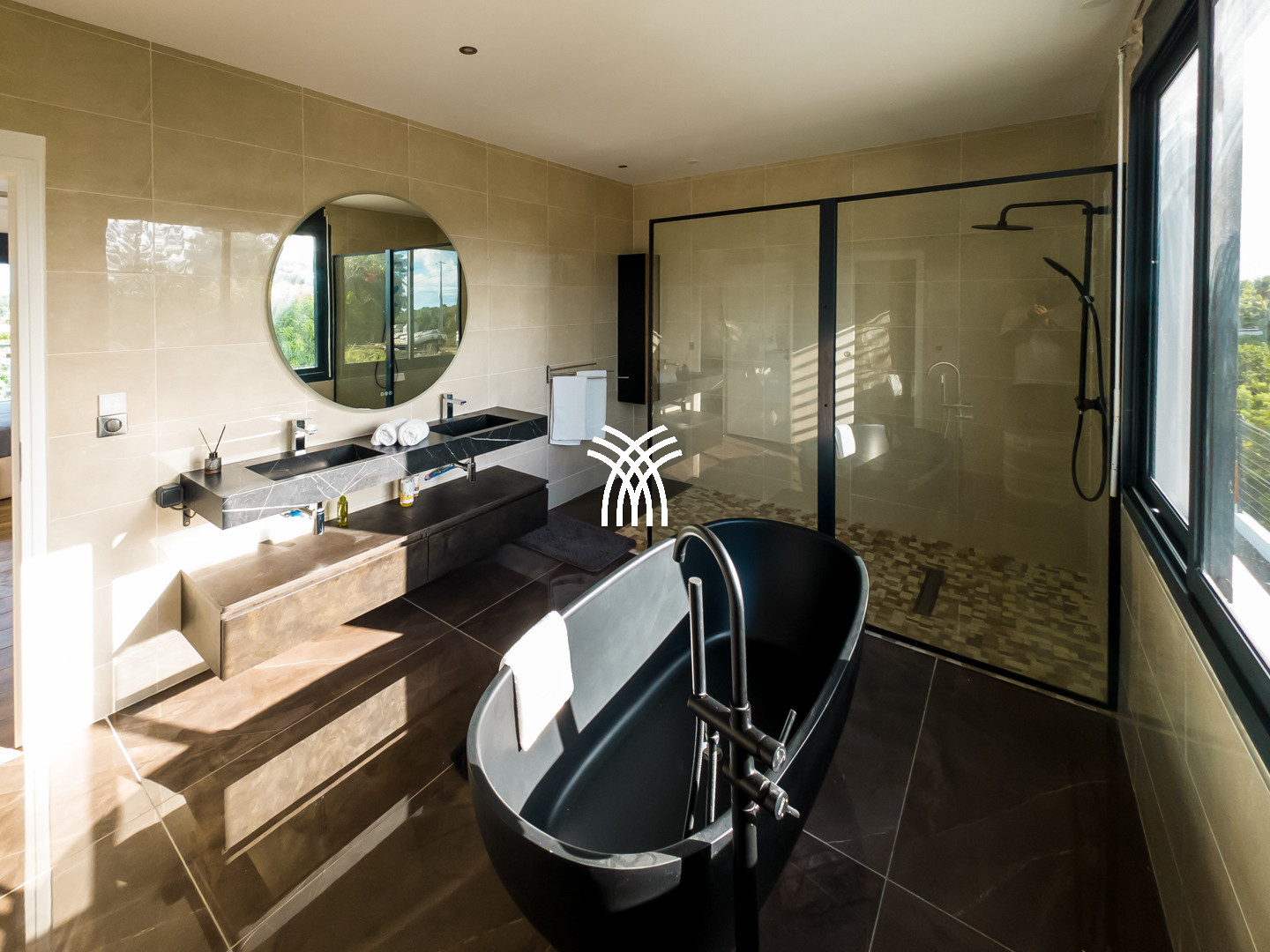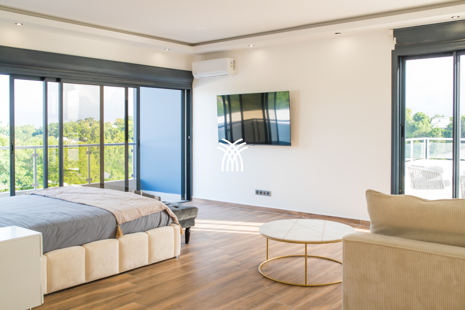 La suite parentale, véritable havre de paix, offre une superficie de 29 m², complétée par une salle de bain de 16 m² et un lit king-size de 180x200 cm. Les trois autres suites, tout aussi raffinées, disposent de lits queen-size de 160x200 cm et d’un espace généreux, idéal pour accueillir familles ou groupes d’amis. Chaque détail a été pensé pour répondre aux attentes des voyageurs les plus exigeants.