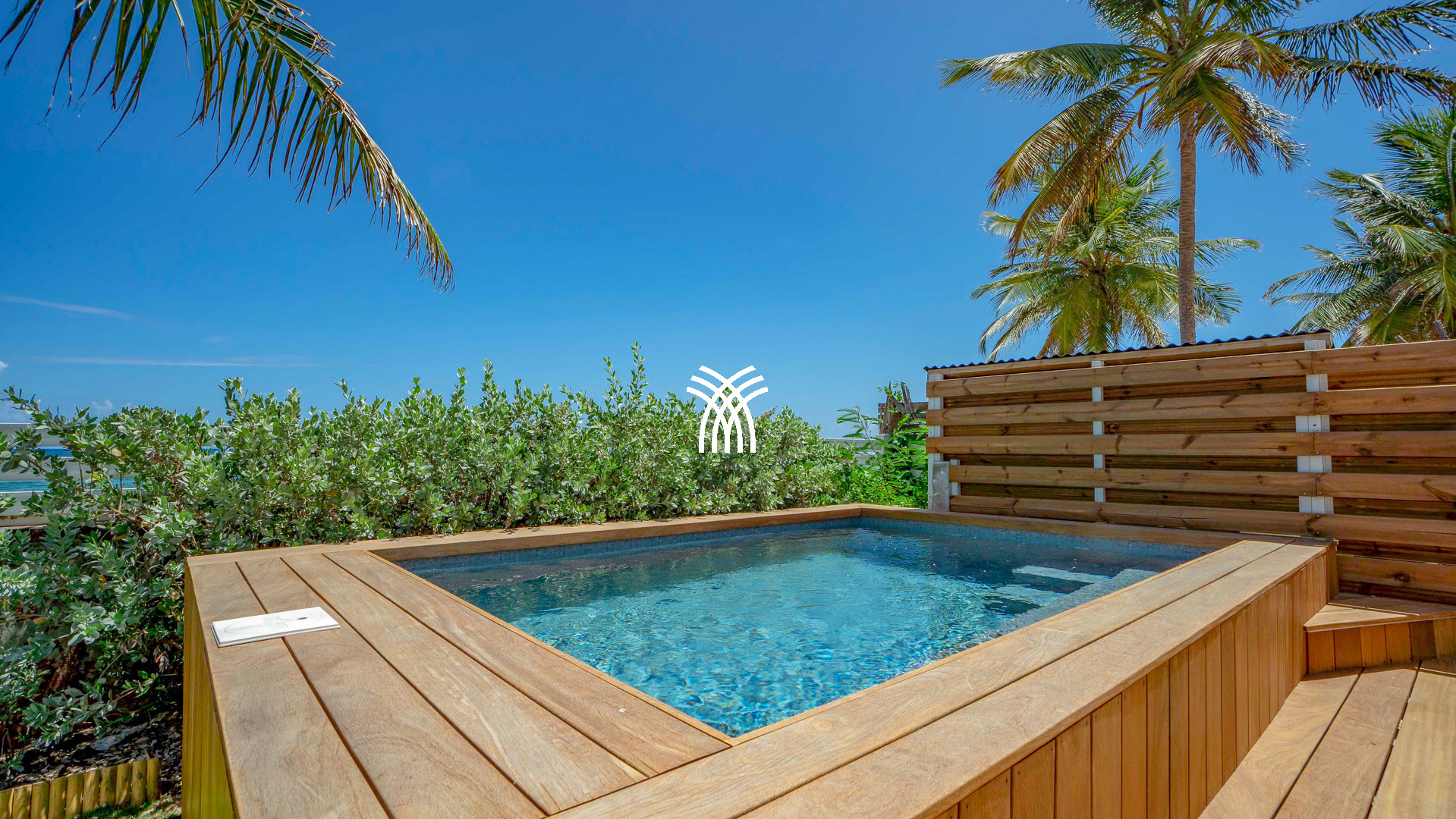 À l’extérieur, tout invite à la détente : la piscine, sécurisée par alarme immergée, le barbecue à gaz pour vos soirées gourmandes, la douche extérieure pour se rafraîchir après un bain de mer, et les transats disposés sous le soleil tropical. Par un petit portillon, la plage n’est qu’à quelques pas — un privilège rare qui fait de cette adresse un lieu d’exception pour les amateurs de vacances les pieds dans l’eau.