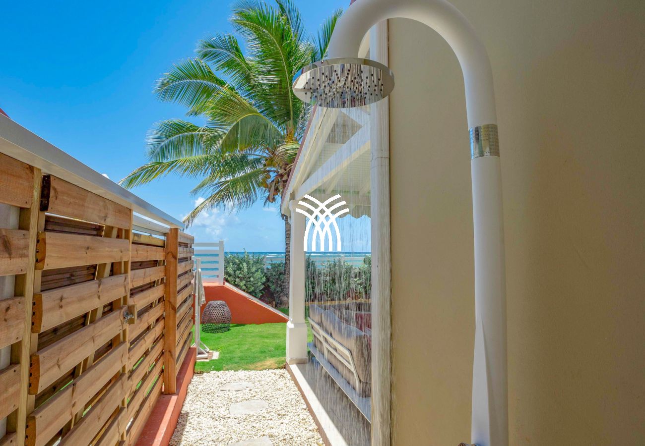 Le véritable privilège reste l’accès direct à la plage, par un petit portillon privé : quelques pas suffisent pour rejoindre le rivage, les pieds dans le sable et le regard tourné vers l’horizon. L’ambiance paisible du quartier et la sécurité de la résidence en font un refuge idéal pour ceux qui recherchent discrétion, confort et authenticité. Possibilité de louer la villa jumelle voisine pour accueillir jusqu’à seize personnes et partager un séjour grandiose au bord de la mer des Caraïbes.