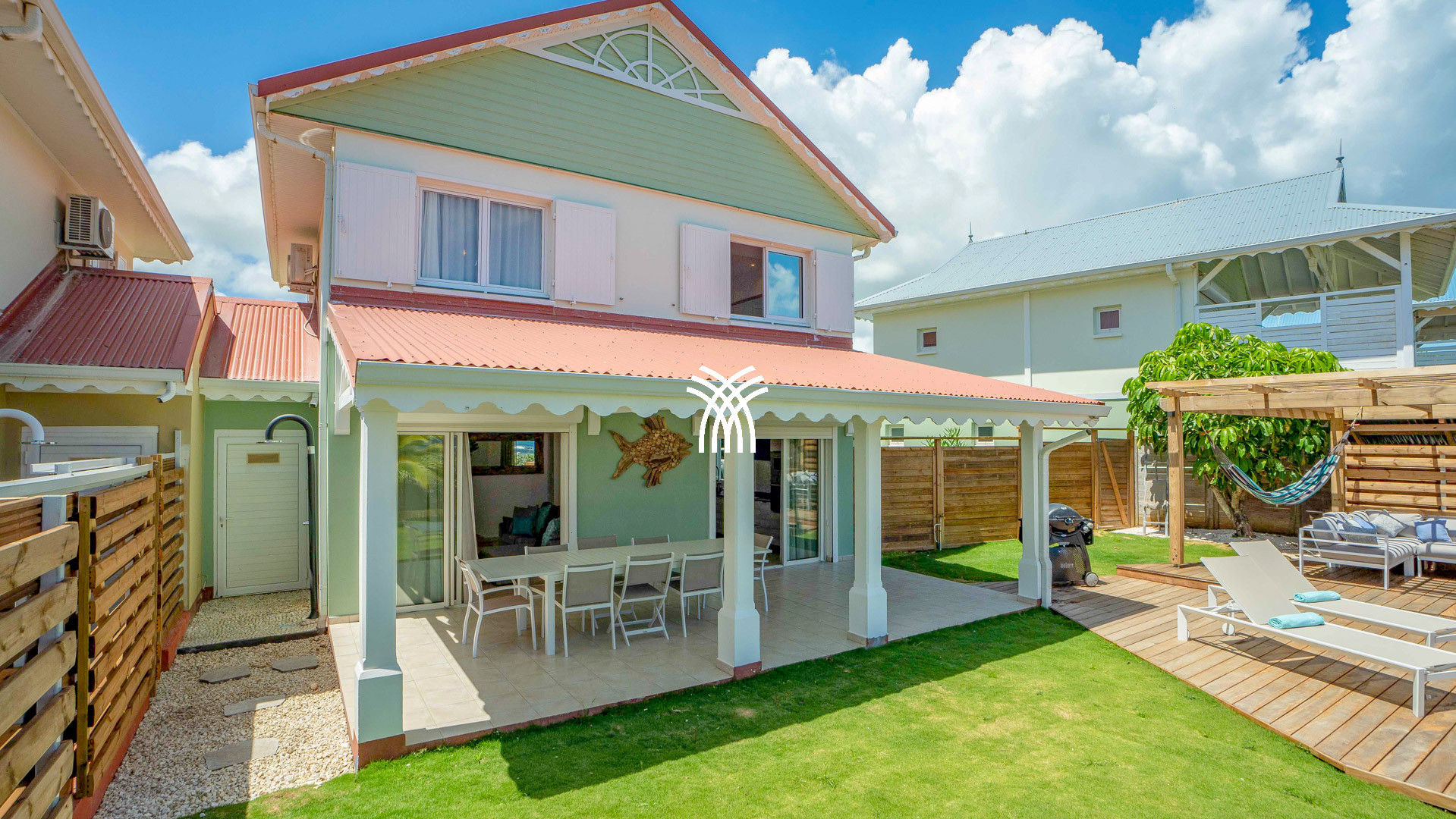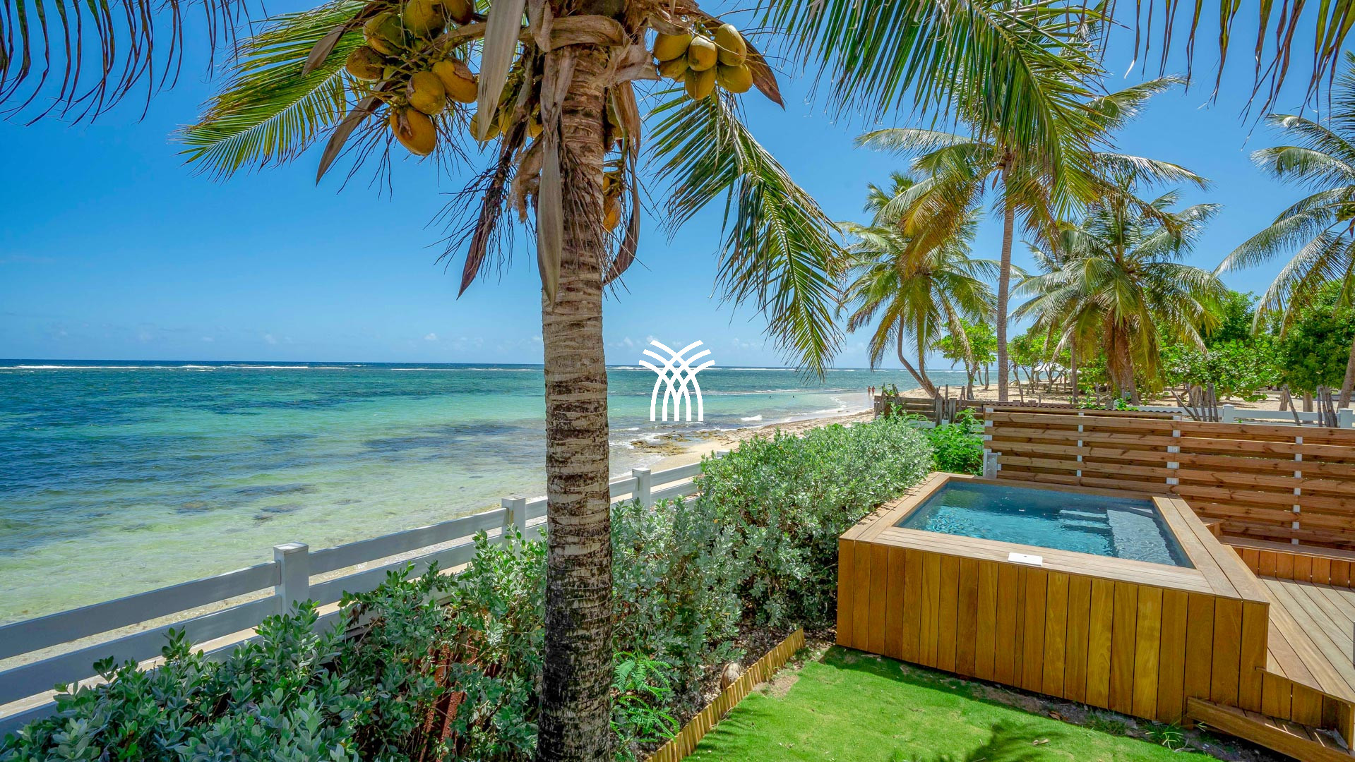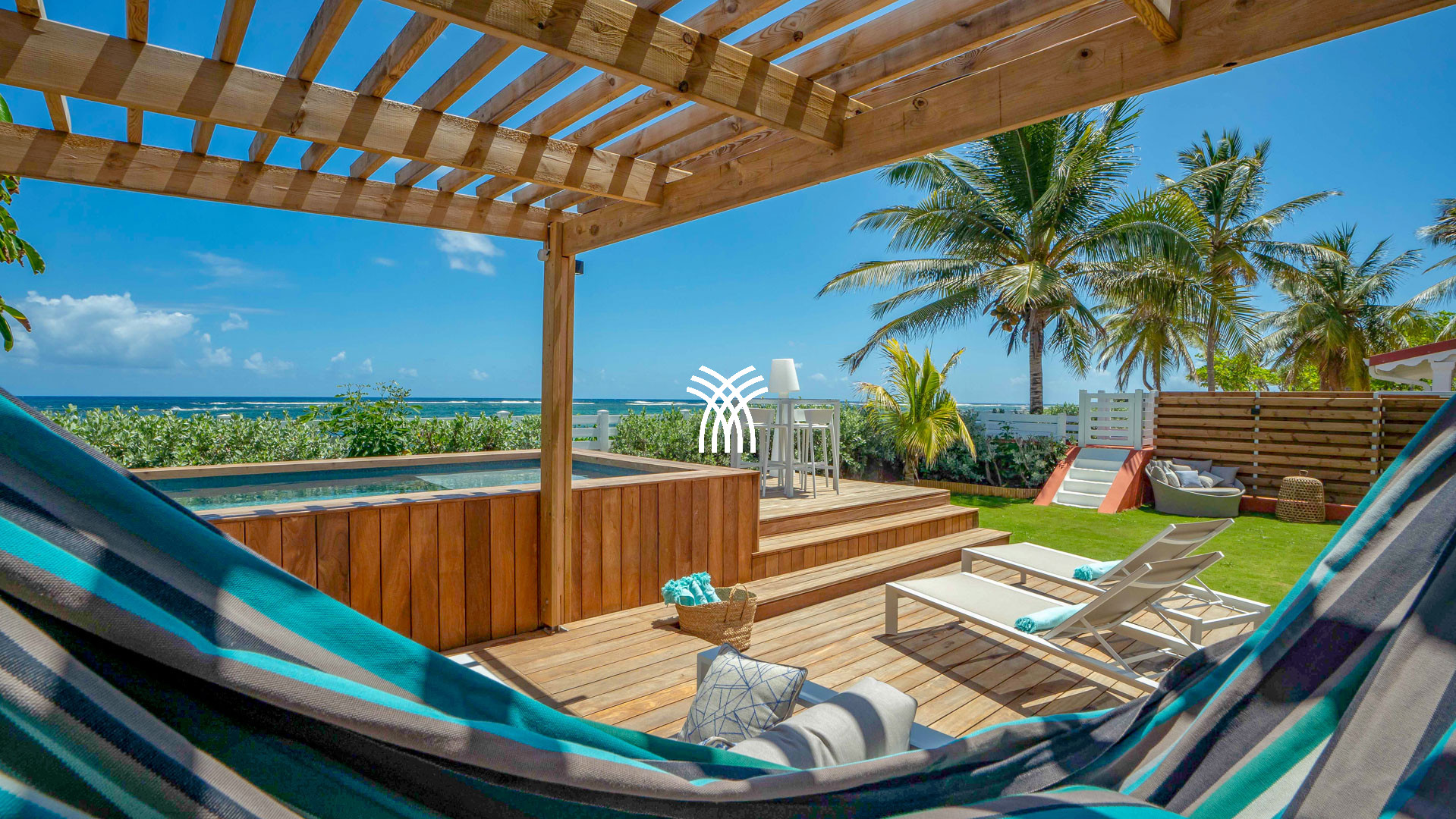 À l’extérieur, tout invite à la détente : la piscine, sécurisée par alarme immergée, le barbecue à gaz pour vos soirées gourmandes, la douche extérieure pour se rafraîchir après un bain de mer, et les transats disposés sous le soleil tropical. Par un petit portillon, la plage n’est qu’à quelques pas — un privilège rare qui fait de cette adresse un lieu d’exception pour les amateurs de vacances les pieds dans l’eau.