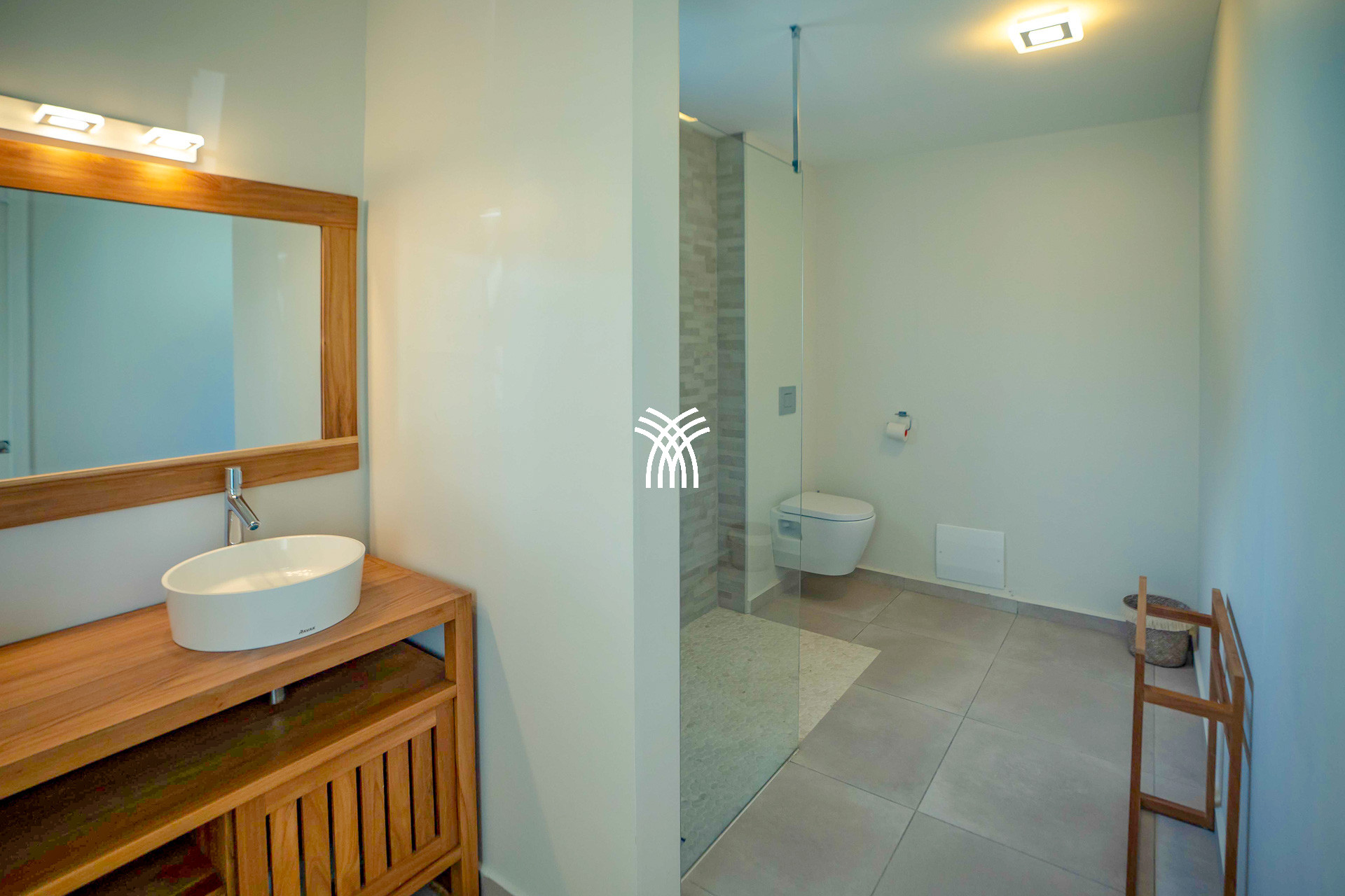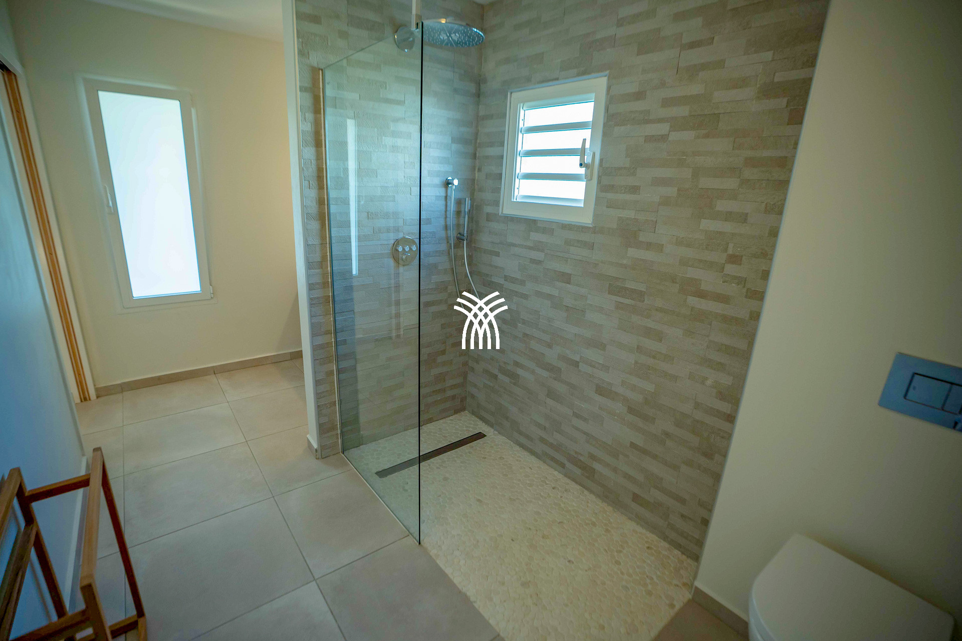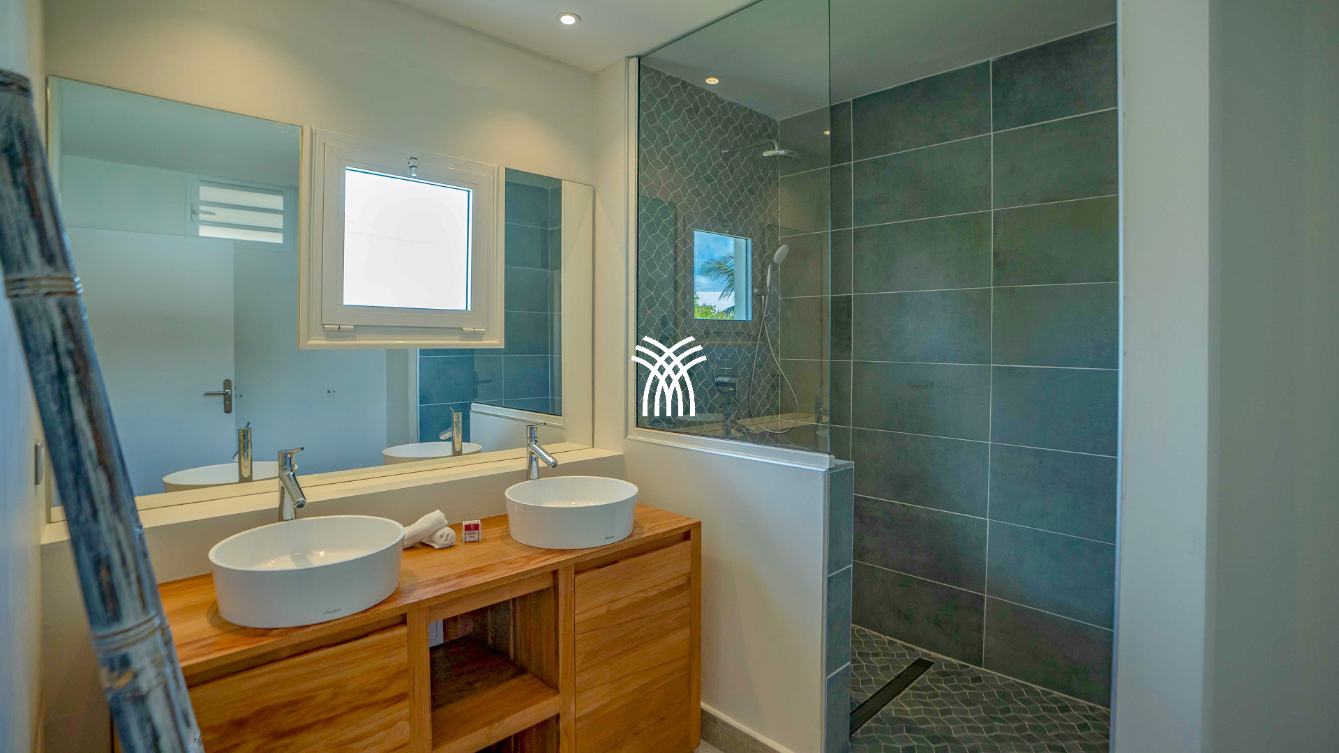 À l’extérieur, tout est pensé pour le plaisir des sens : un bac à punch pour se rafraîchir à toute heure, une douche extérieure pour se délasser après la plage, un barbecue à gaz pour vos soirées caribéennes, et des transats disposés sous le soleil pour admirer les nuances changeantes du ciel. Chaque détail a été soigneusement imaginé pour faire de cette villa de luxe en Guadeloupe un lieu de vie aussi élégant que chaleureux.