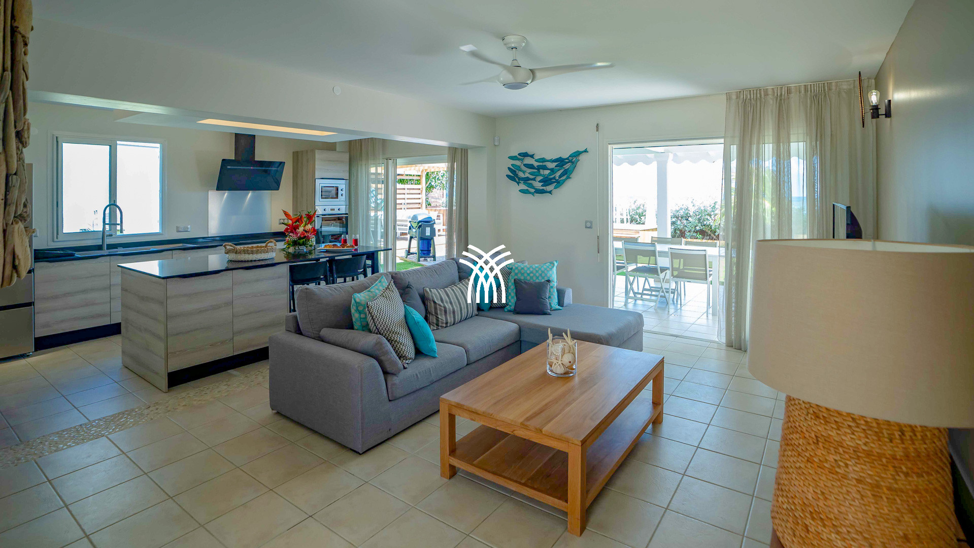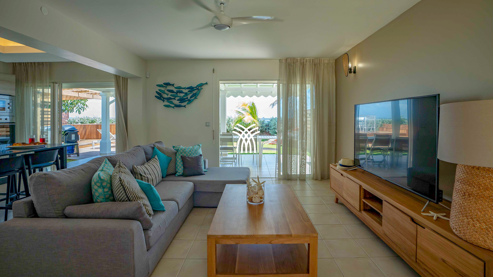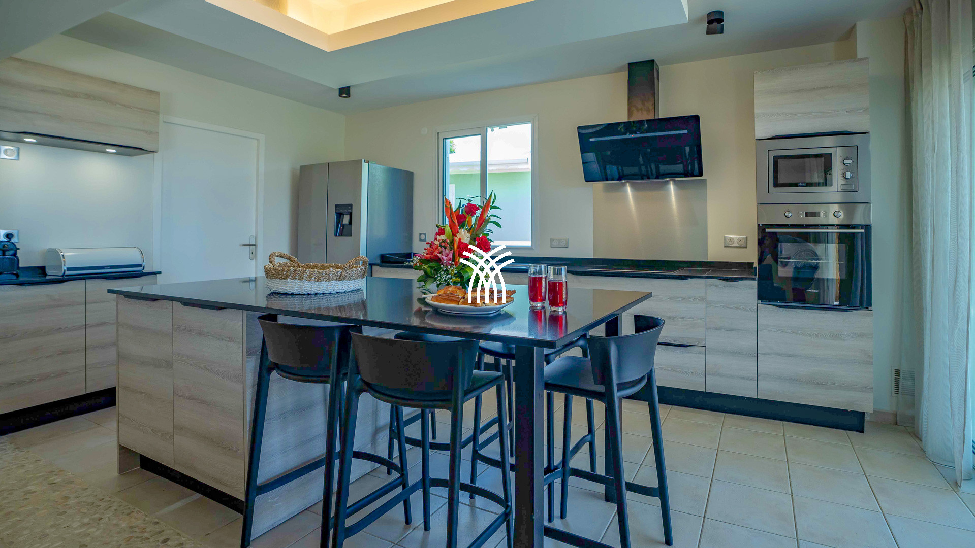 Dès l’entrée, la Villa Paloma révèle un espace à vivre ouvert, baigné de lumière, où se mêlent matières naturelles, tons apaisants et art de vivre tropical. La cuisine moderne, entièrement équipée, prolonge le séjour convivial et invite à préparer de bons repas partagés sur la terrasse extérieure. Le jardin intime, bordé de cocotiers, accueille une belle piscine au sel et un carbet ombragé pour savourer la Guadeloupe en toute quiétude, entre farniente, apéritifs et couchers de soleil sur l’horizon marin.